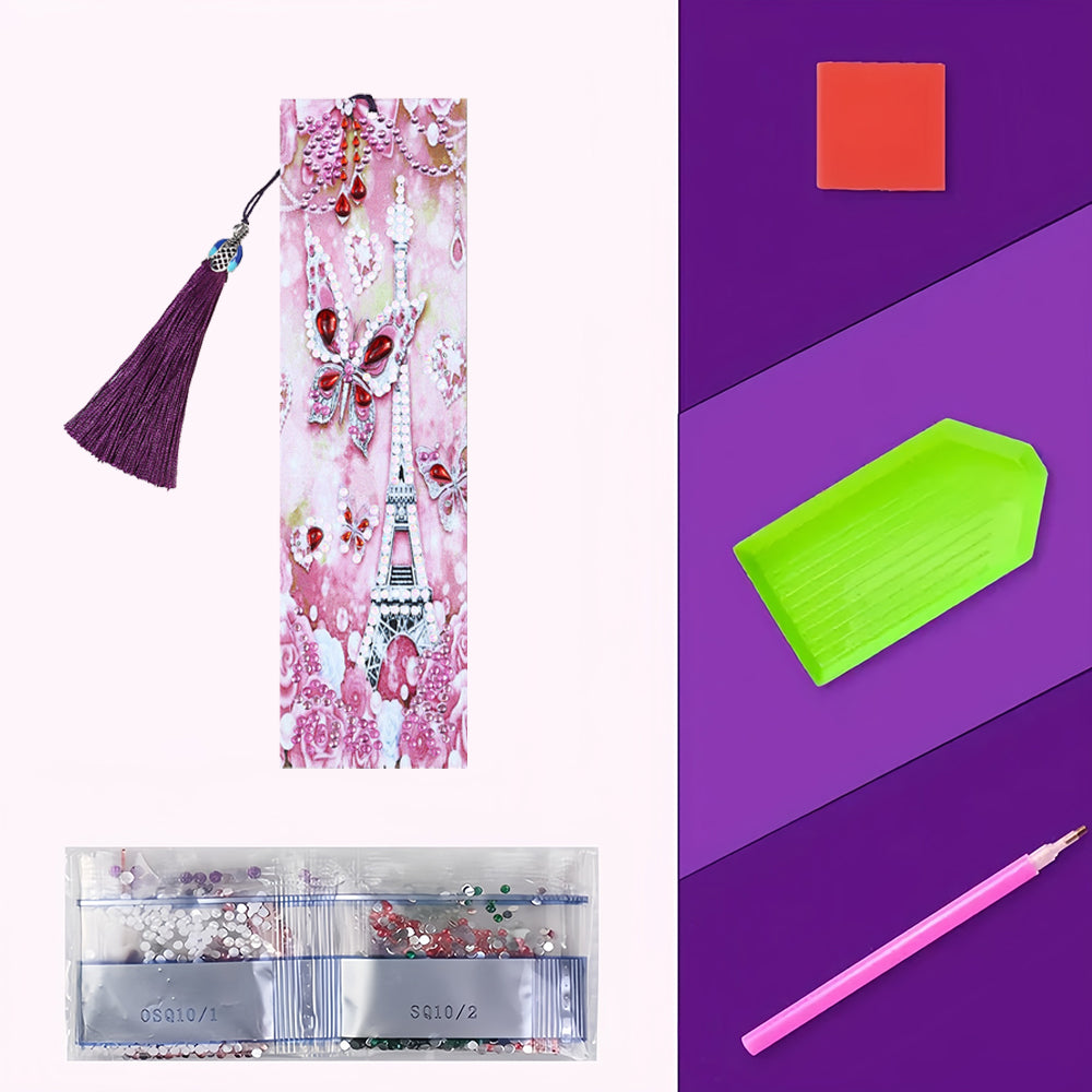 Rosa Schmetterling und Eiffelturm Leder Lesezeichen Diamond Painting