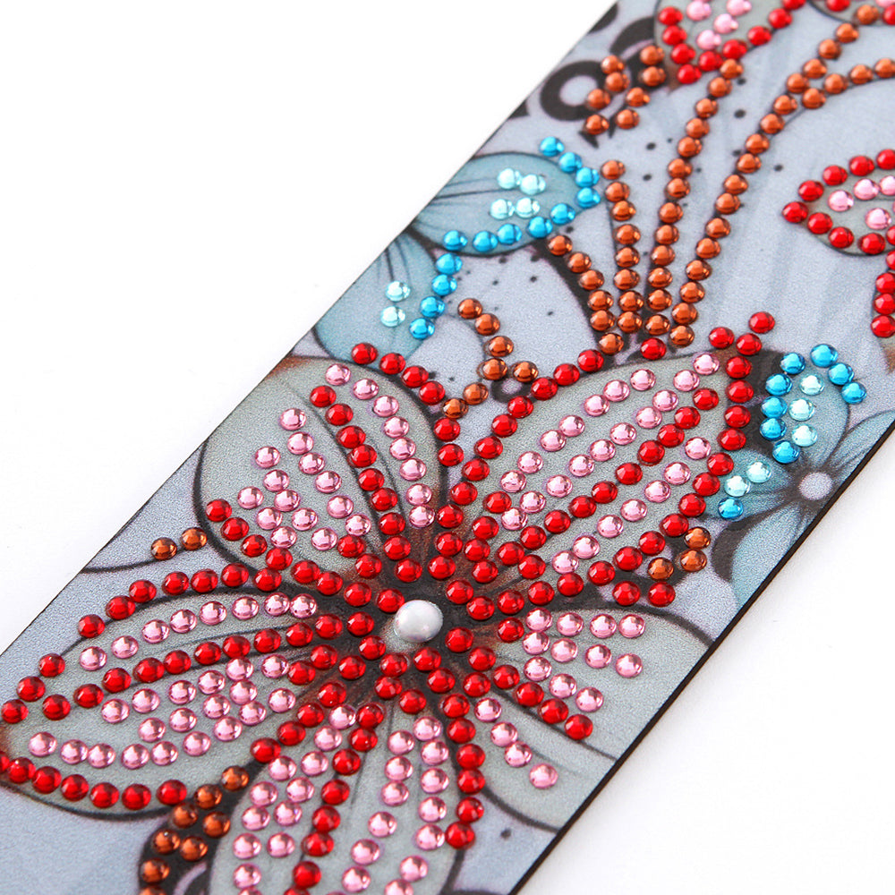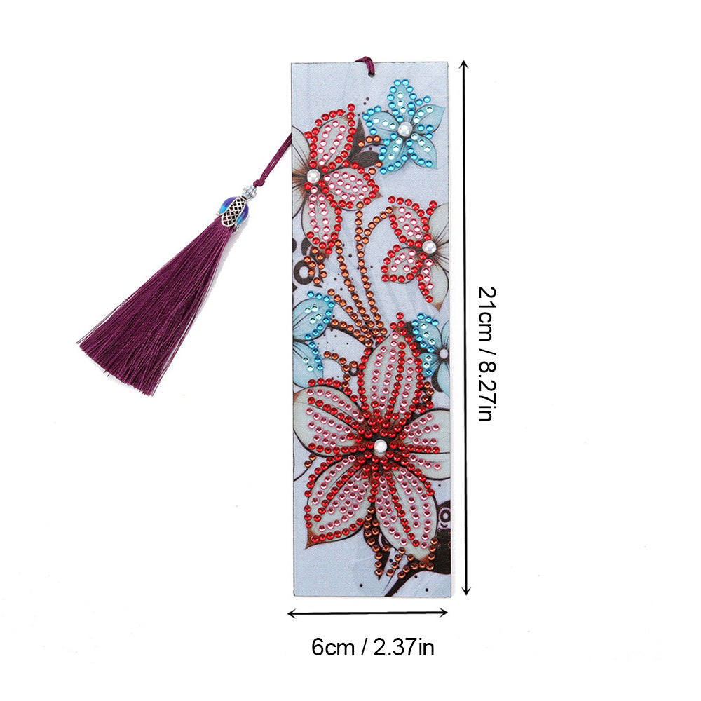 Rote Blumen Leder Lesezeichen Diamond Painting