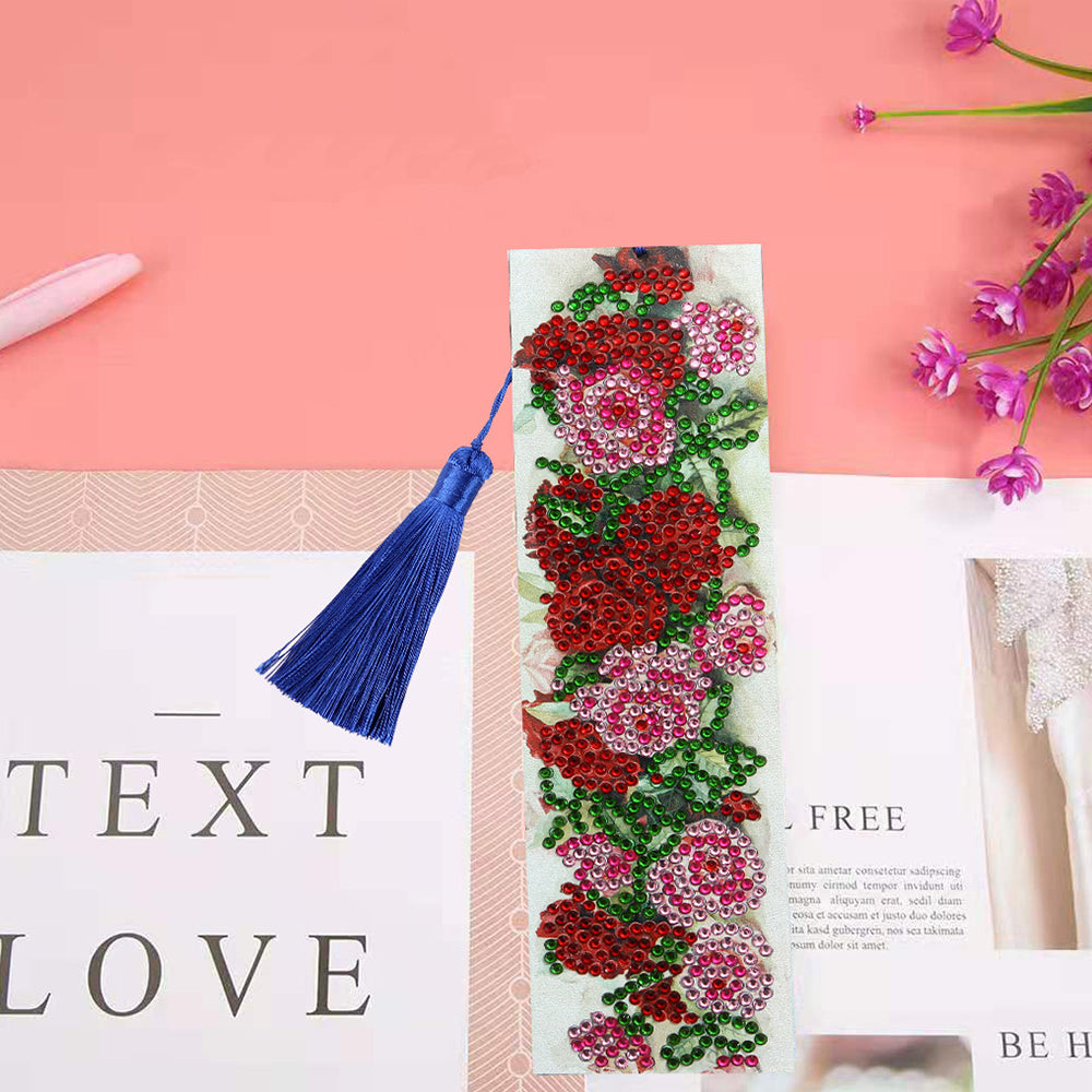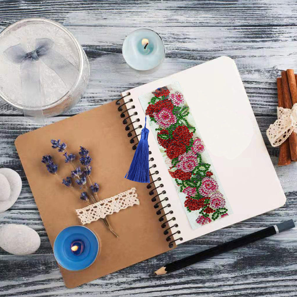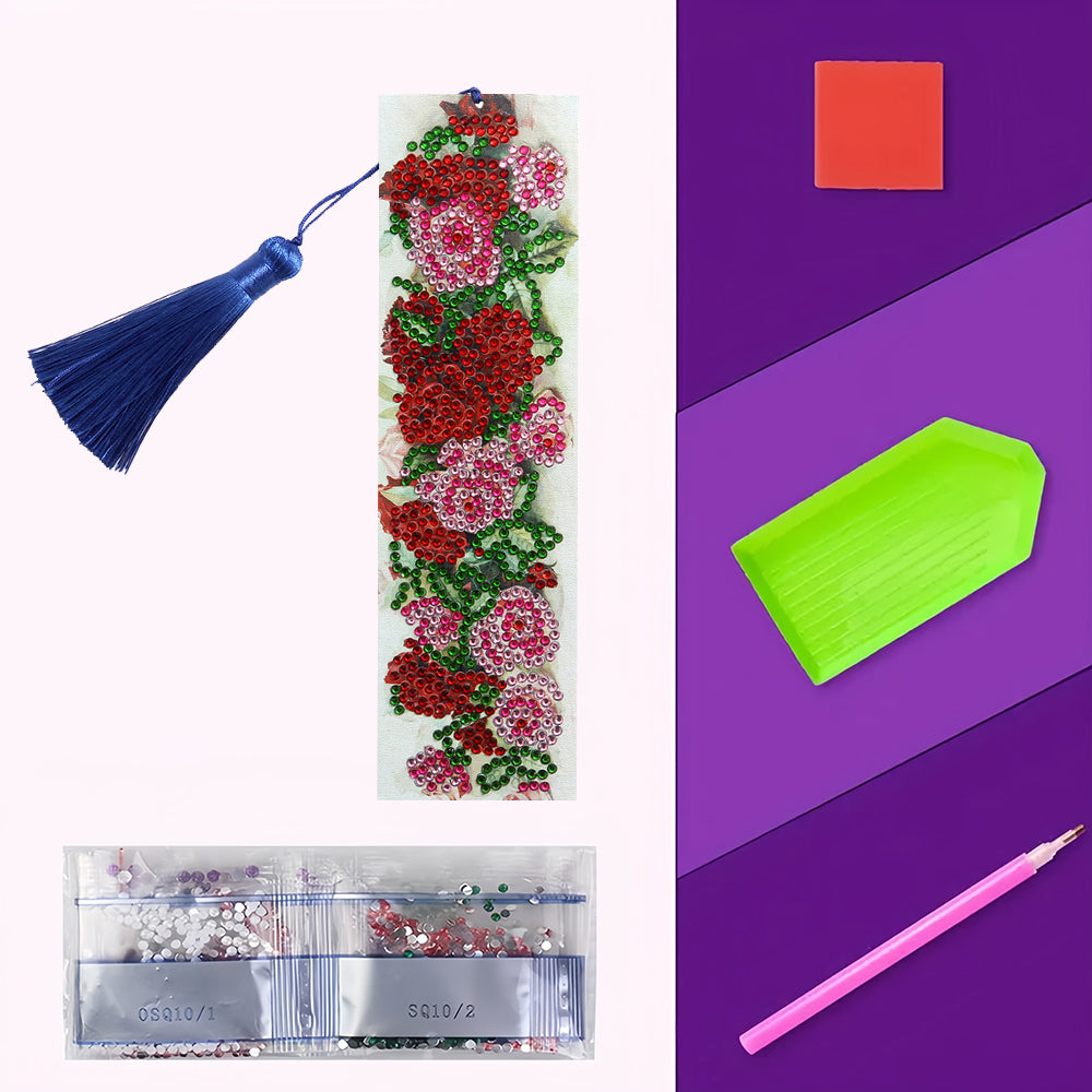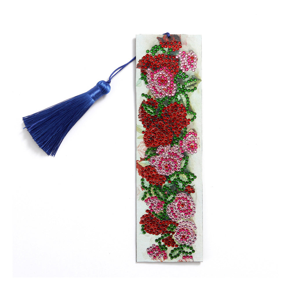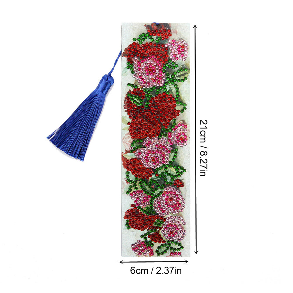 Rote Rosen Leder Lesezeichen Diamond Painting