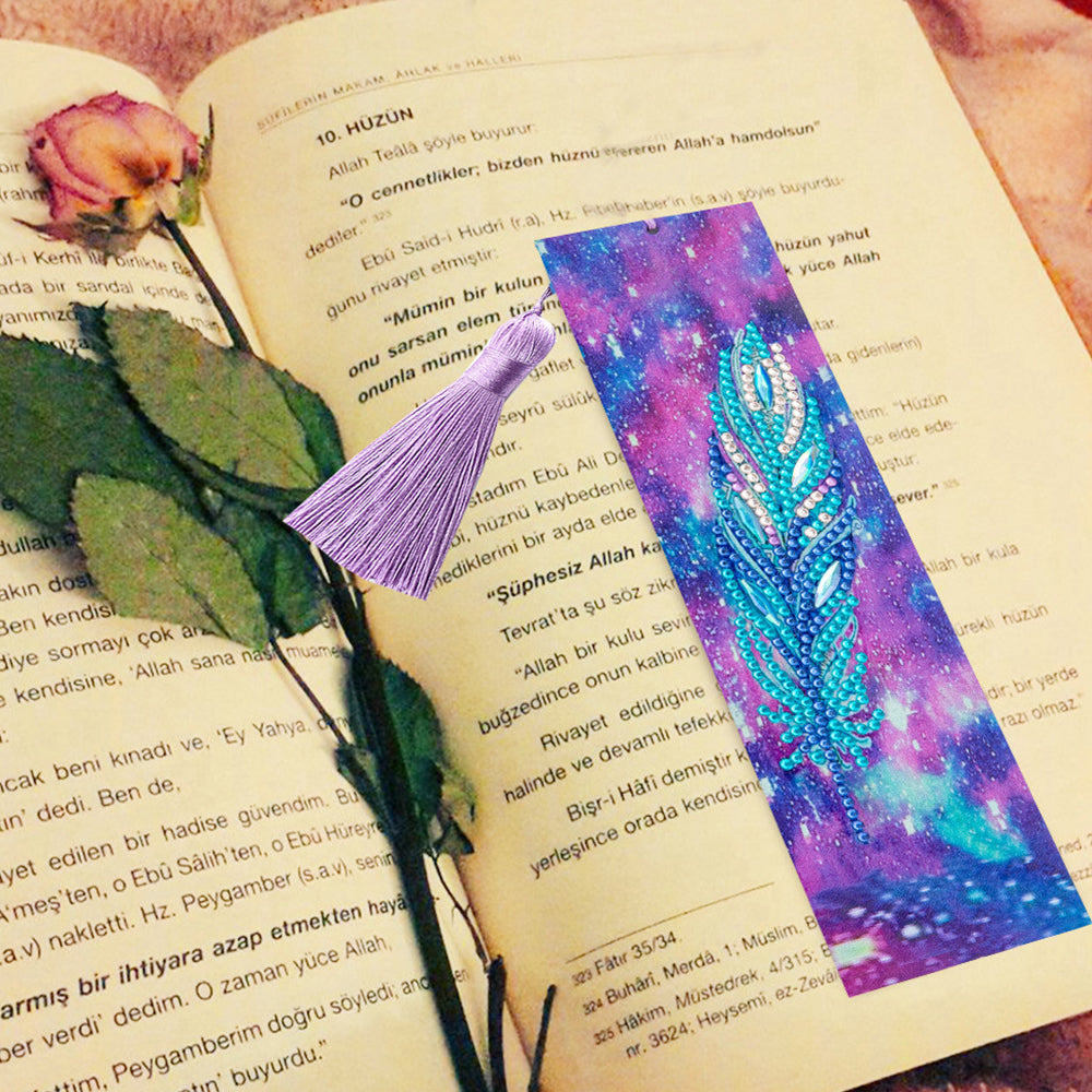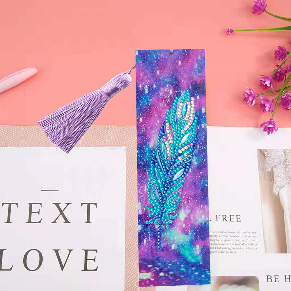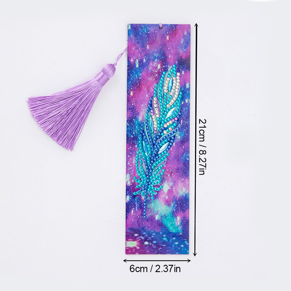 Wunderschöne Blaue Feder Leder Lesezeichen Diamond Painting