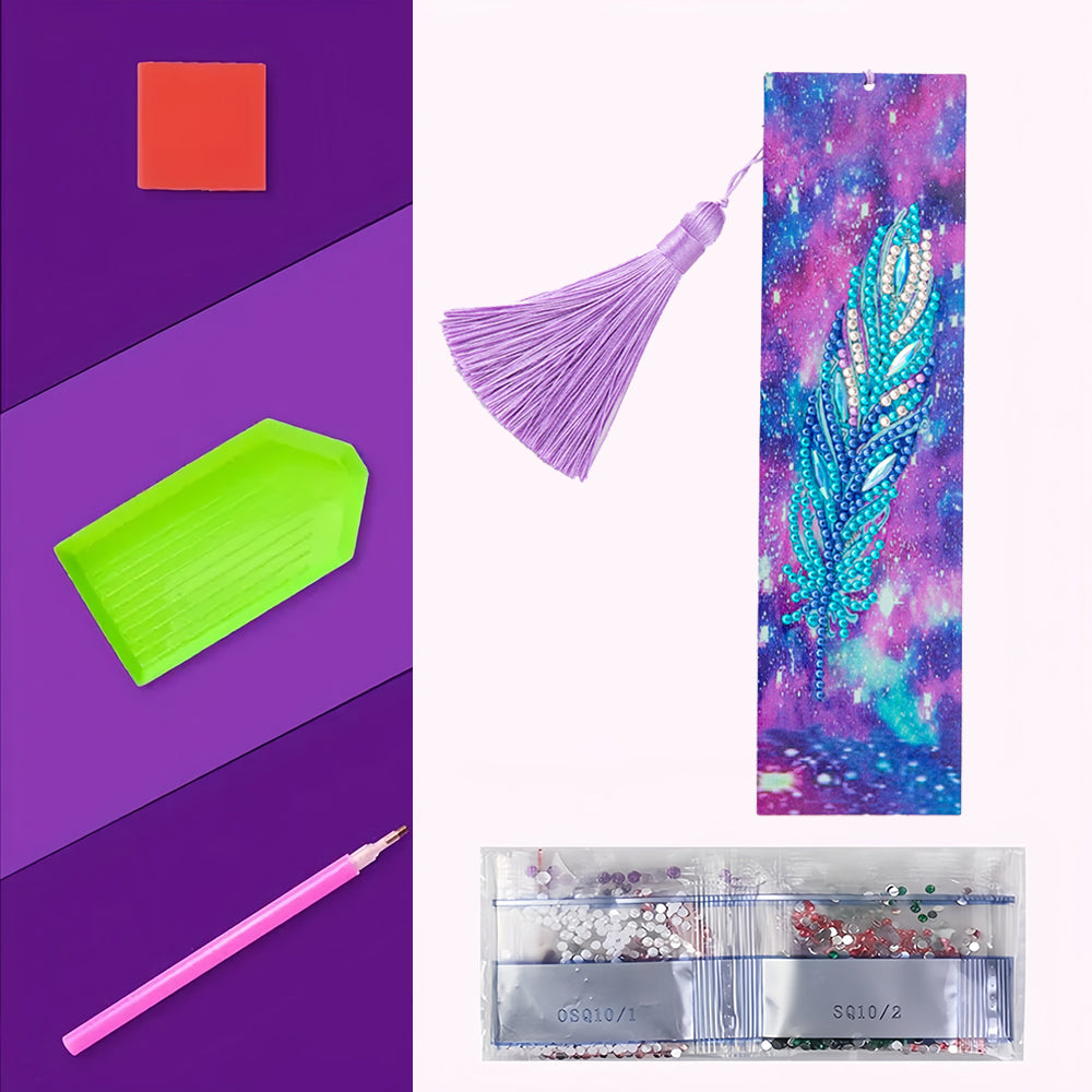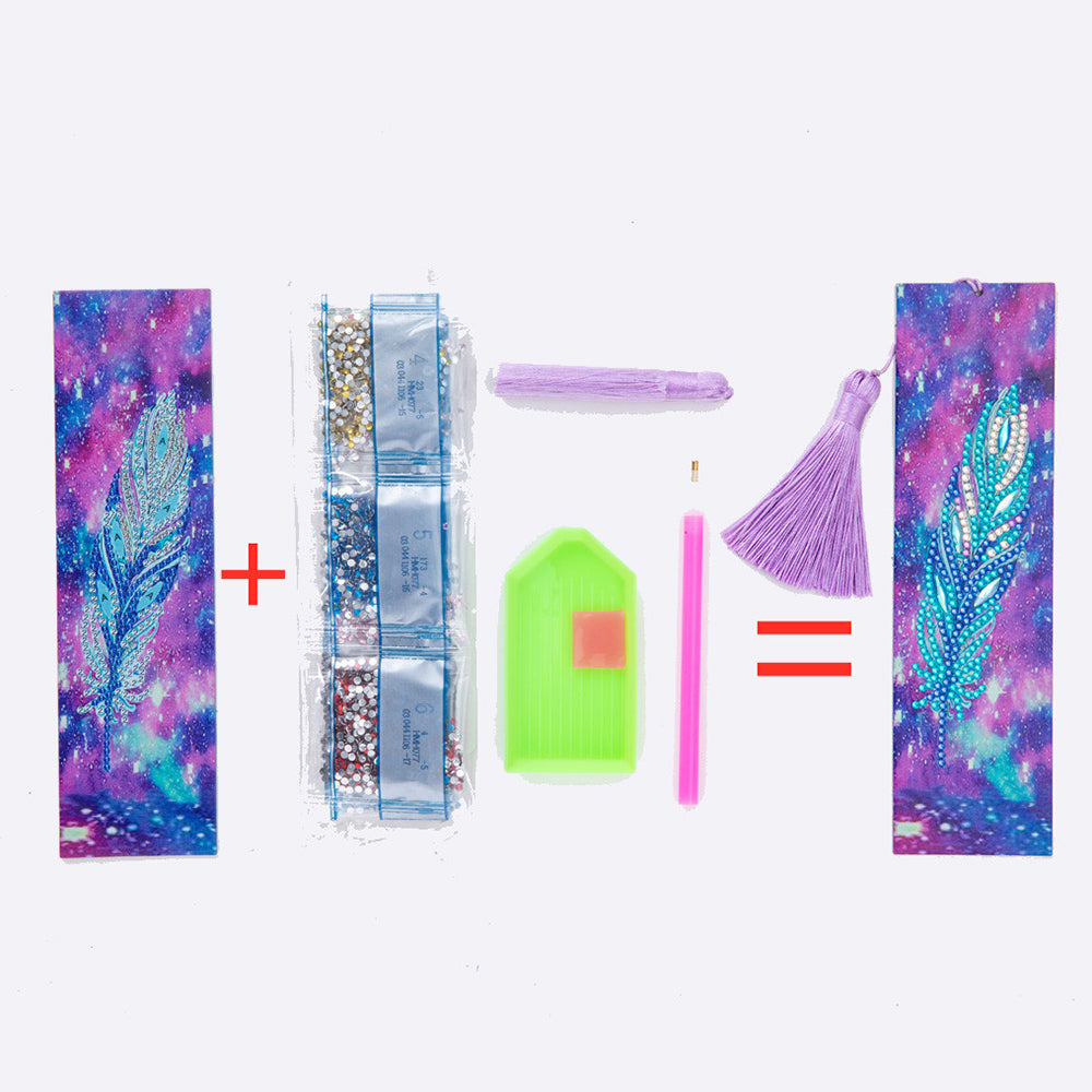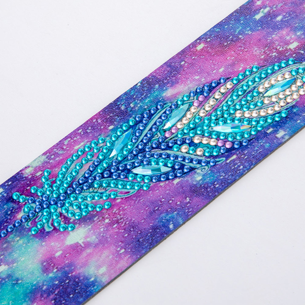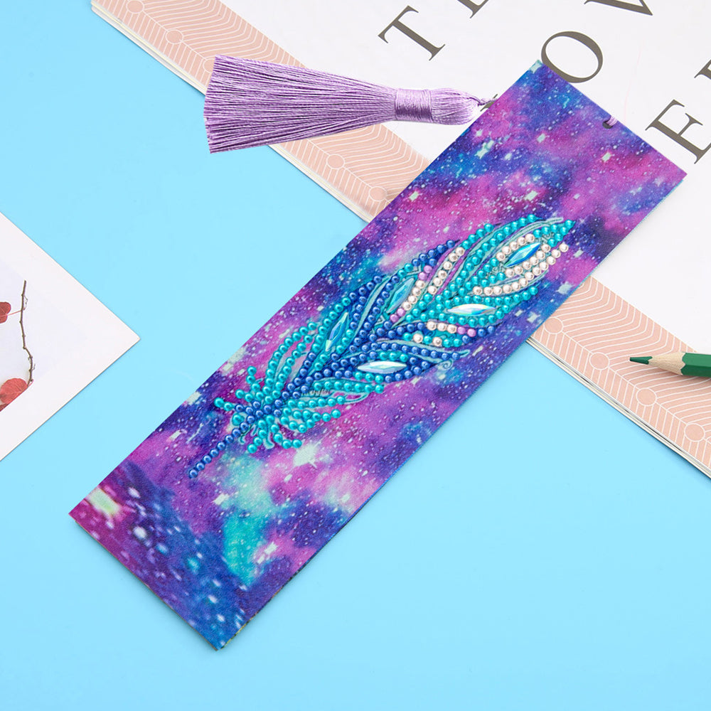 Wunderschöne Blaue Feder Leder Lesezeichen Diamond Painting