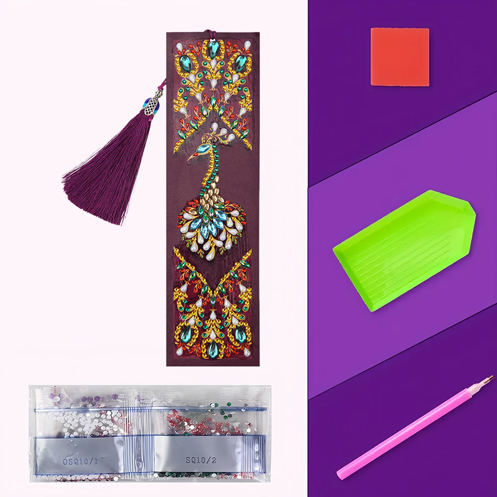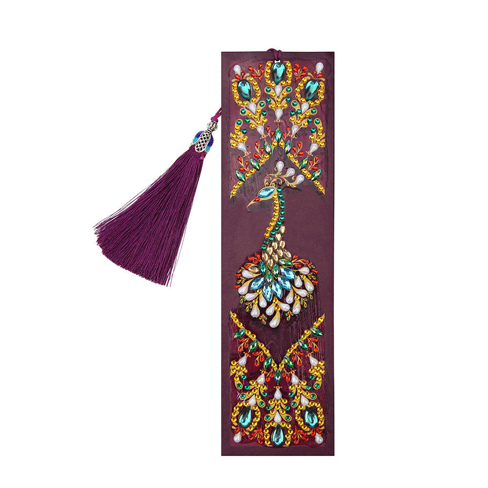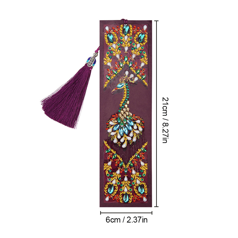 Wunderschöner Pfau Leder Lesezeichen Diamond Painting