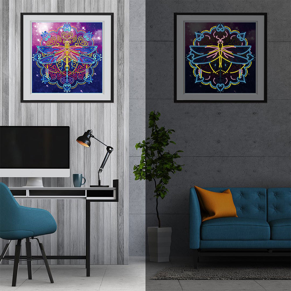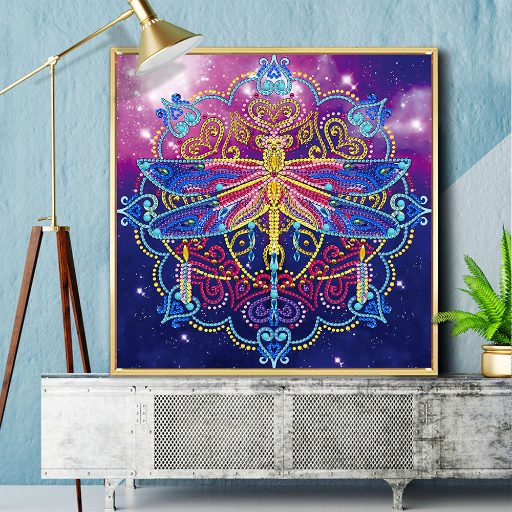 Libelle und Mandala Farbig Leuchtend Sonderform Diamond Painting