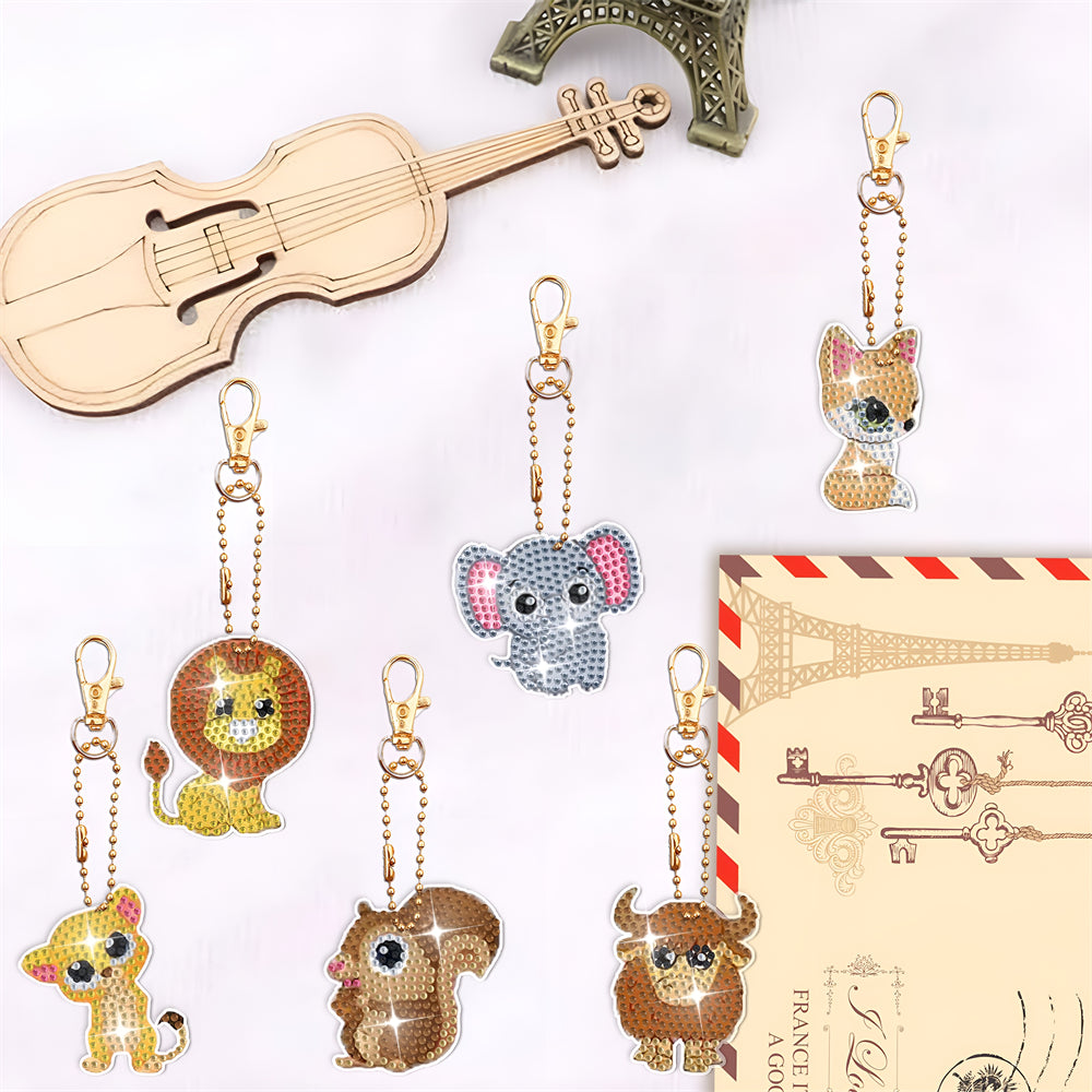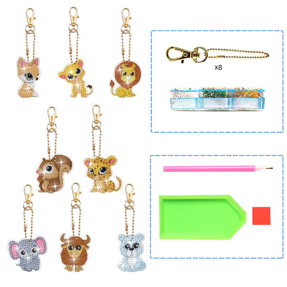 8Pcs Niedliche Tiere Acryl Doppelseitiger Schlüsselanhänger Diamond Painting