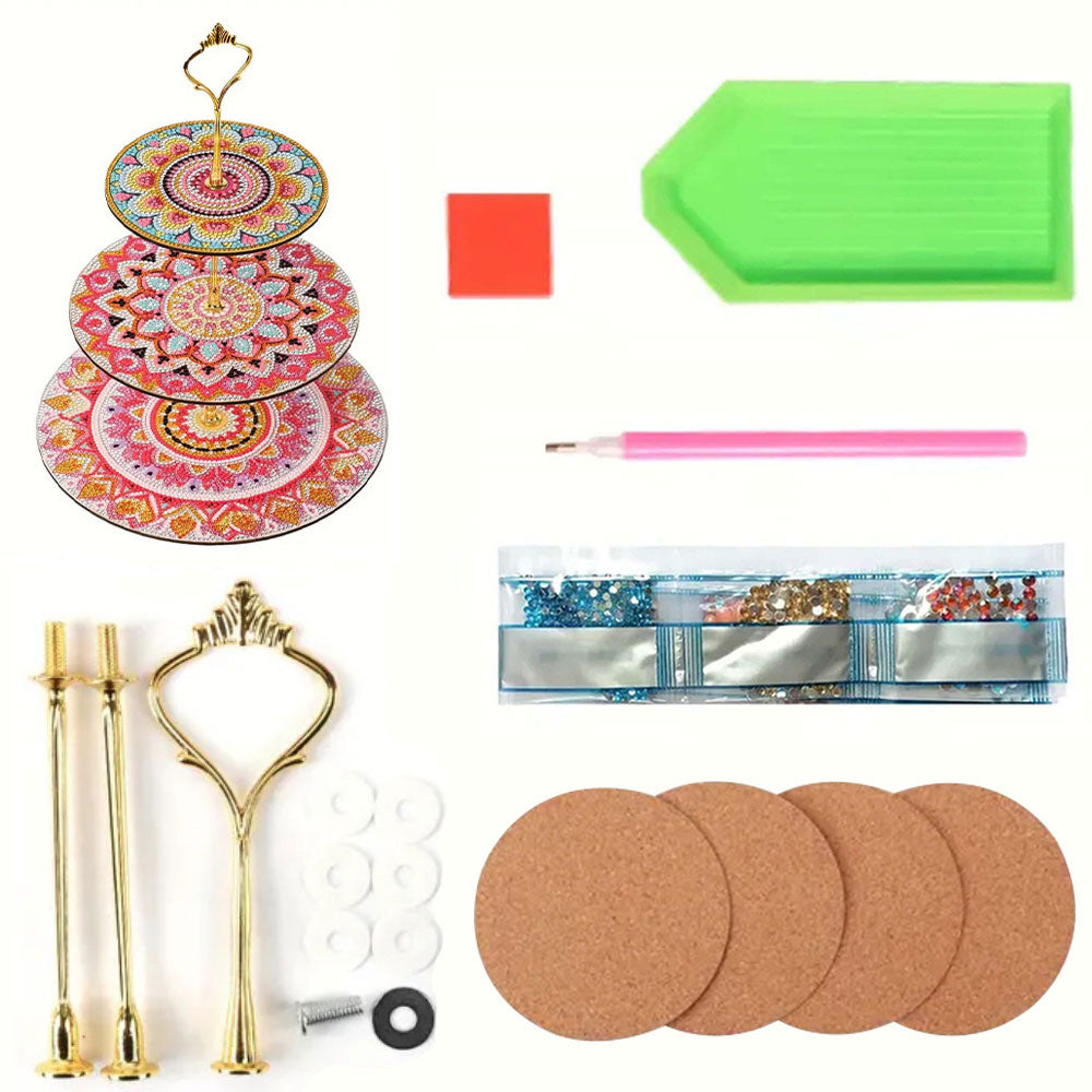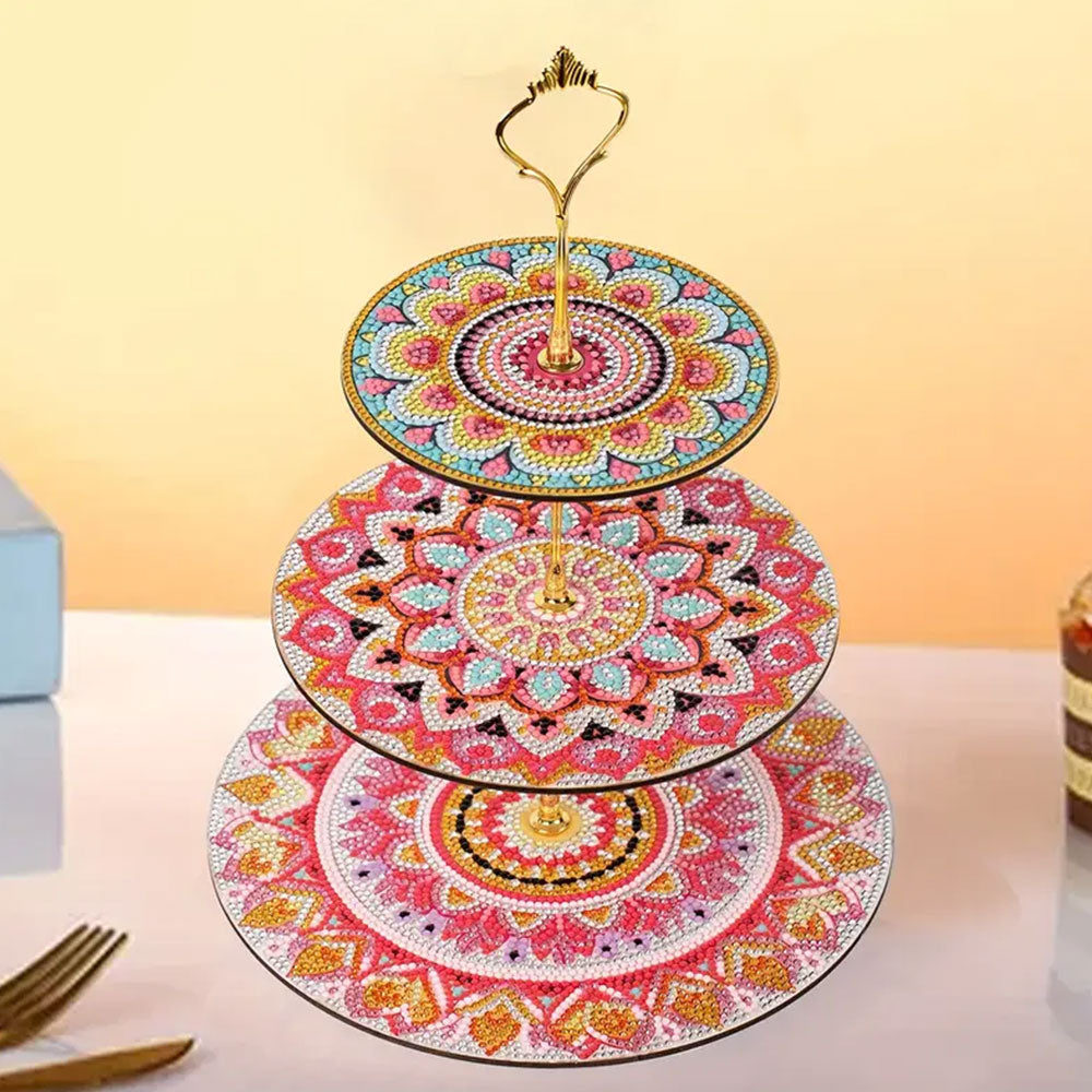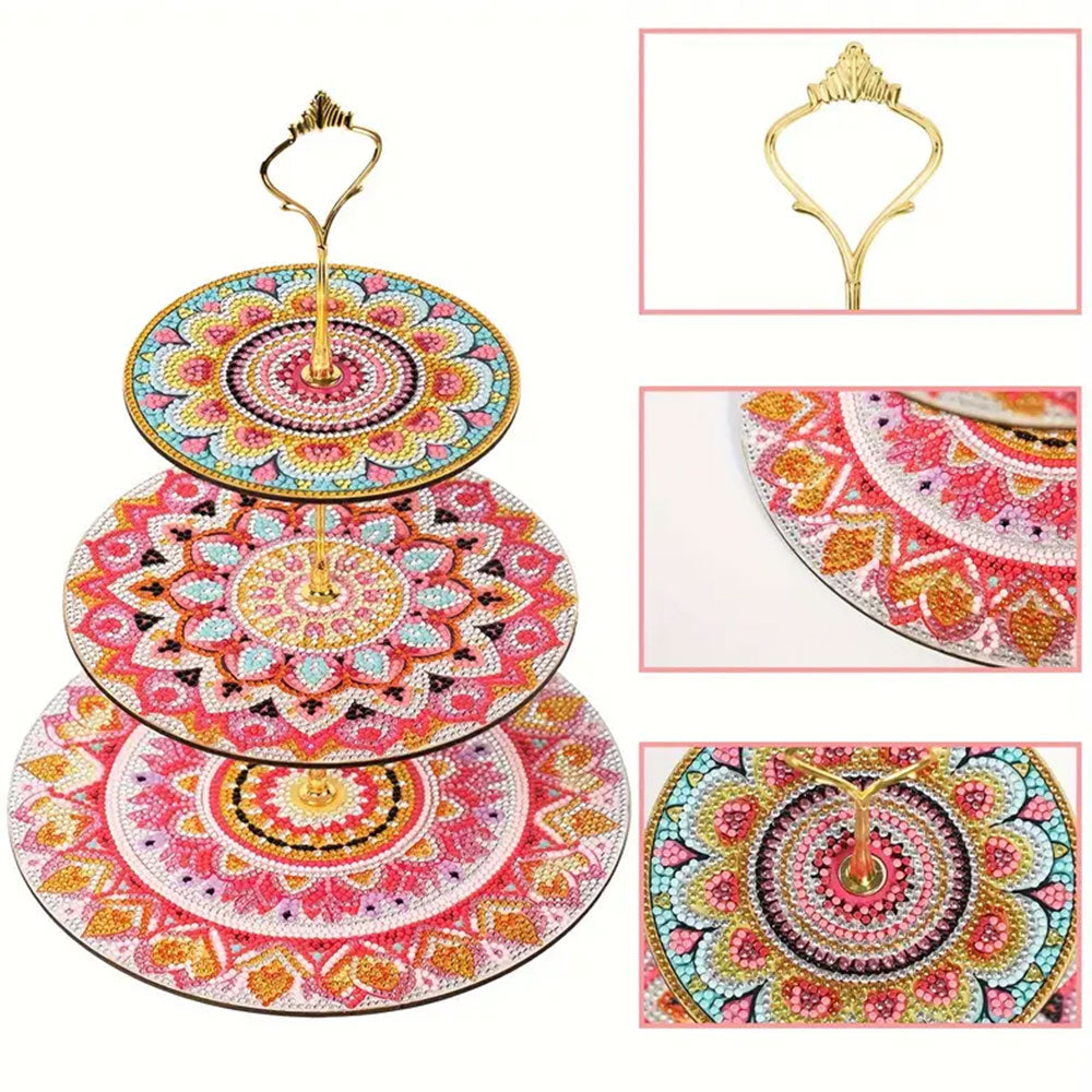 3-Stufig Rote Blumen Mandala Acryl Serviertablett Diamond Painting