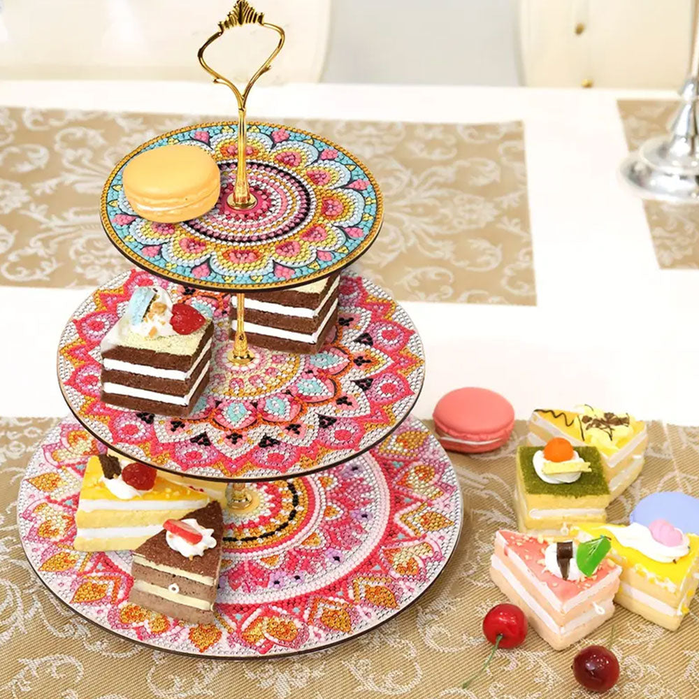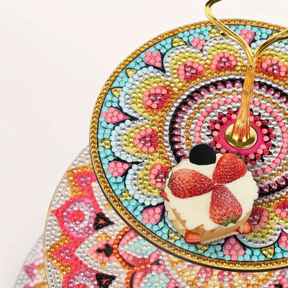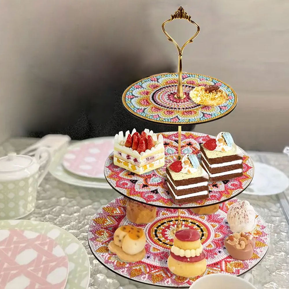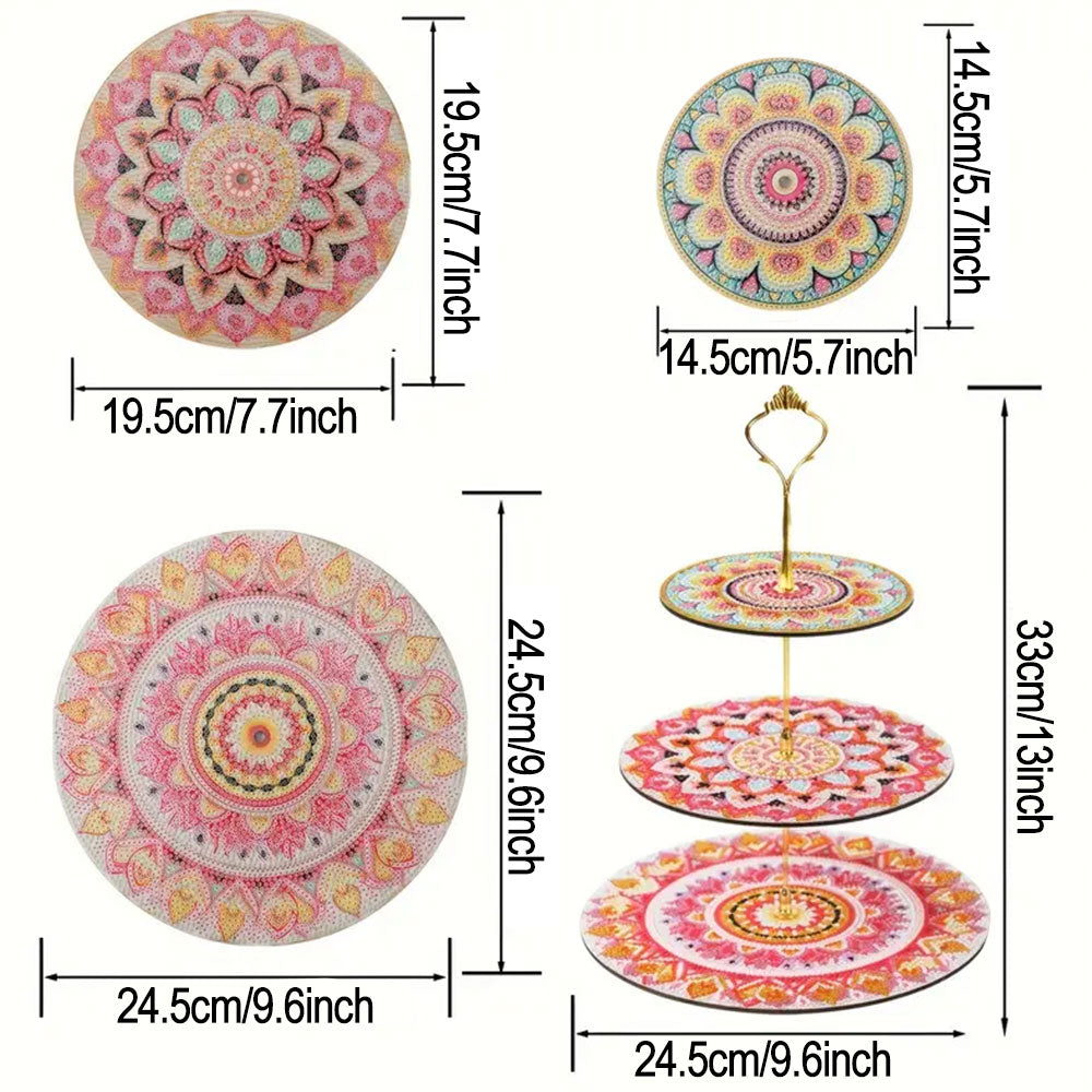 3-Stufig Rote Blumen Mandala Acryl Serviertablett Diamond Painting