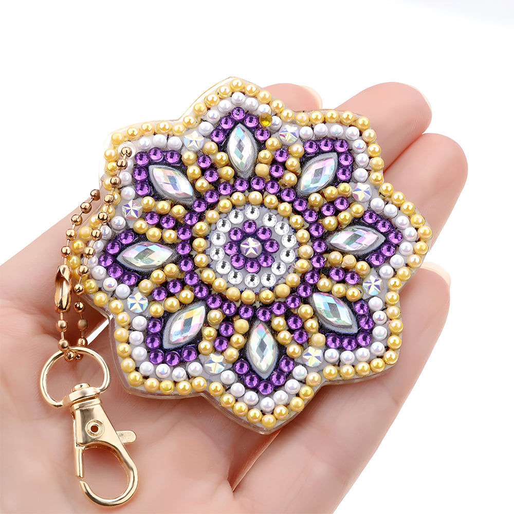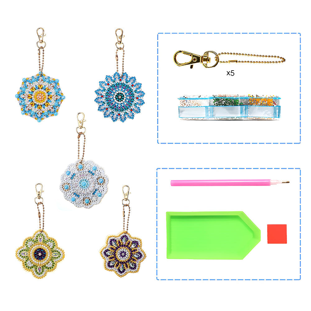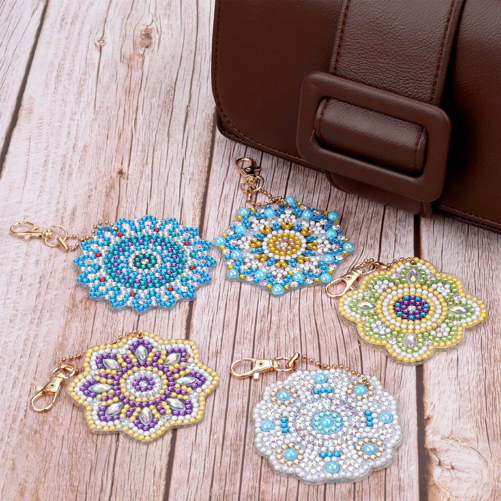 5 Stück Bunte Mandala Acryl Doppelseitiger Schlüsselanhänger Diamond Painting