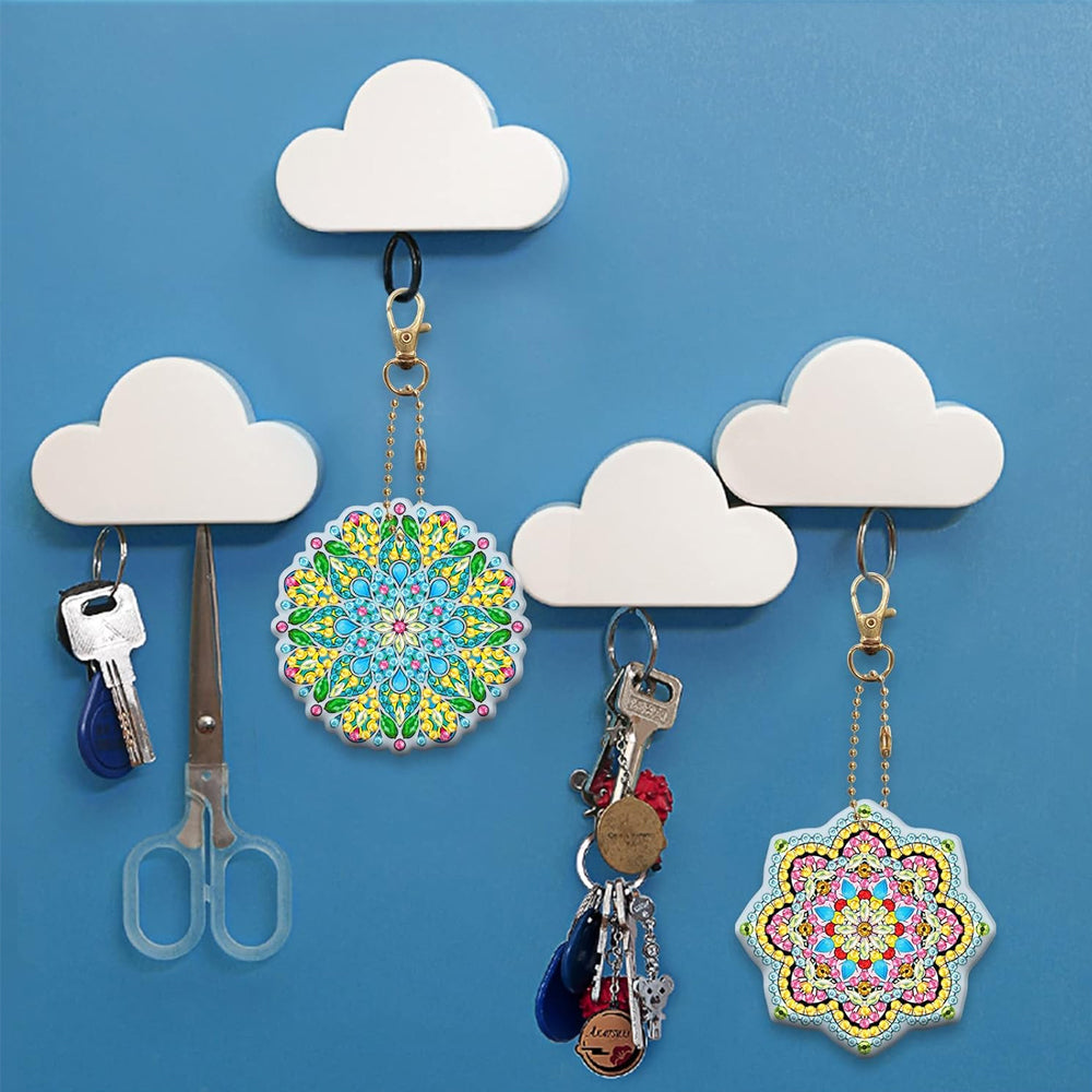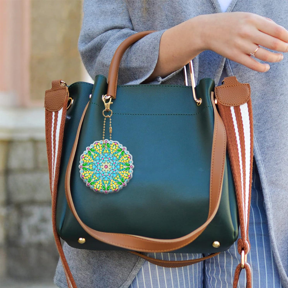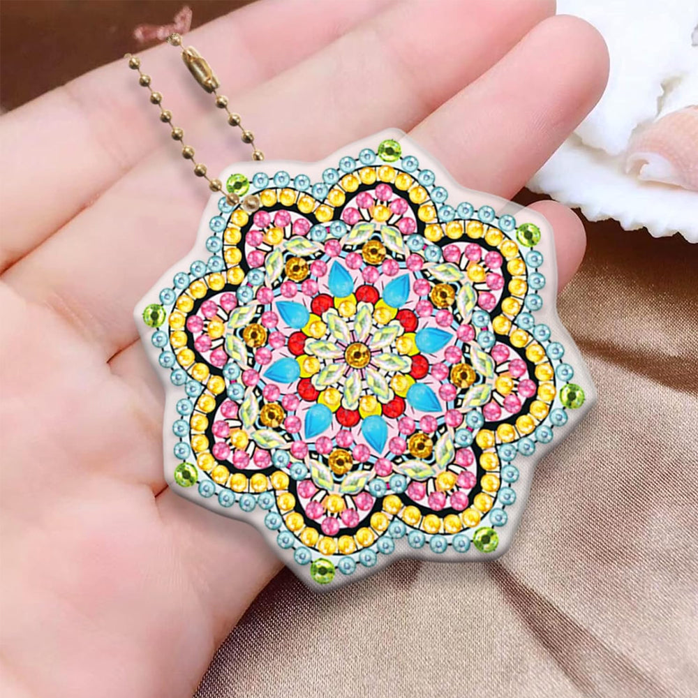 5Stück Bunte Mandala Blume Acryl Doppelseitiger Schlüsselanhänger Diamond Painting