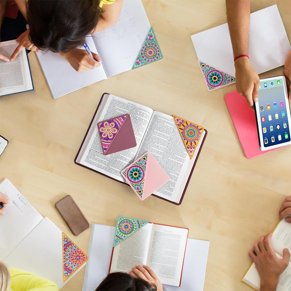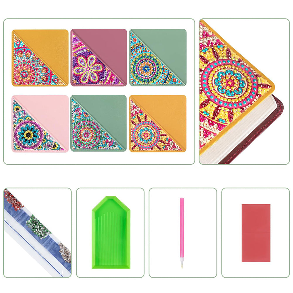 6St. Dreieck Mandala PU Ecke Abdeckung Lesezeichen Set Diamond Painting