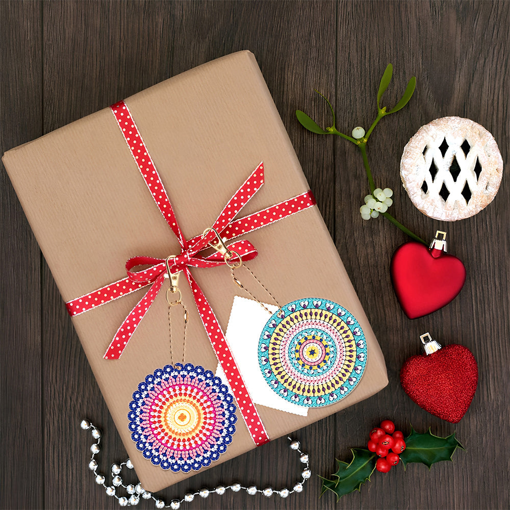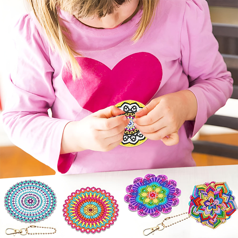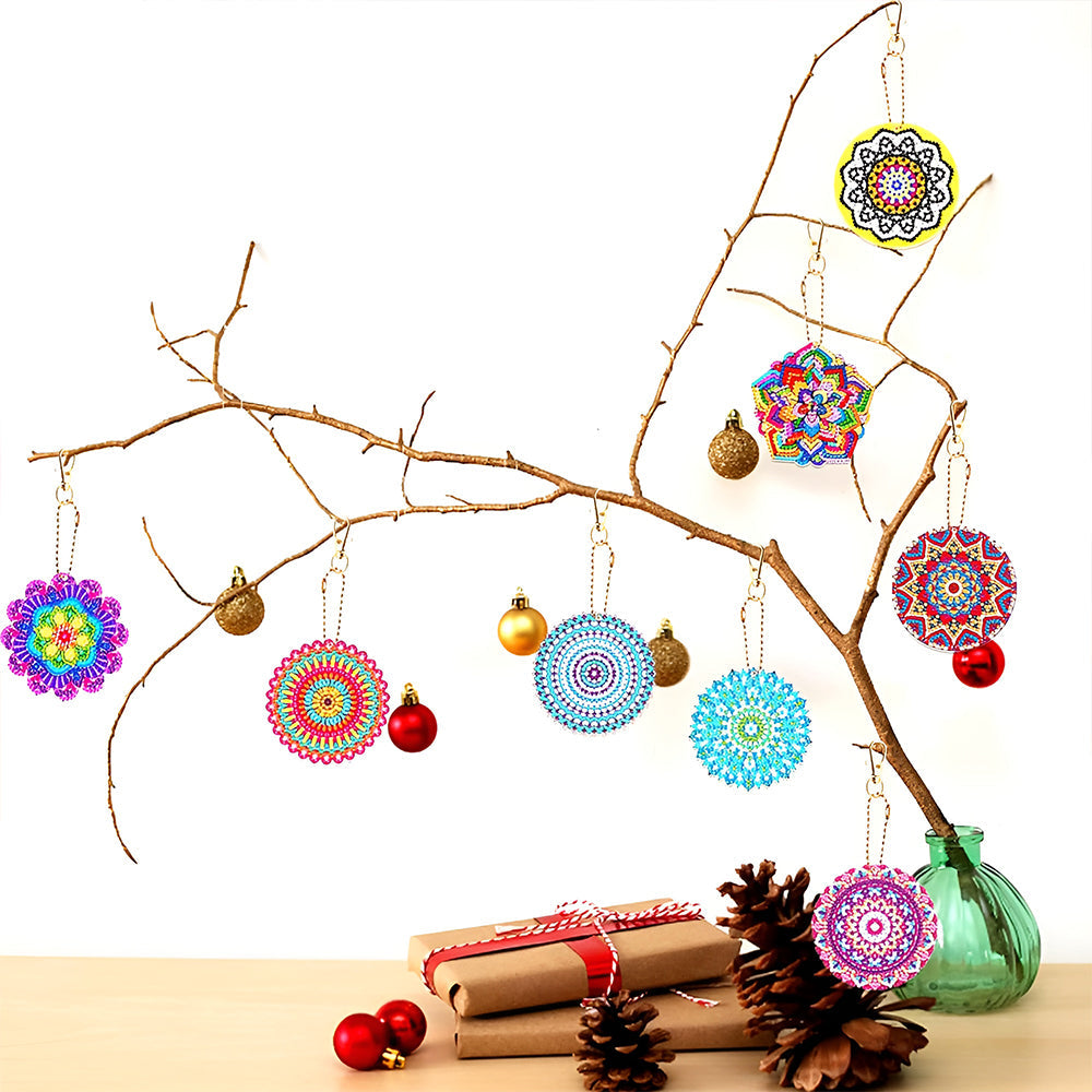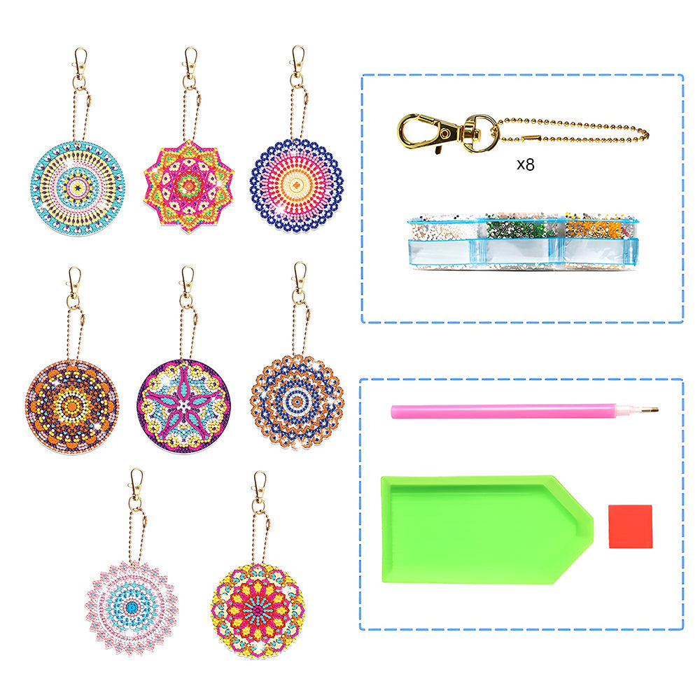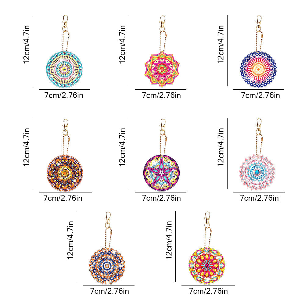 8Stück Bunte Mandala Acryl Doppelseitiger Schlüsselanhänger Diamond Painting