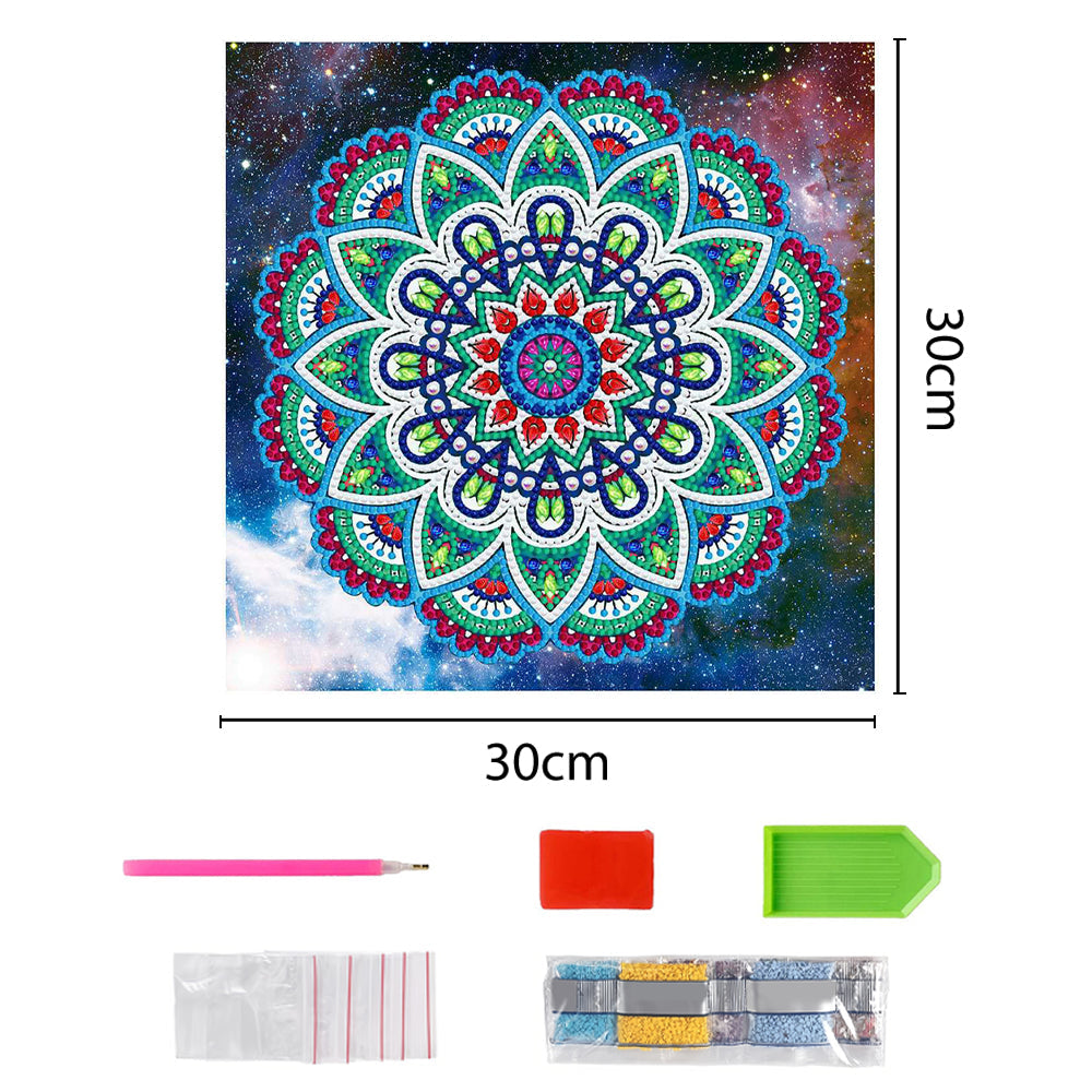 Blaues Lotus Mandala Leuchtend Sonderform Diamond Painting
