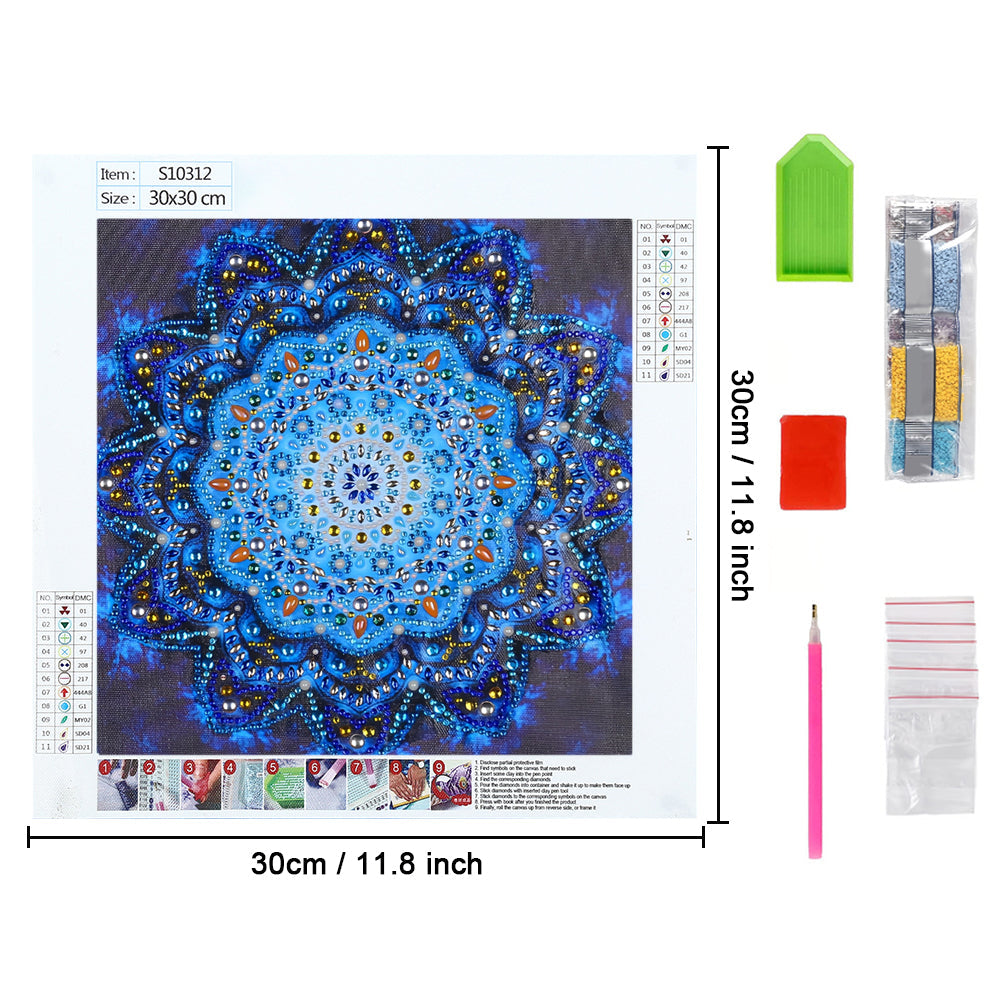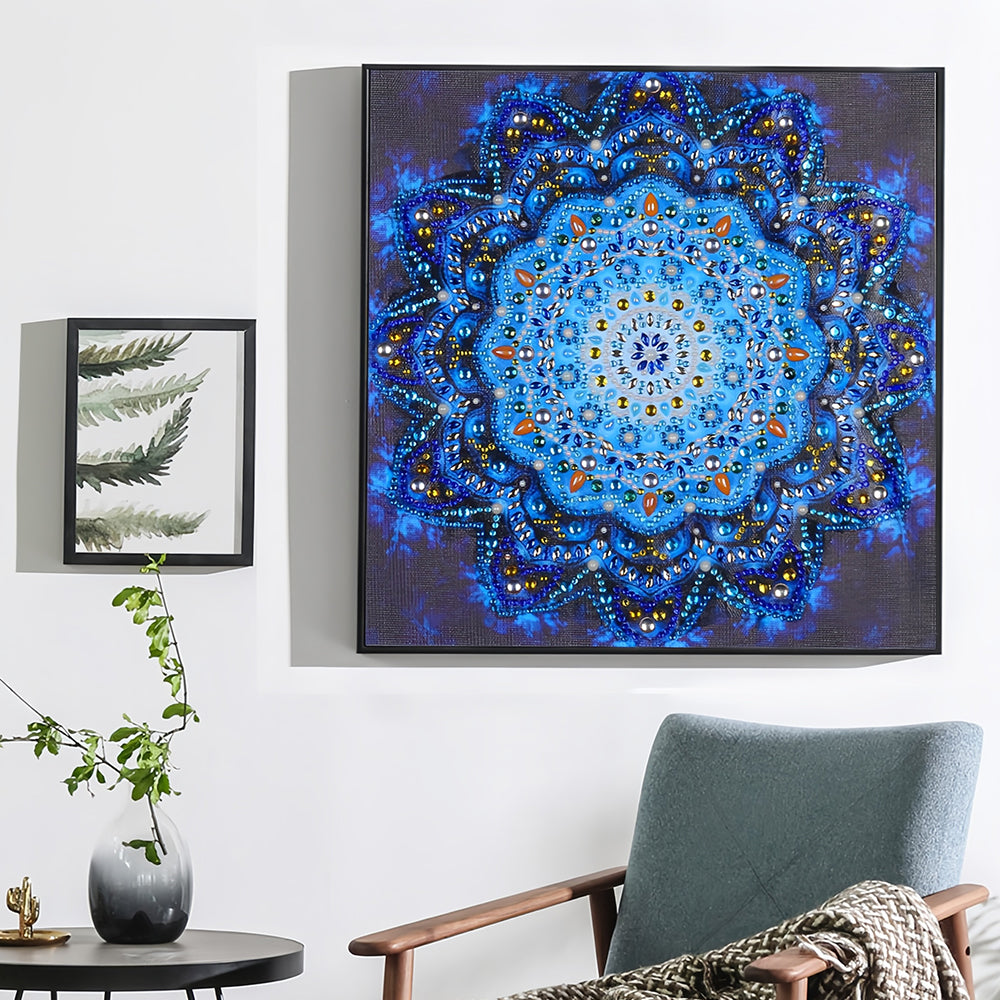 Glänzendes Blaues Mandala Sonderform Diamond Painting