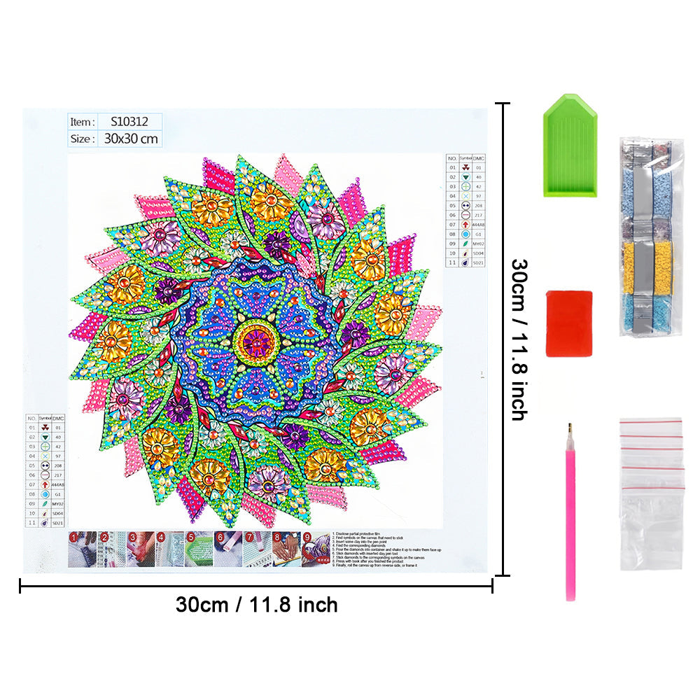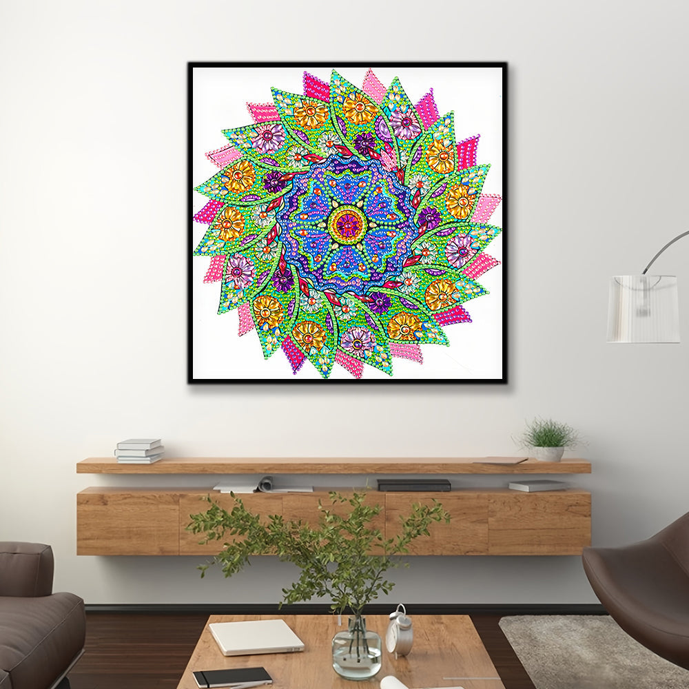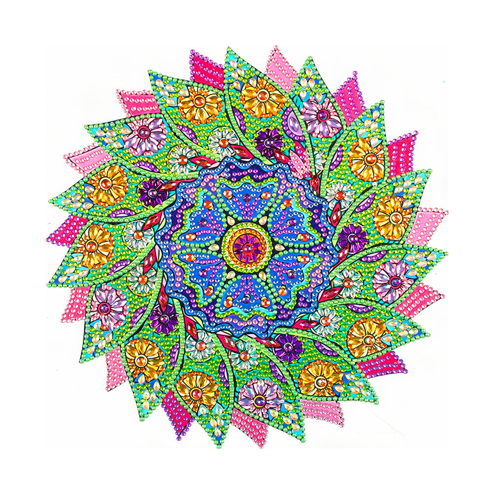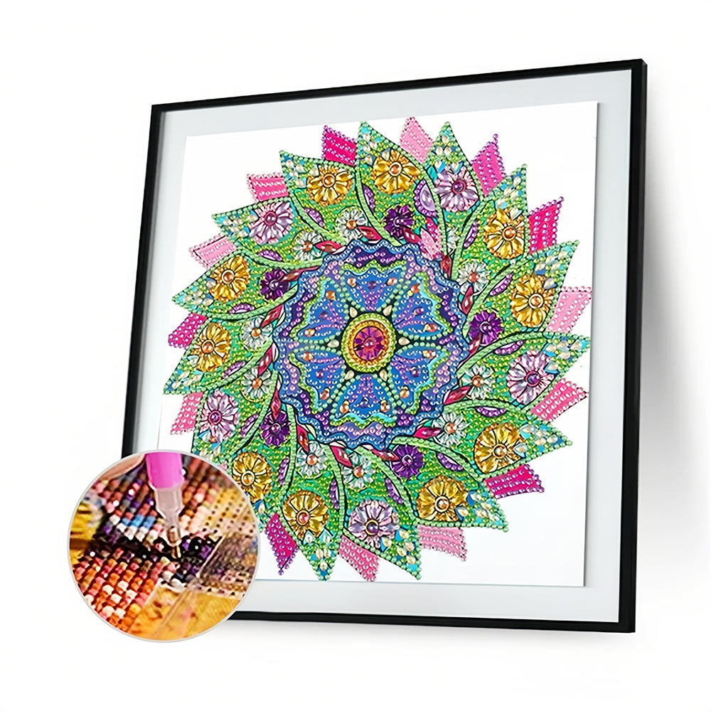 Grüne und Rosa Blätter Mandala Sonderform Diamond Painting