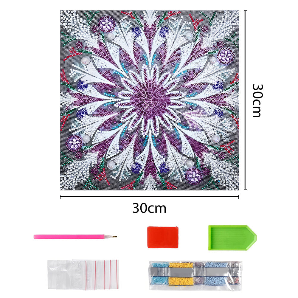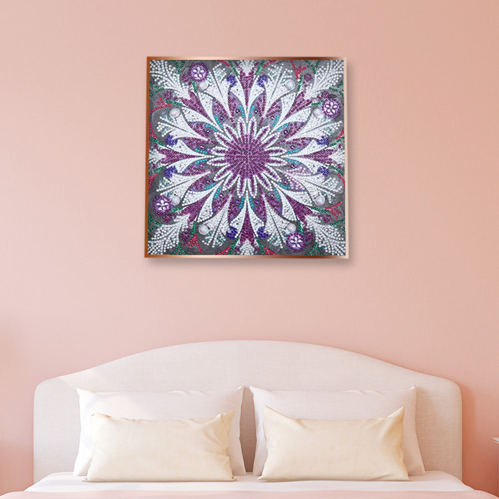 Lila und Weiß Mandala Leuchtend Sonderform Diamond Painting