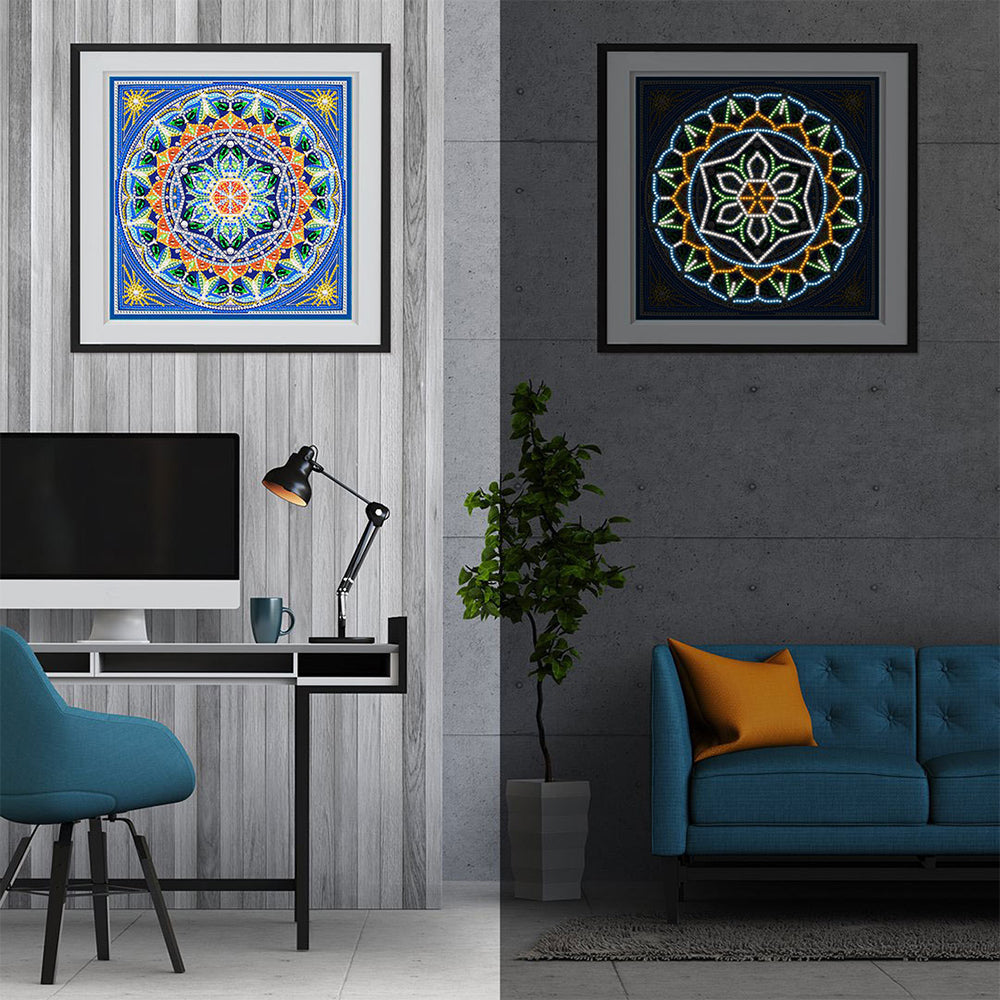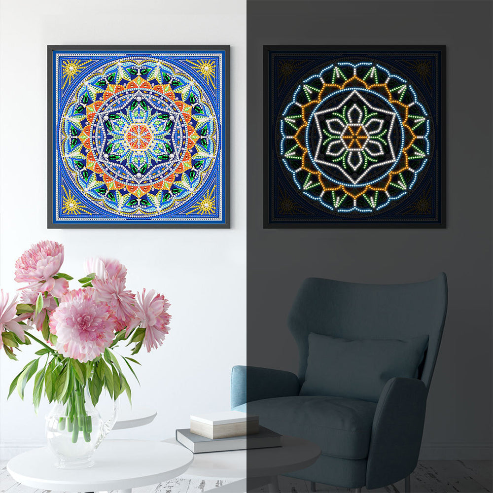 Quadratisches Mandala Farbig Leuchtend Sonderform Diamond Painting