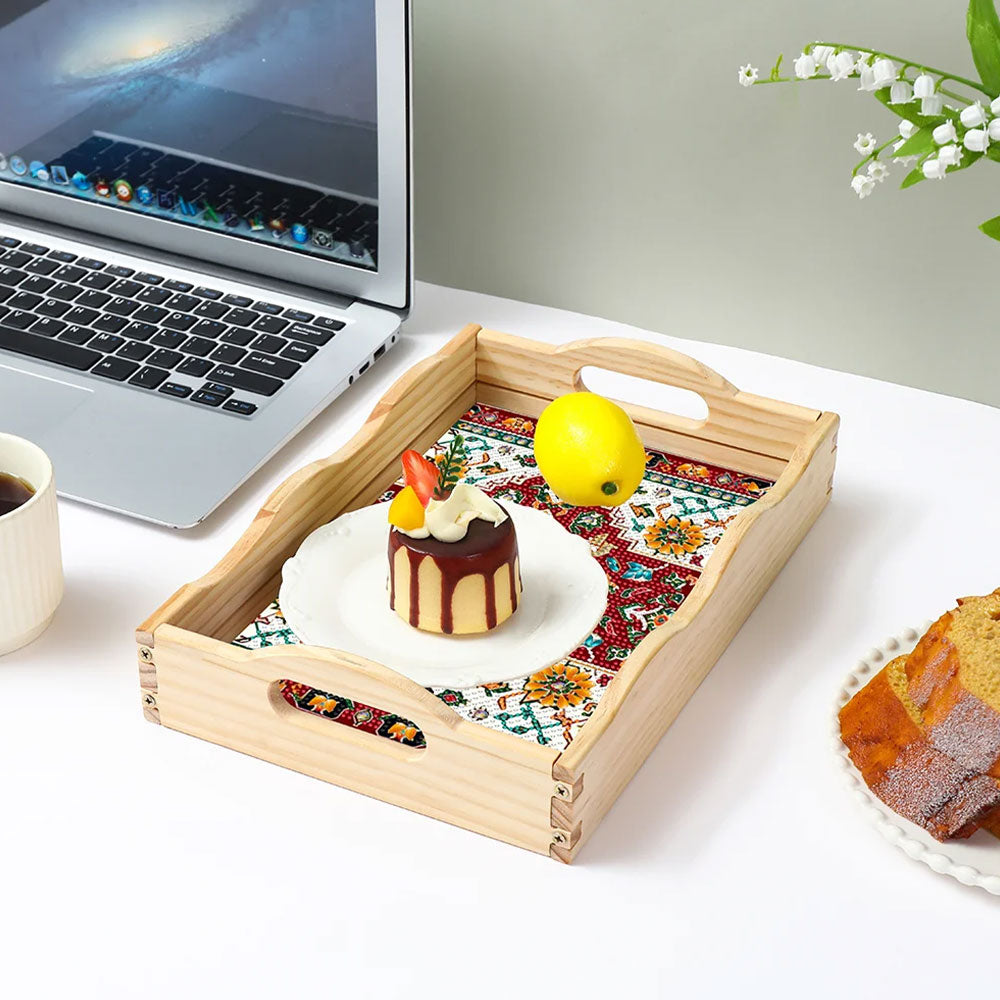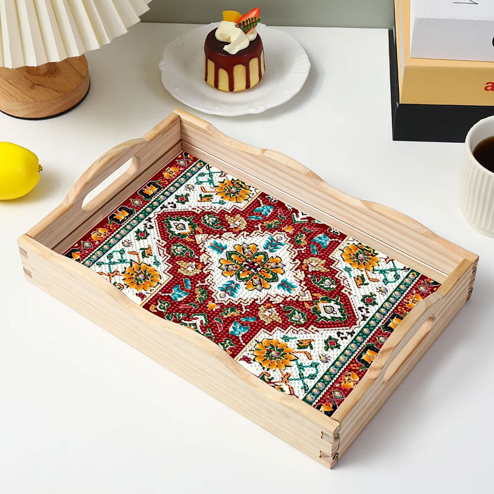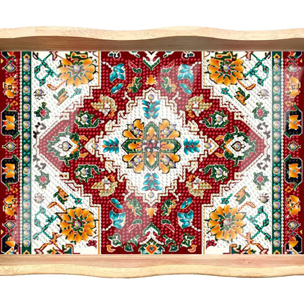 Retro Rotes Mandala Holz Serviertablett Diamond Painting