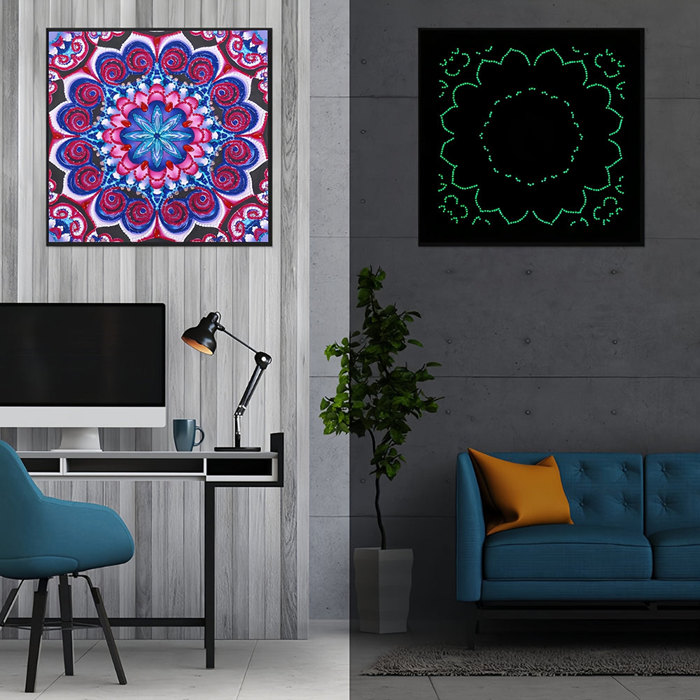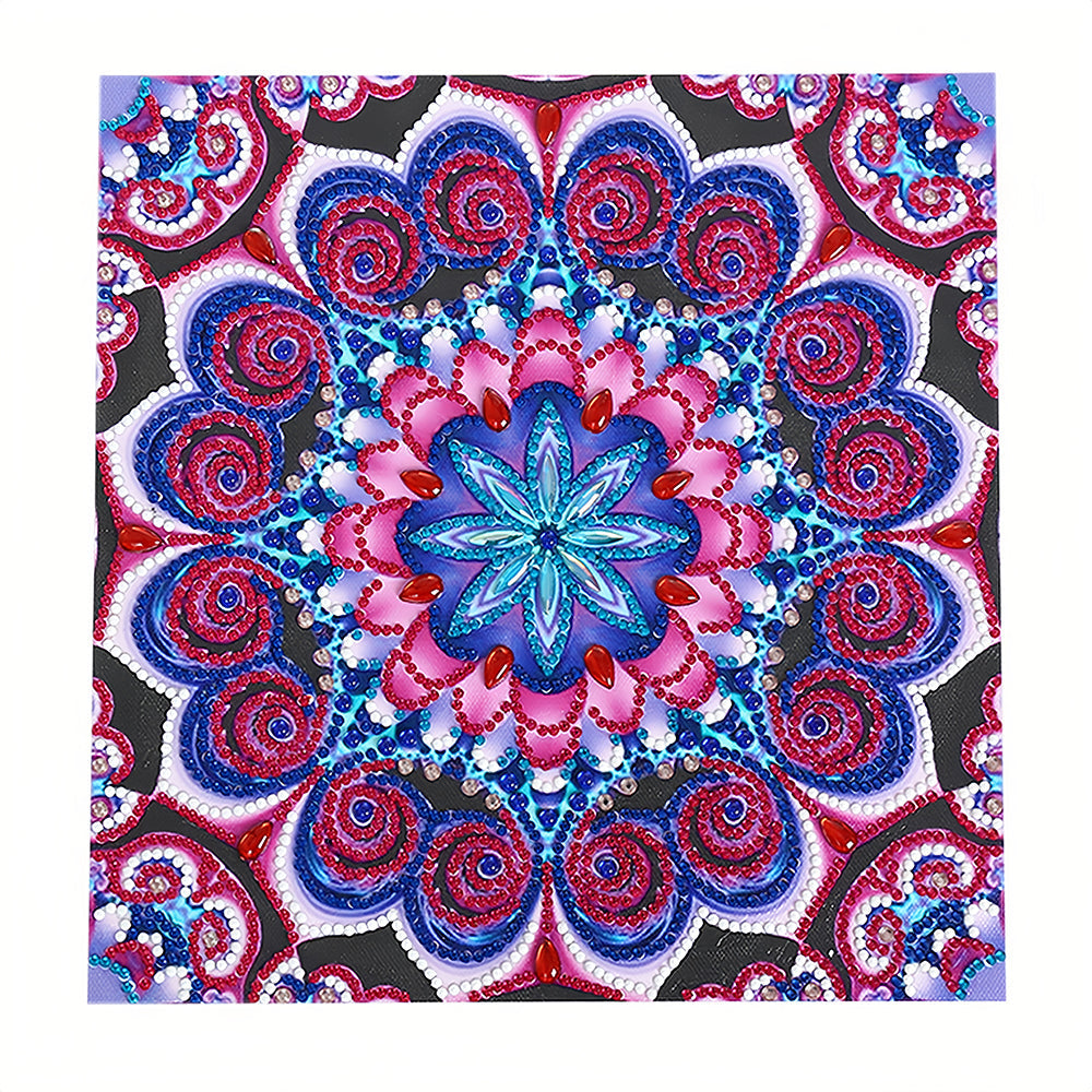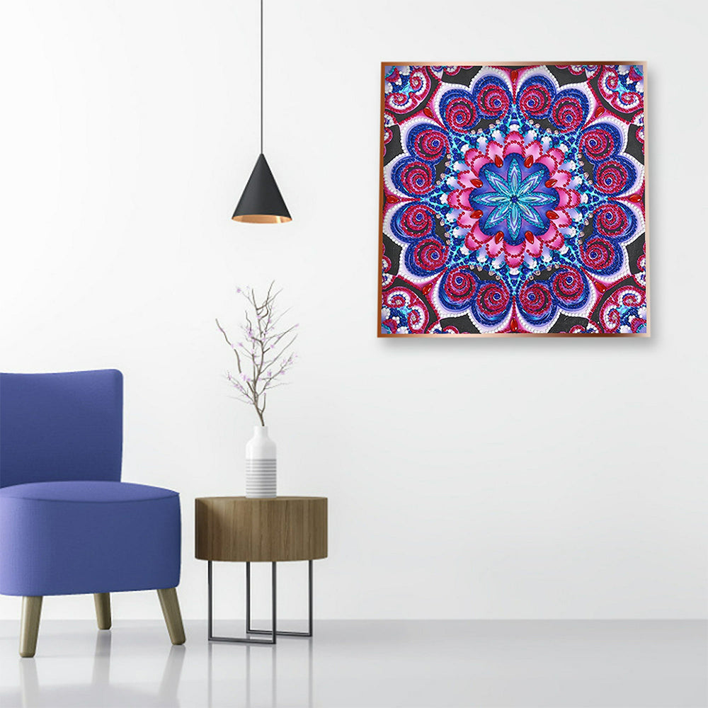 Rot und Blau Mandala Leuchtend Sonderform Diamond Painting