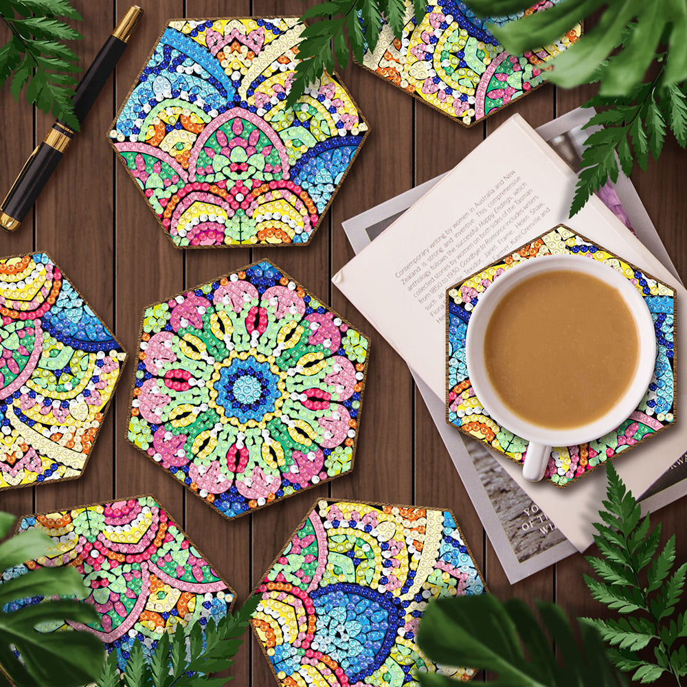 7Stück Sechseckiges Mandala Diamond Painting Untersetzer