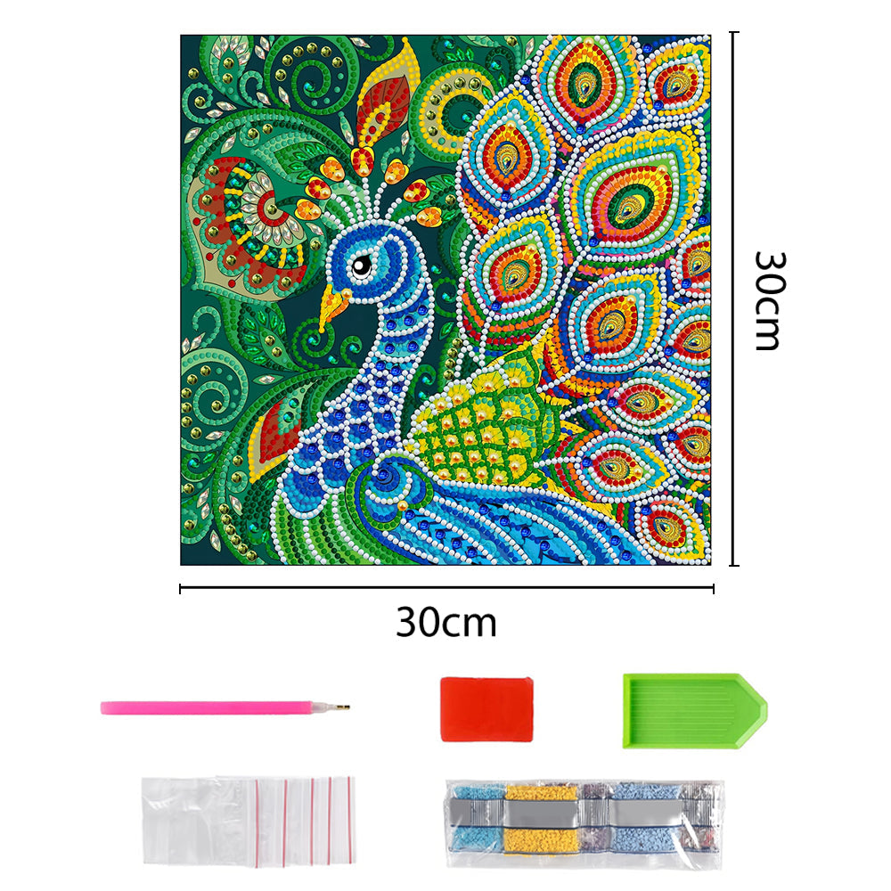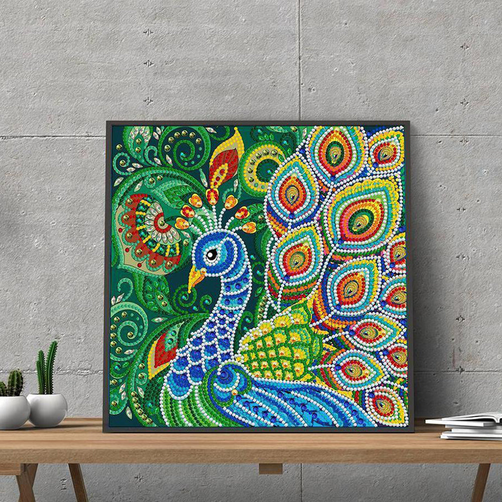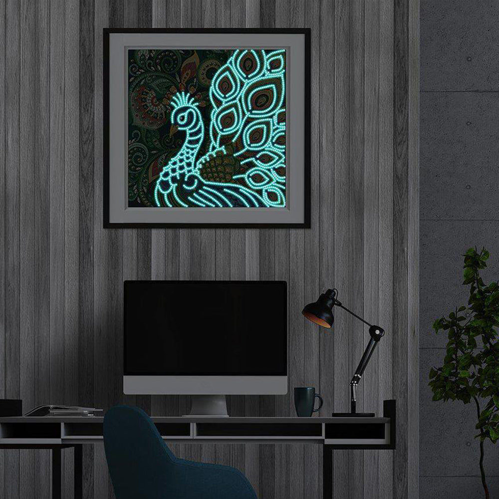 Grüner Pfau Leuchtend Sonderform Diamond Painting