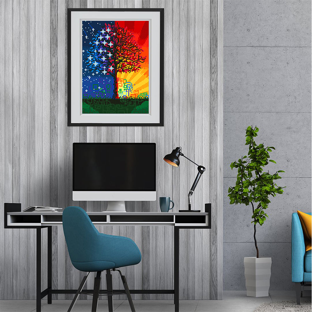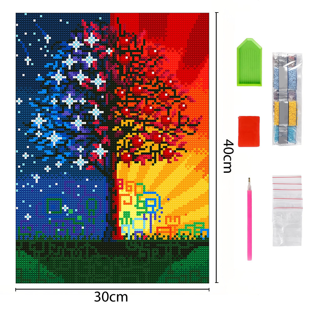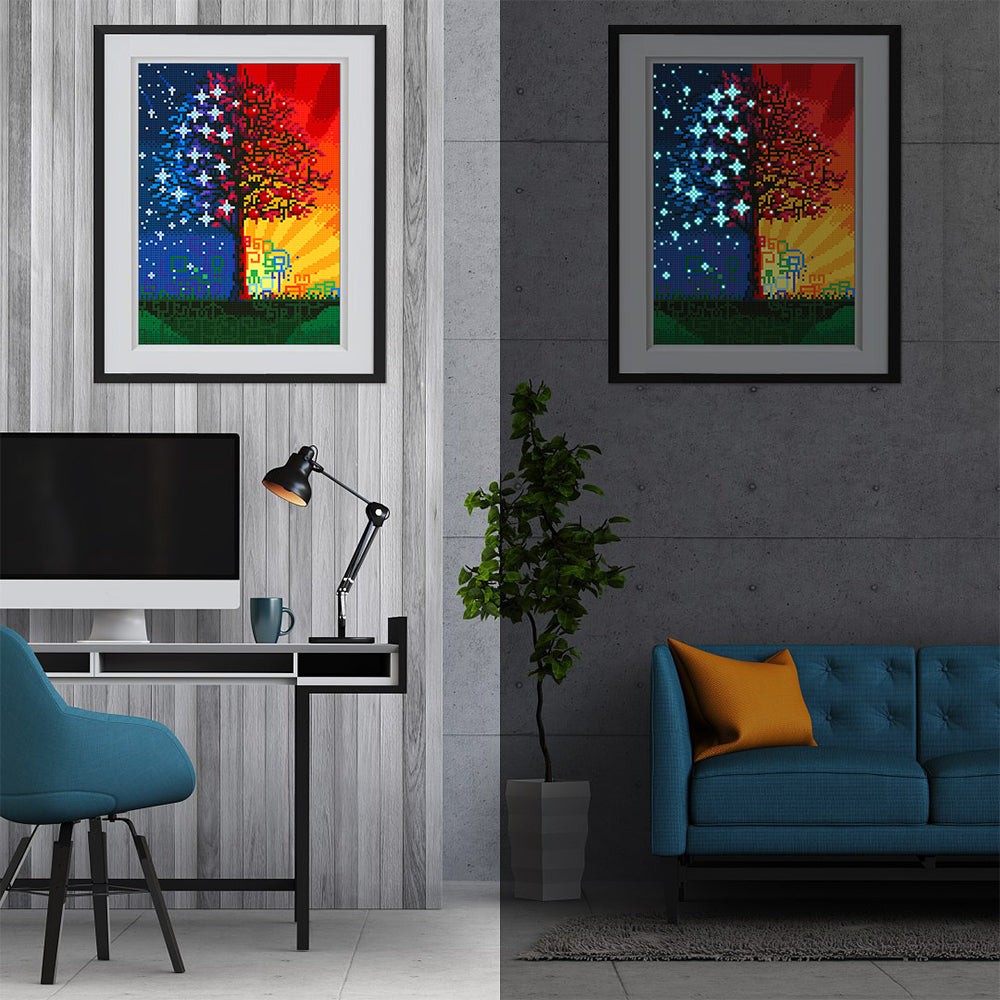 Sterne und Sonnenschein Baum Leuchtend Kristall Strass Diamond Painting