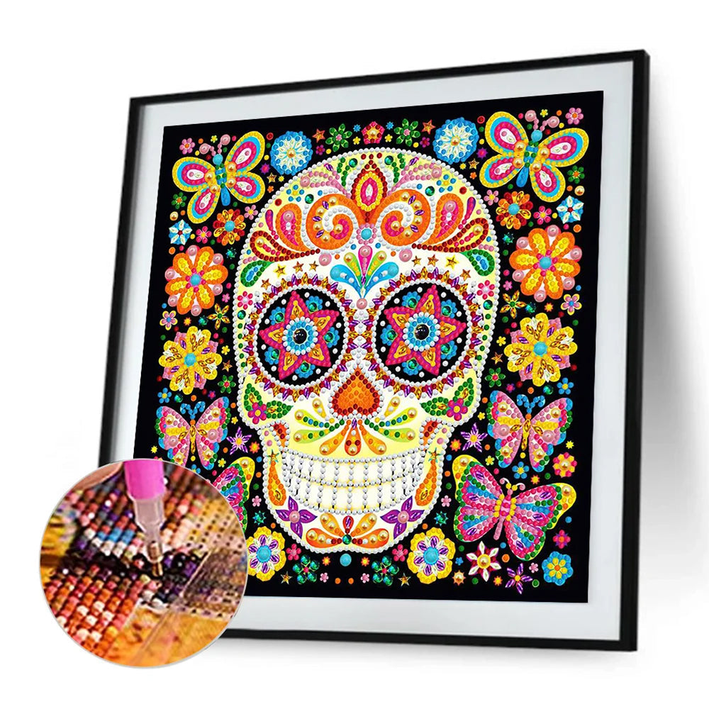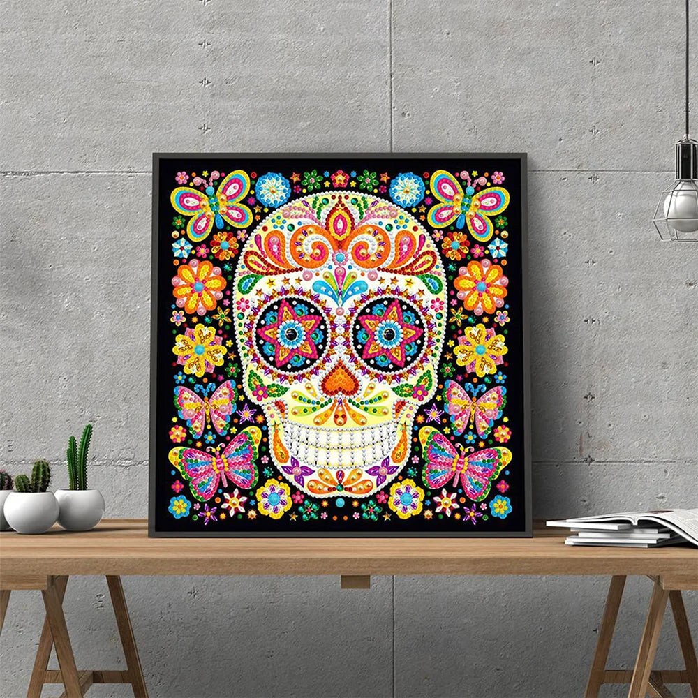 Totenkopf und Schmetterling Leuchtend Sonderform Diamond Painting