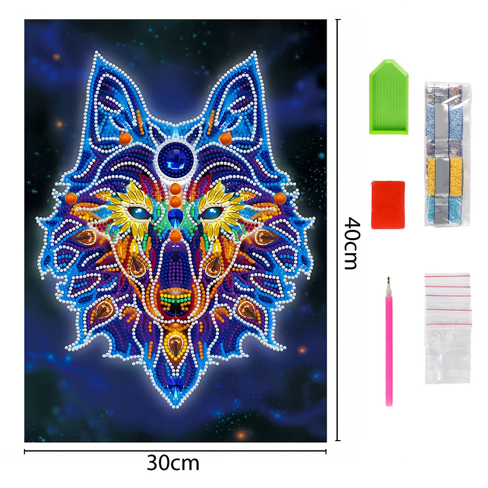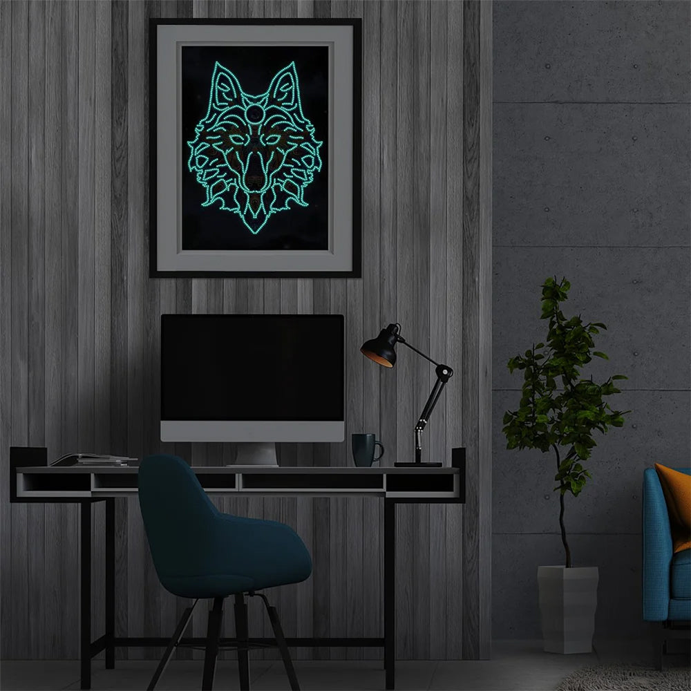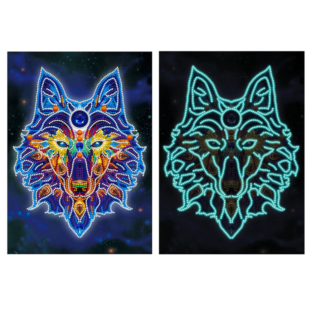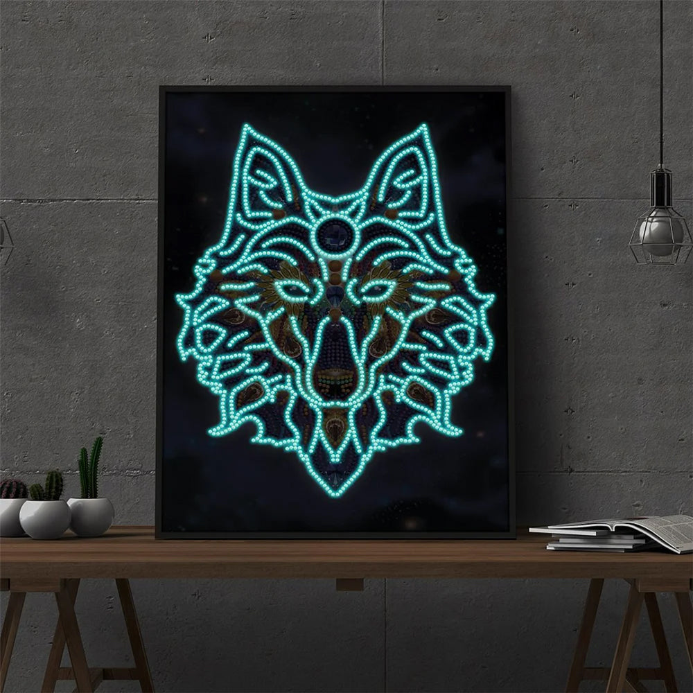 Wolf Kopf Leuchtend Sonderform Diamond Painting