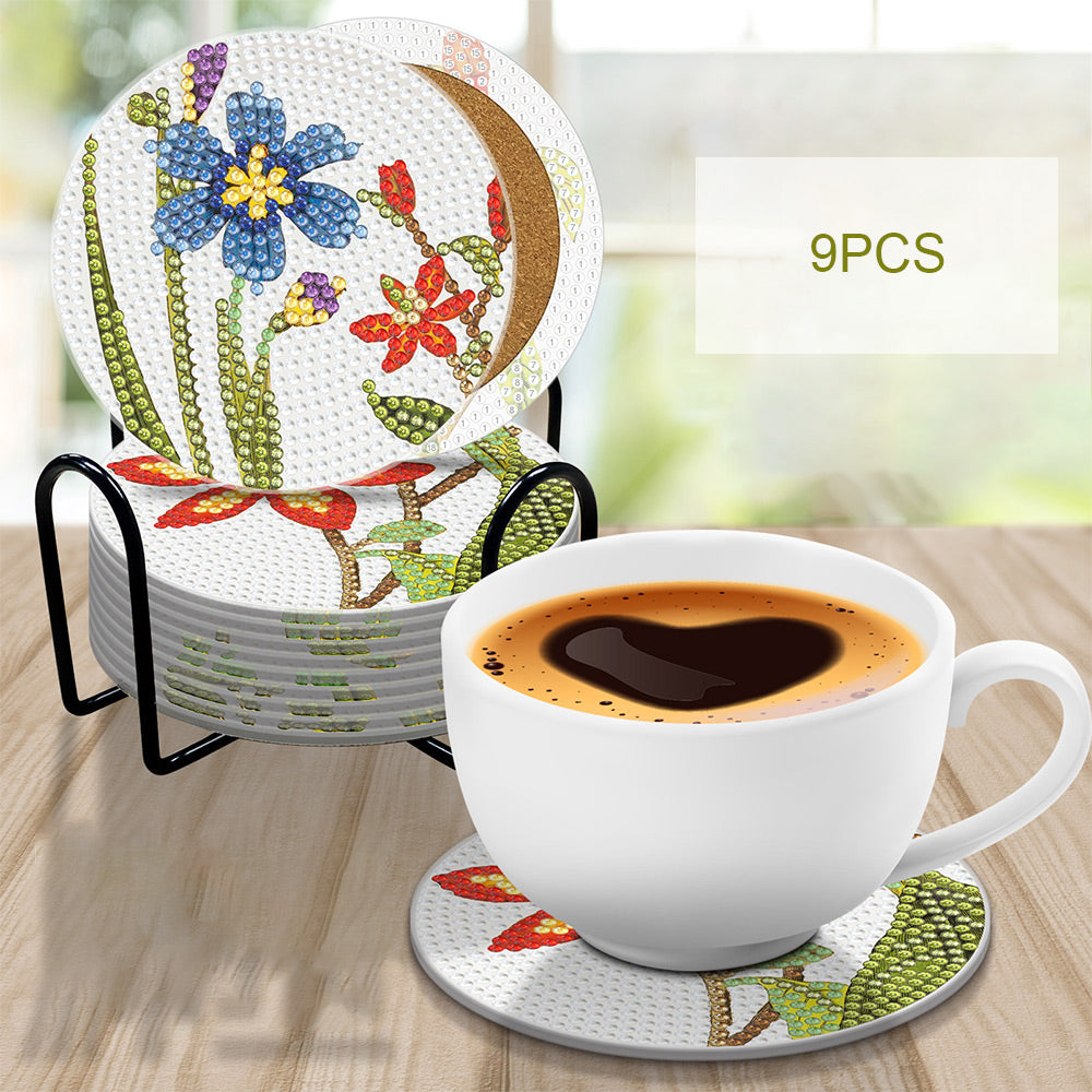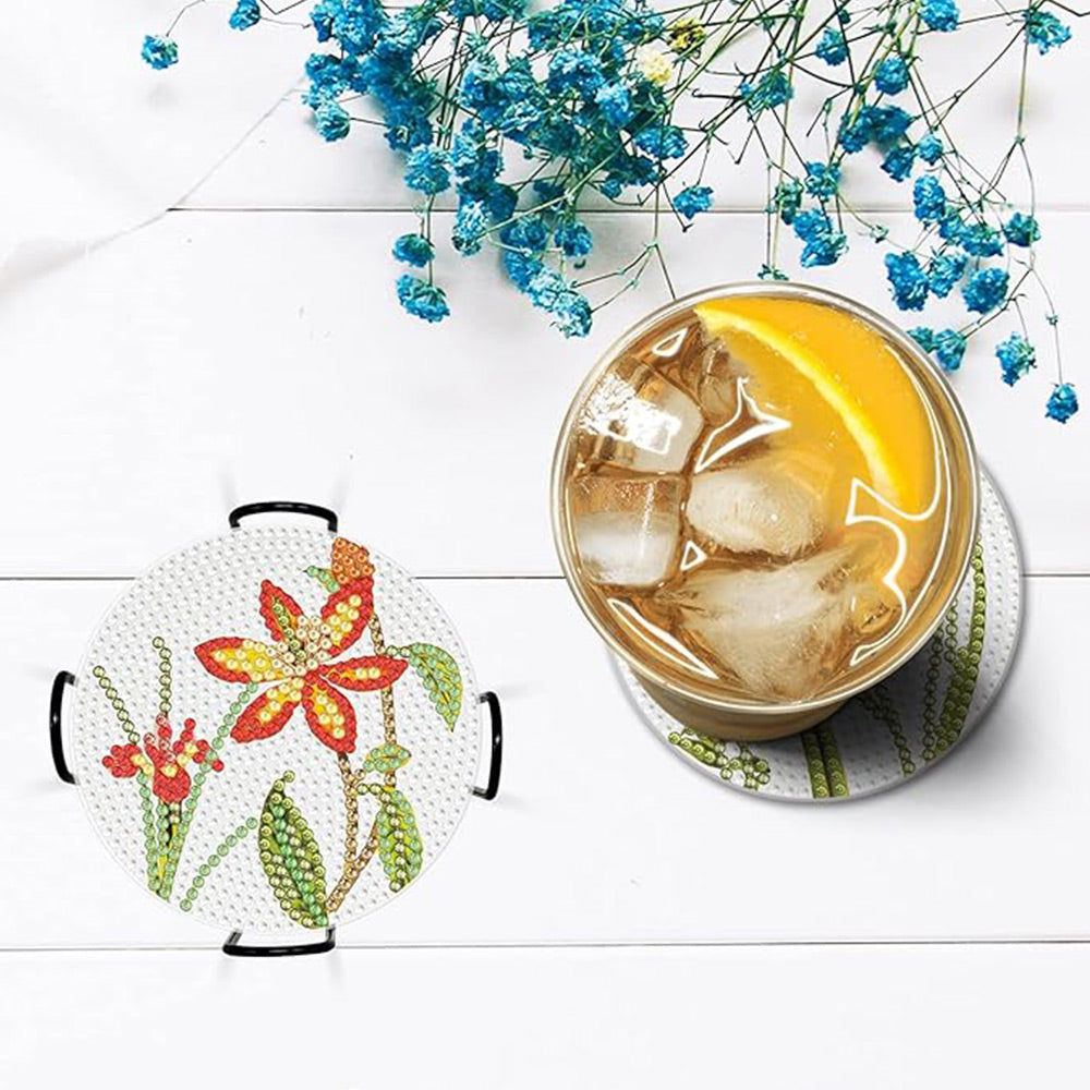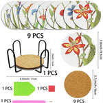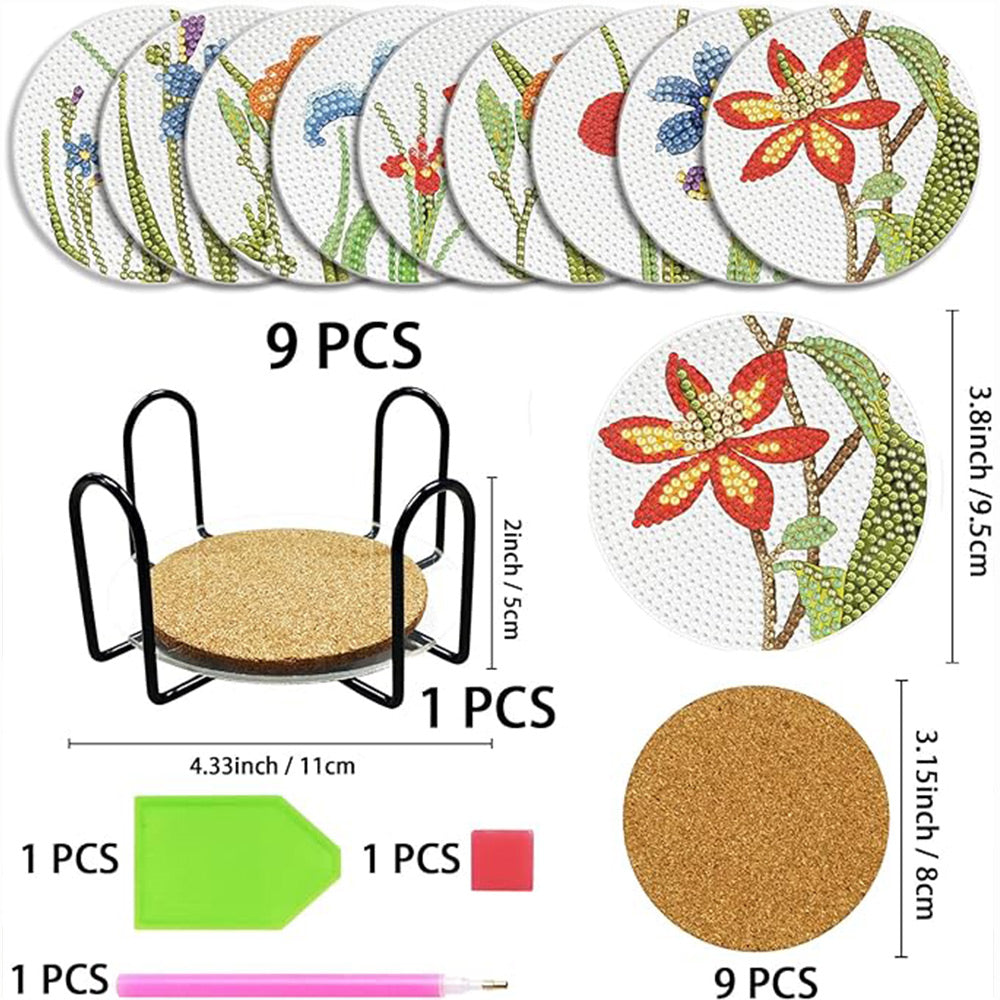 9Stück Orchideenblüte Diamond Painting Untersetzer