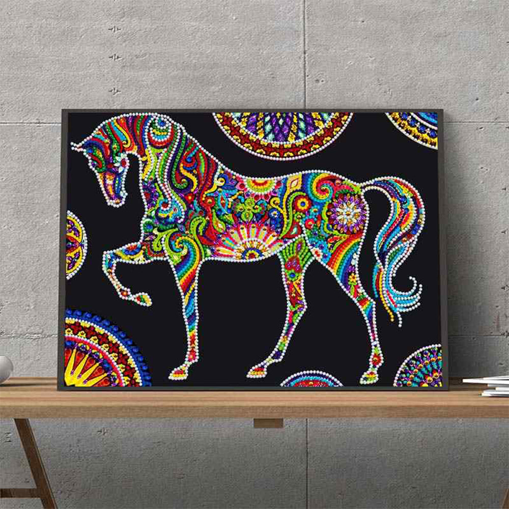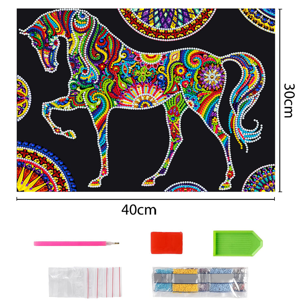 Blumen Pferd Leuchtend Sonderform Diamond Painting
