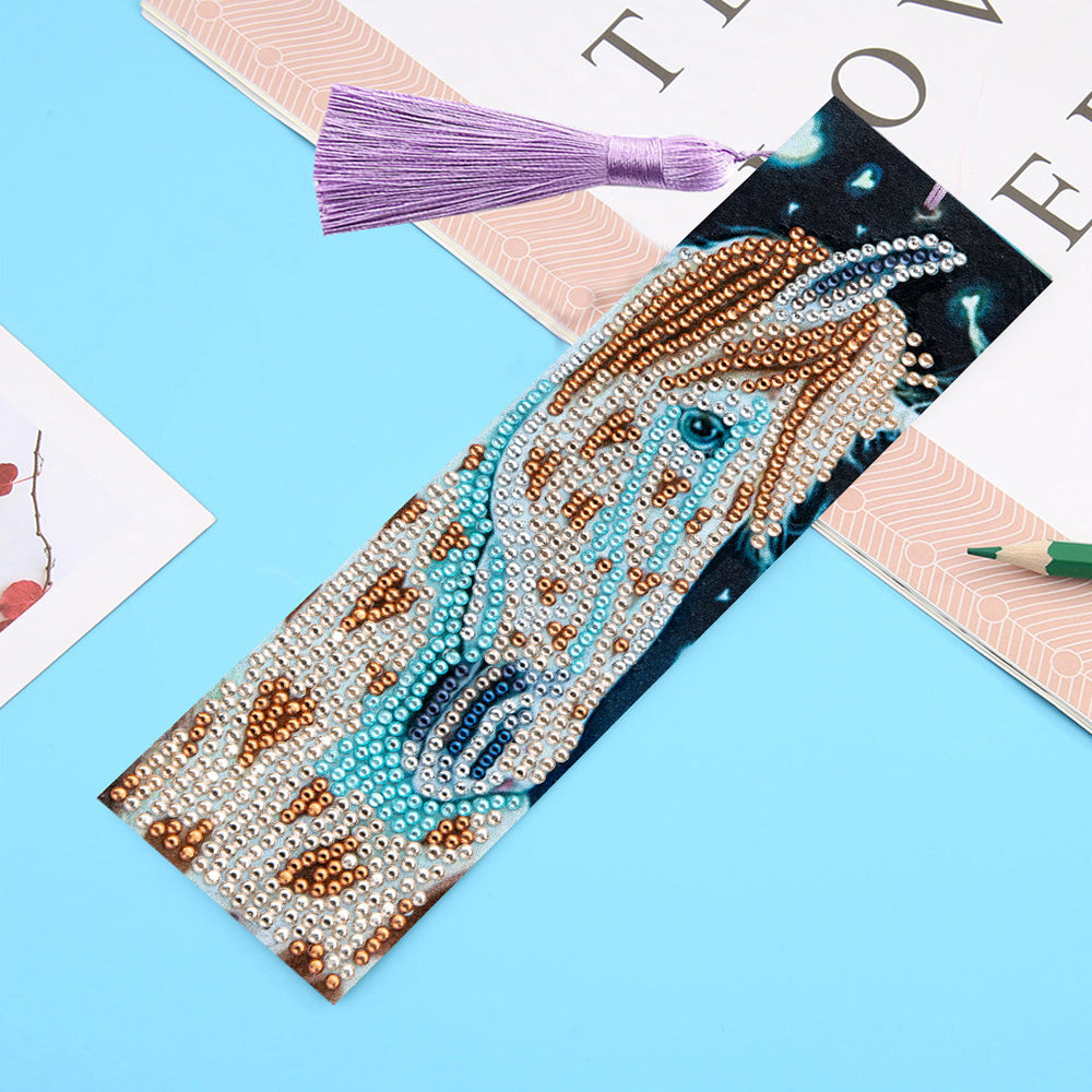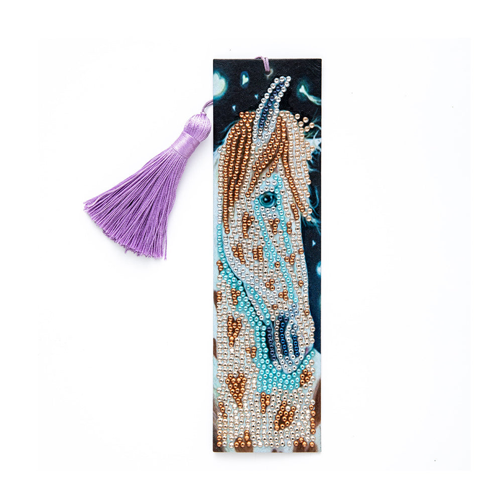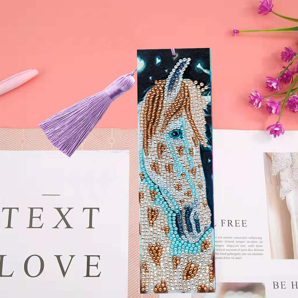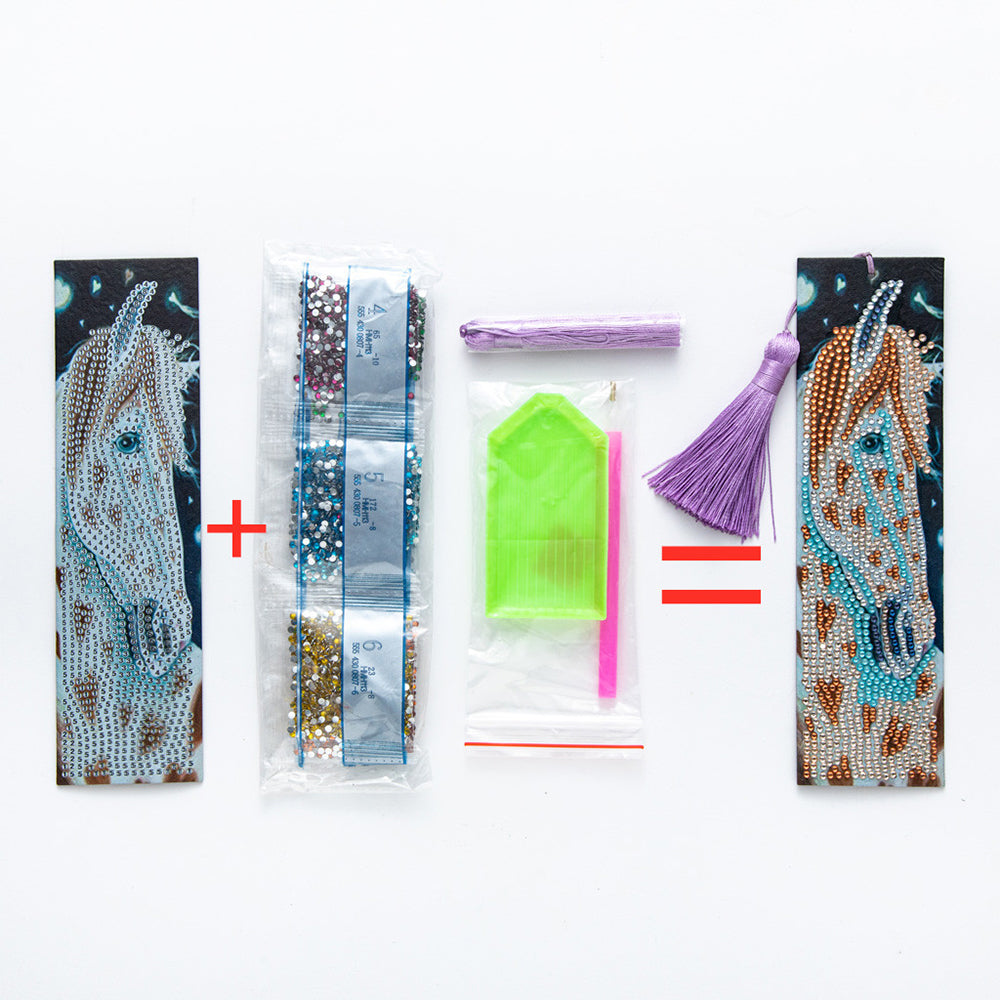 Weißes und Braunes Pferd Leder Lesezeichen Diamond Painting