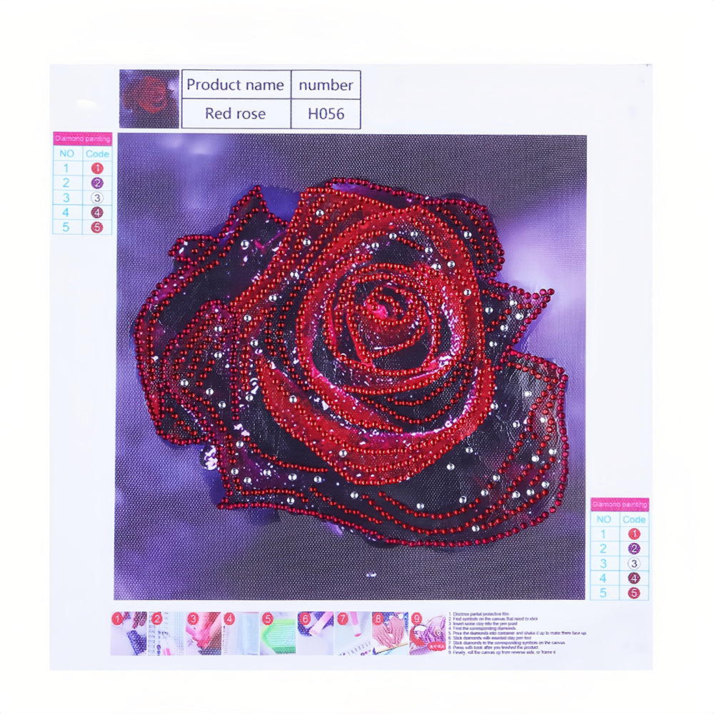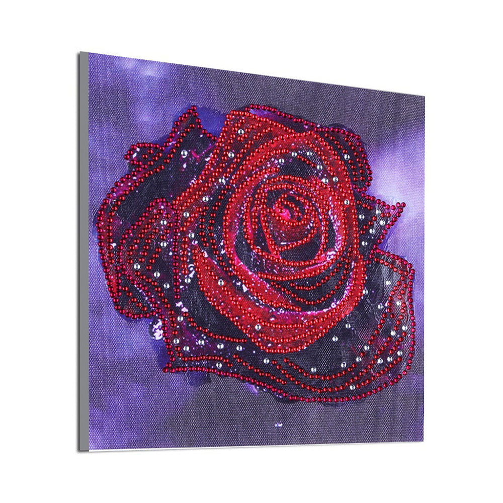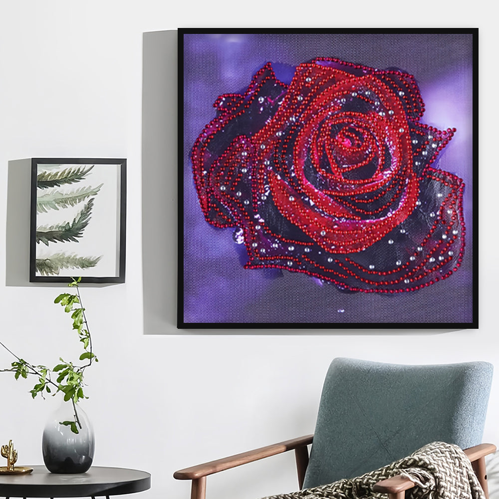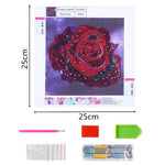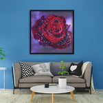 Rote Rose mit Tautropfen Sonderform Diamond Painting