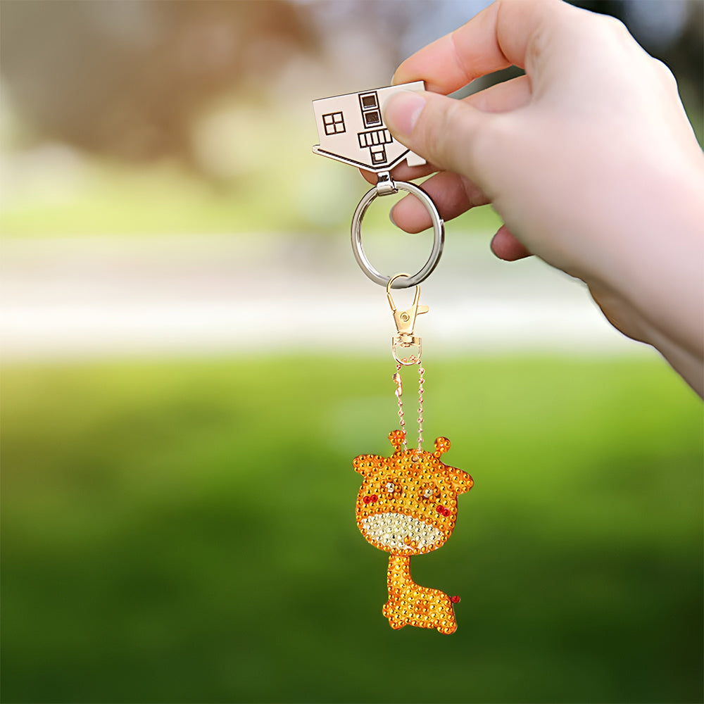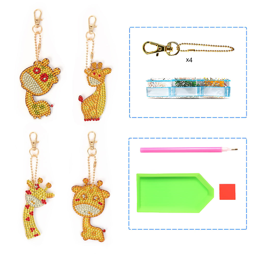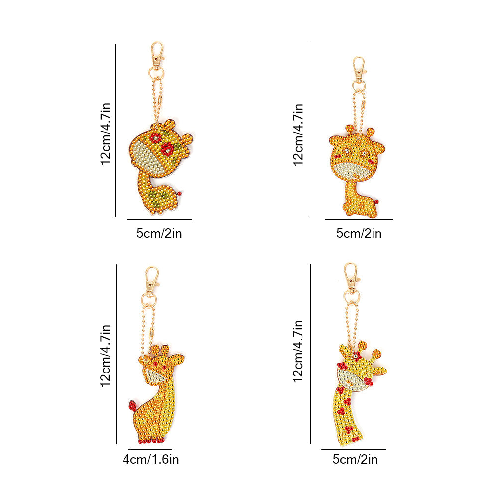 4Pcs Niedliche Baby-Giraffe Acryl Doppelseitiger Schlüsselanhänger Diamond Painting