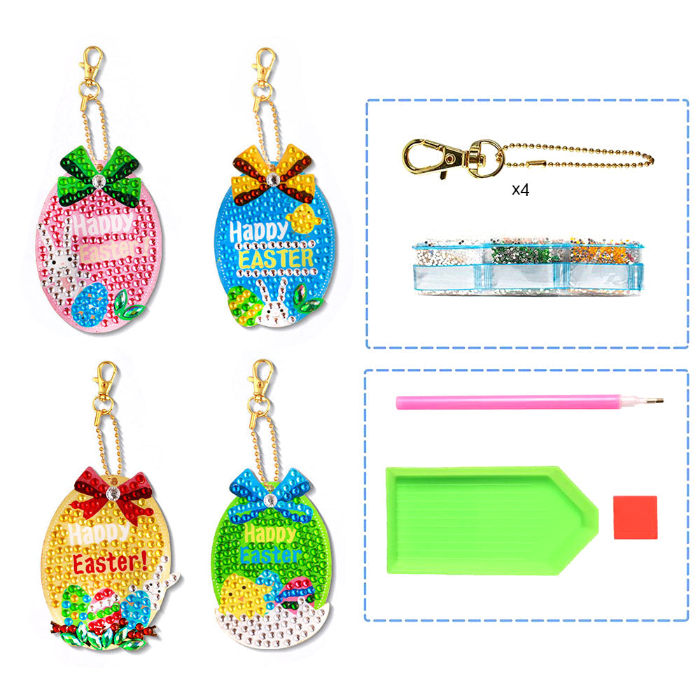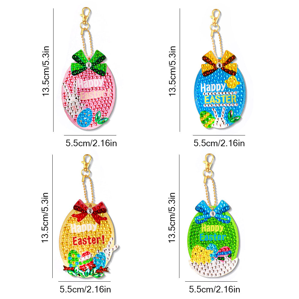 4Pcs Ostereier Acryl Doppelseitiger Schlüsselanhänger Diamond Painting
