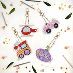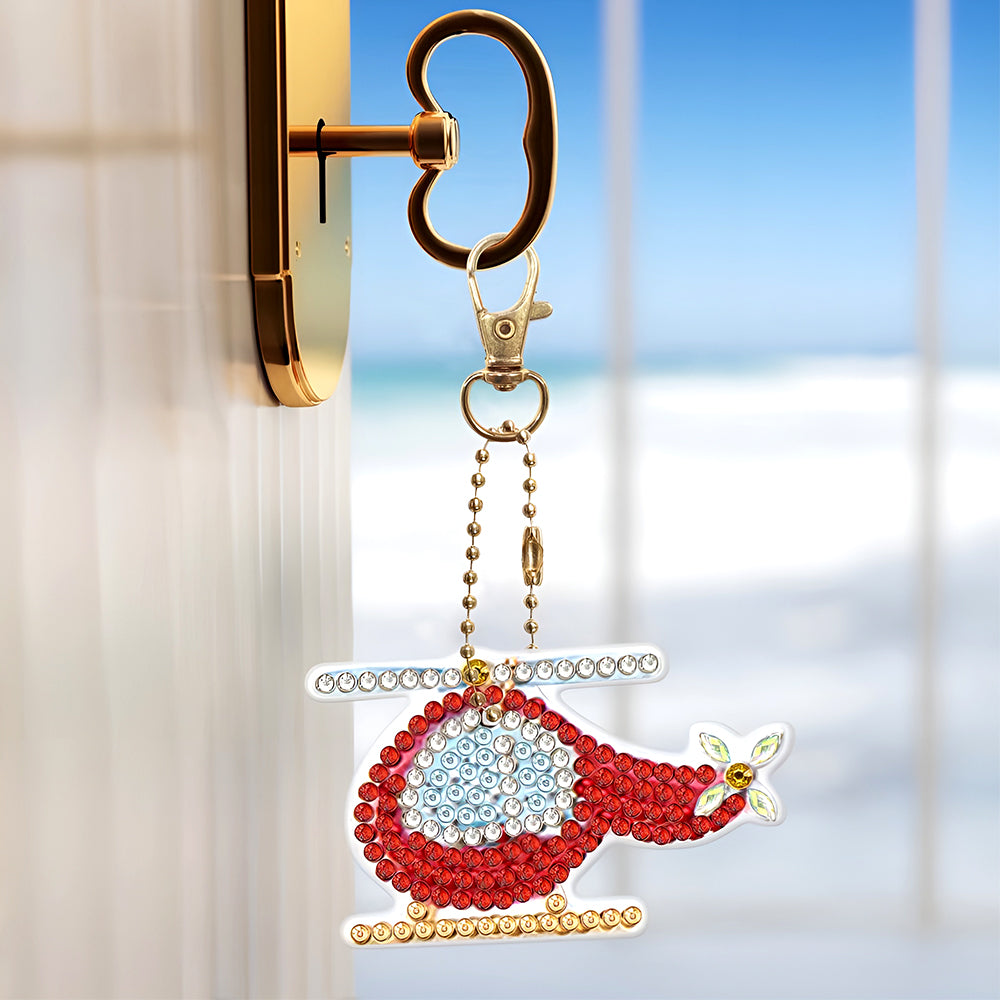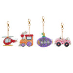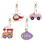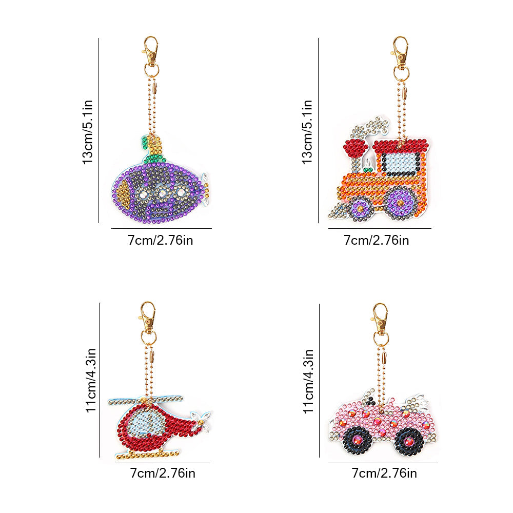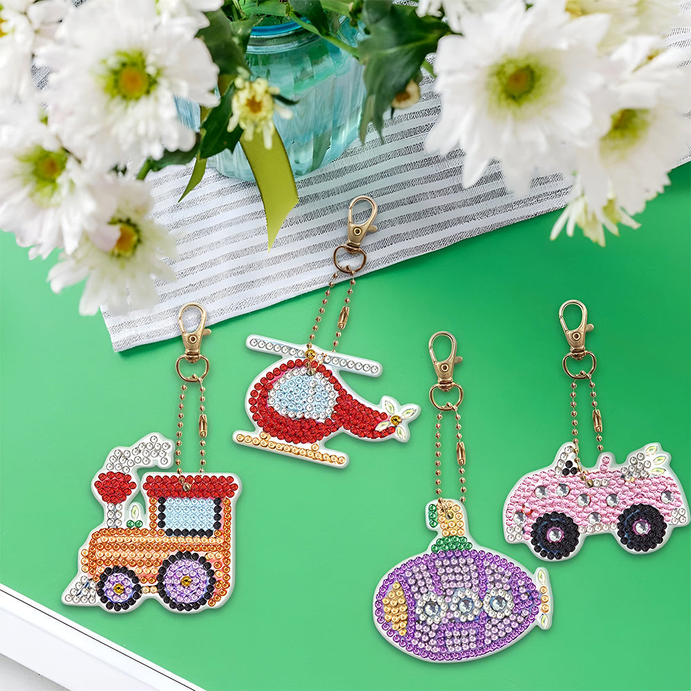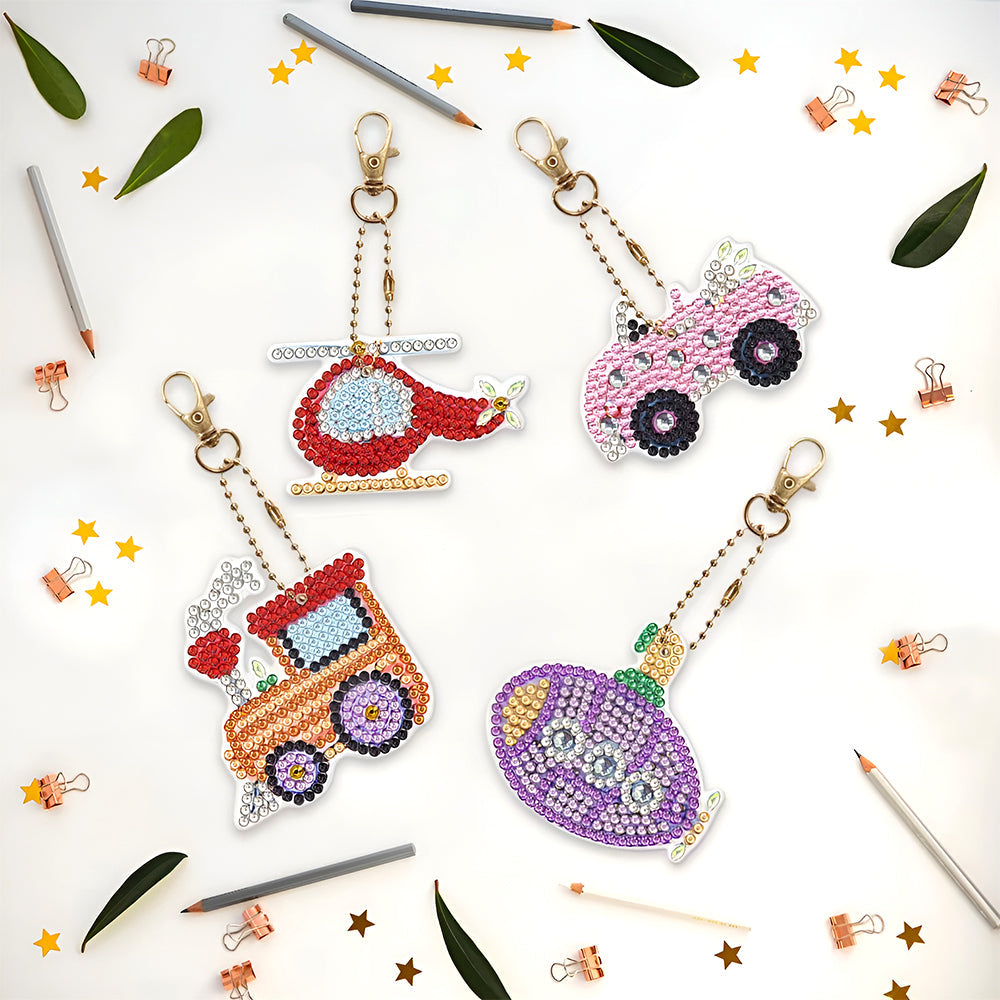 4Stück Verkehrsmittel Acryl Doppelseitiger Schlüsselanhänger Diamond Painting