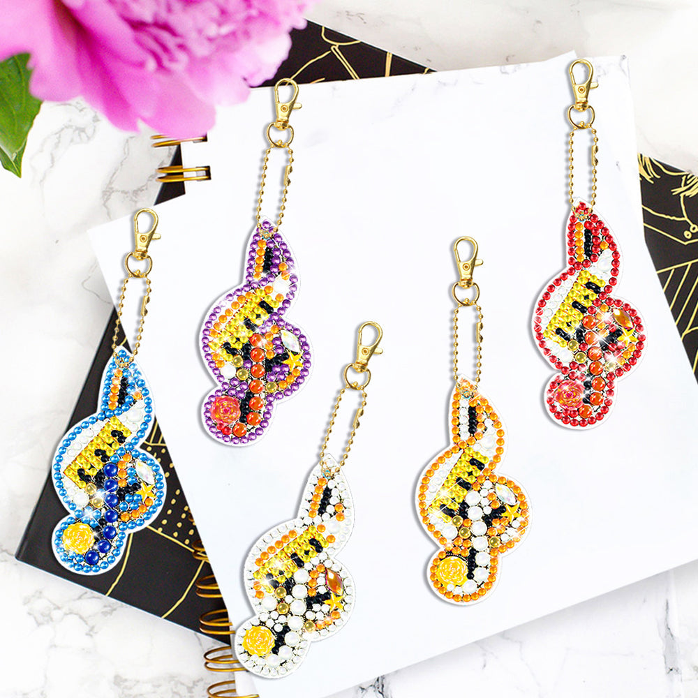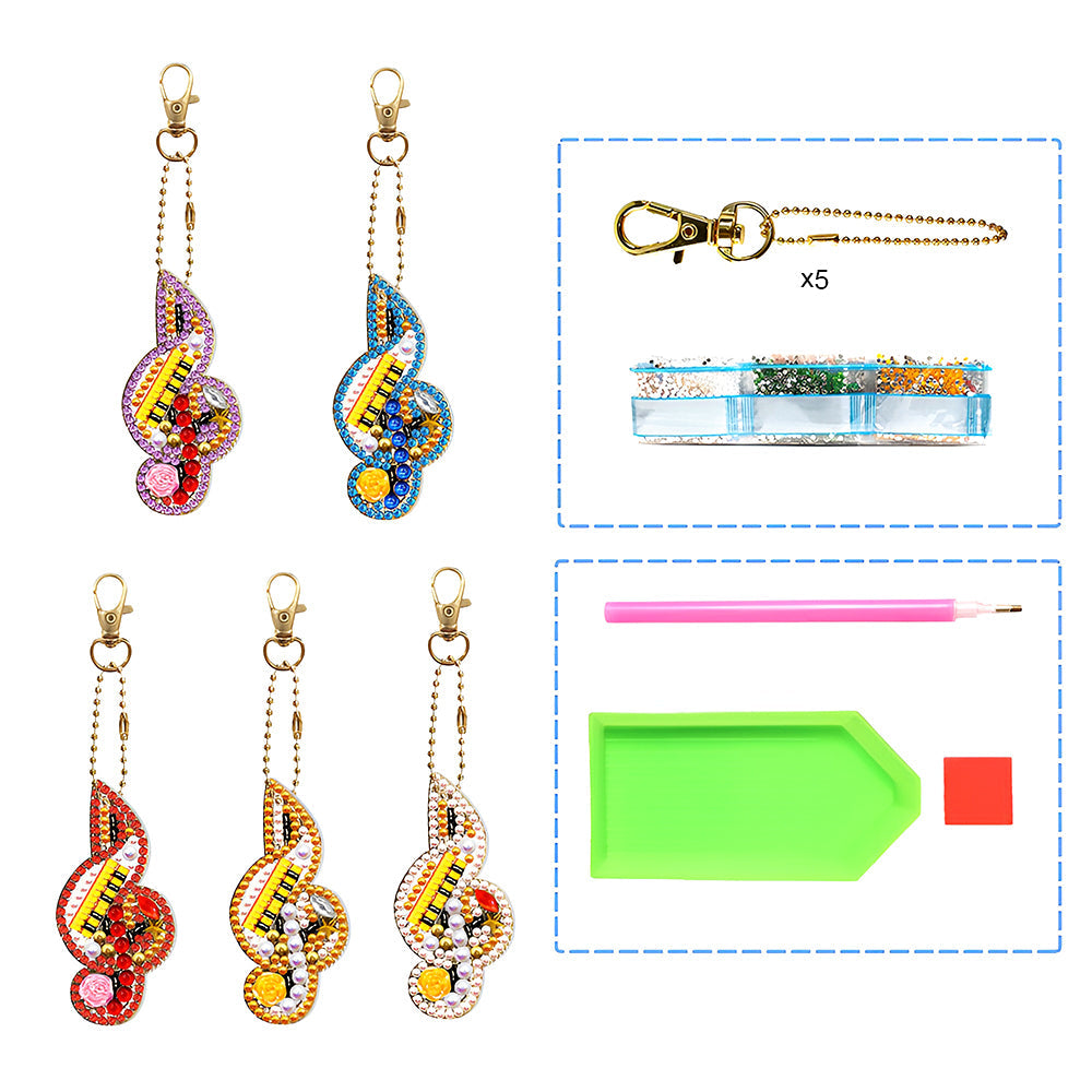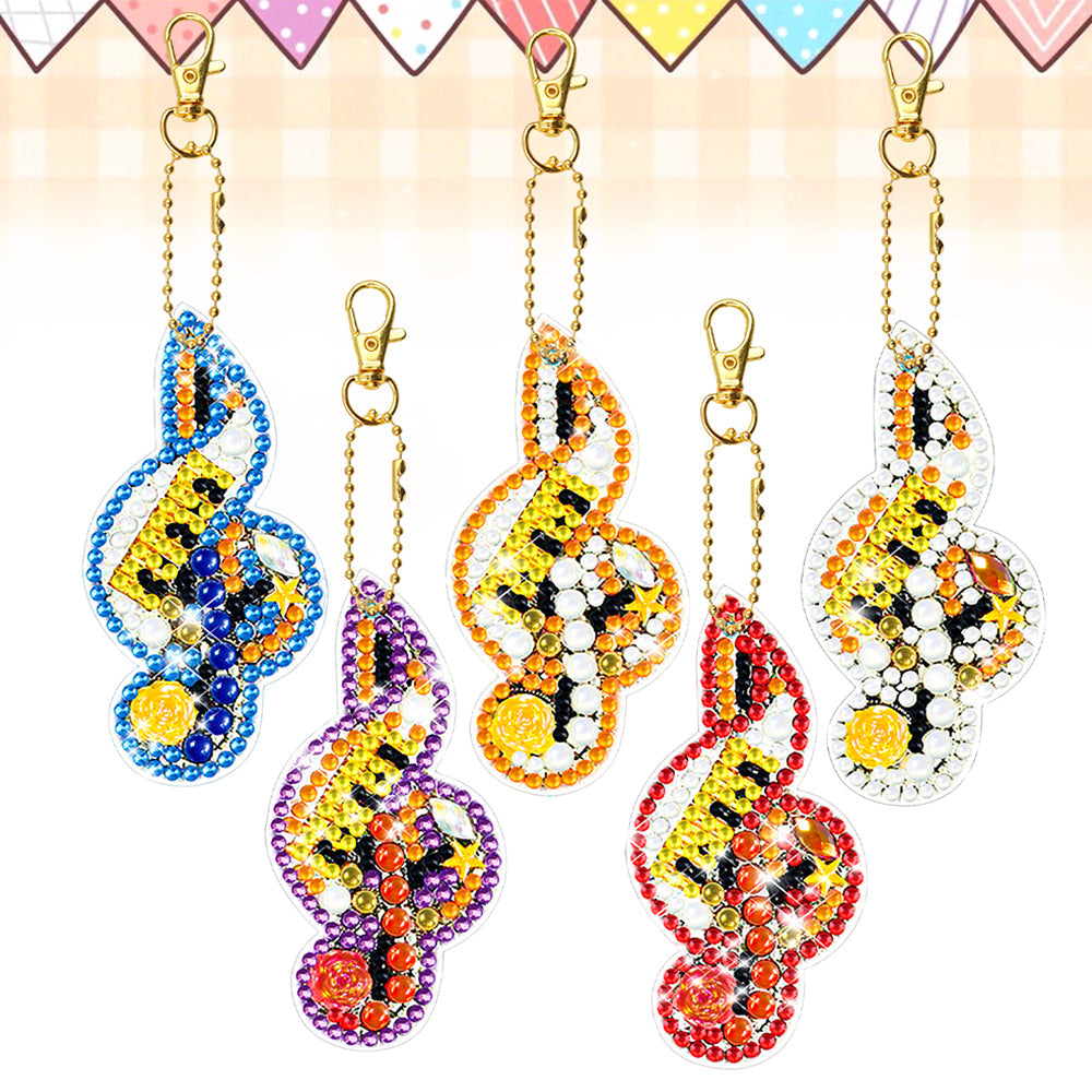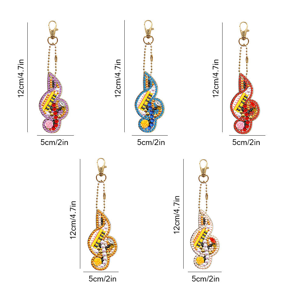 5Pcs Bunte Musiknote Acryl Doppelseitiger Schlüsselanhänger Diamond Painting