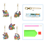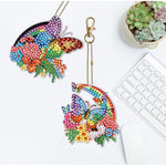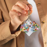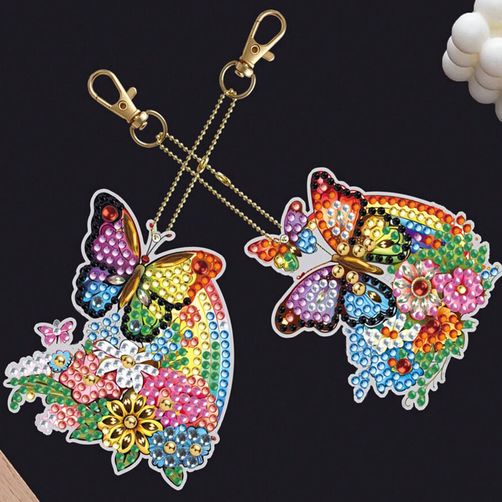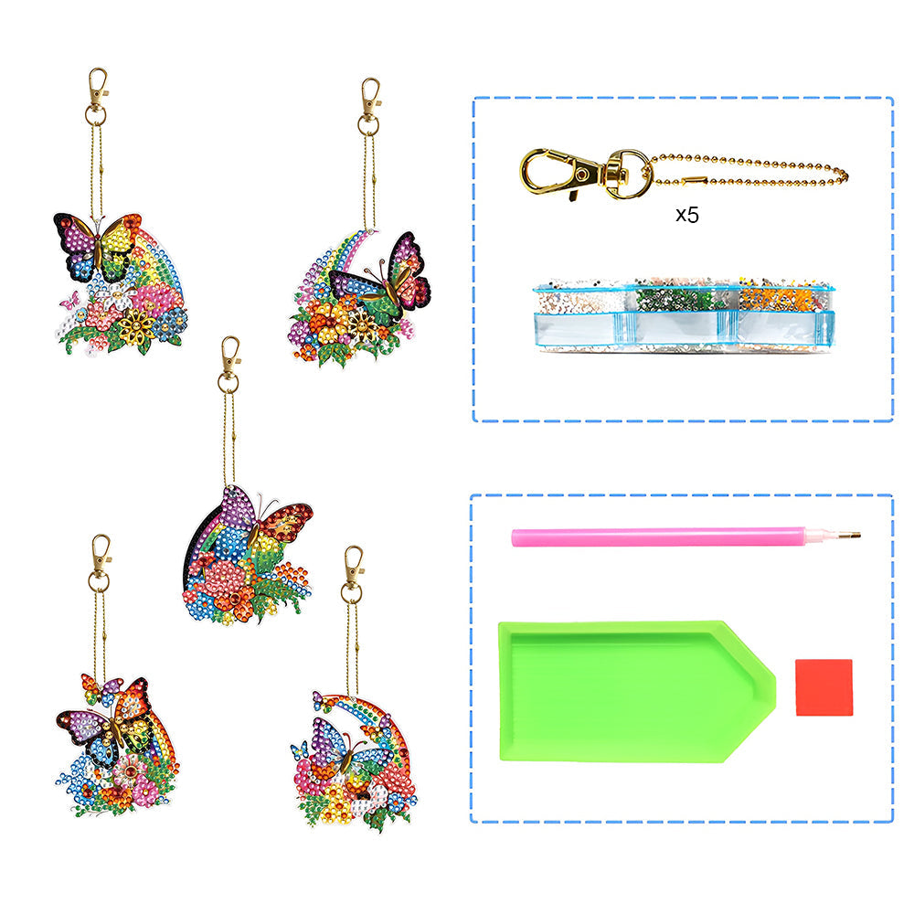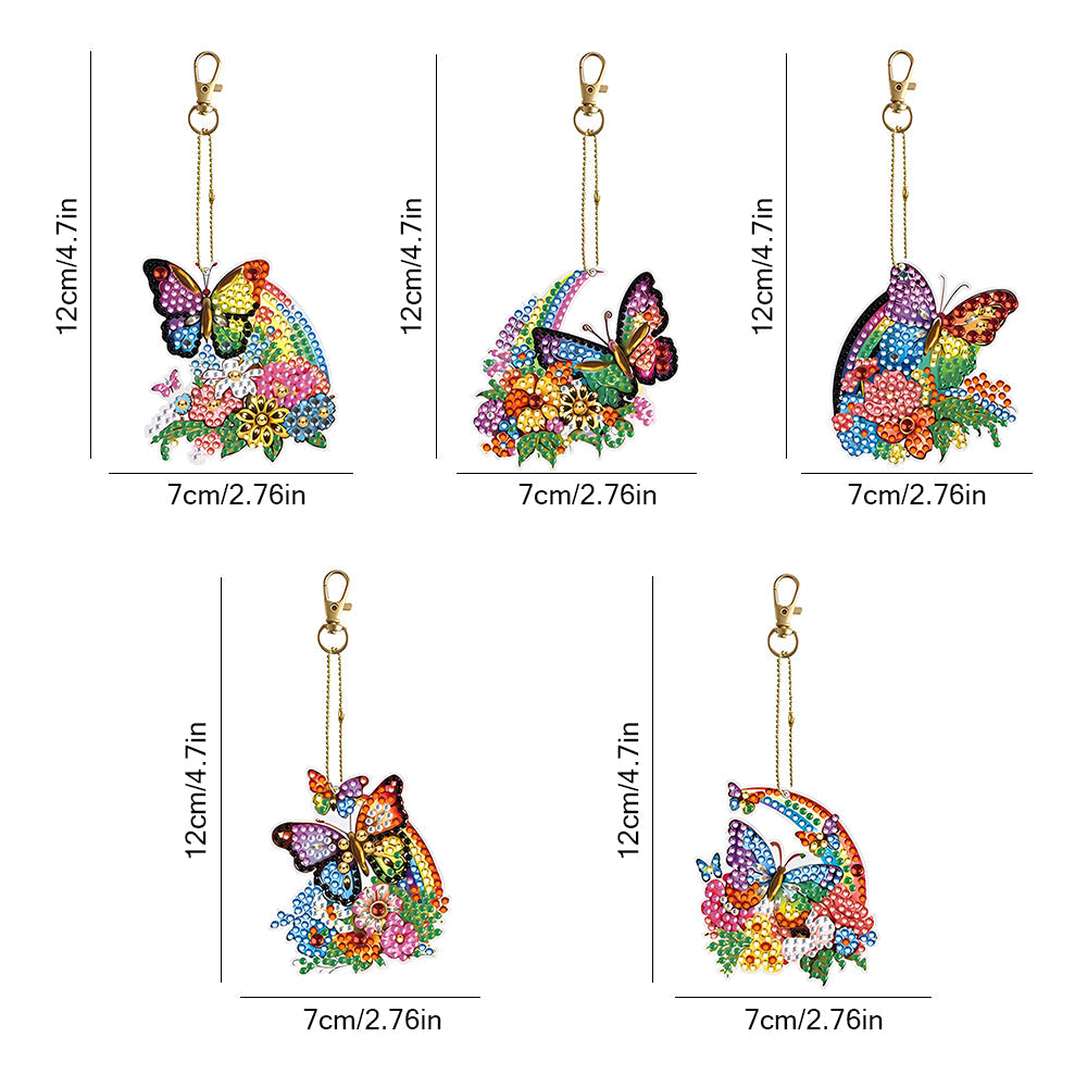 5Pcs Regenbogen Blumen Schmetterlinge Acryl Doppelseitiger Schlüsselanhänger Diamond Painting