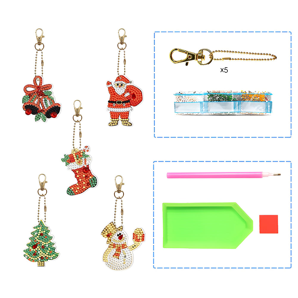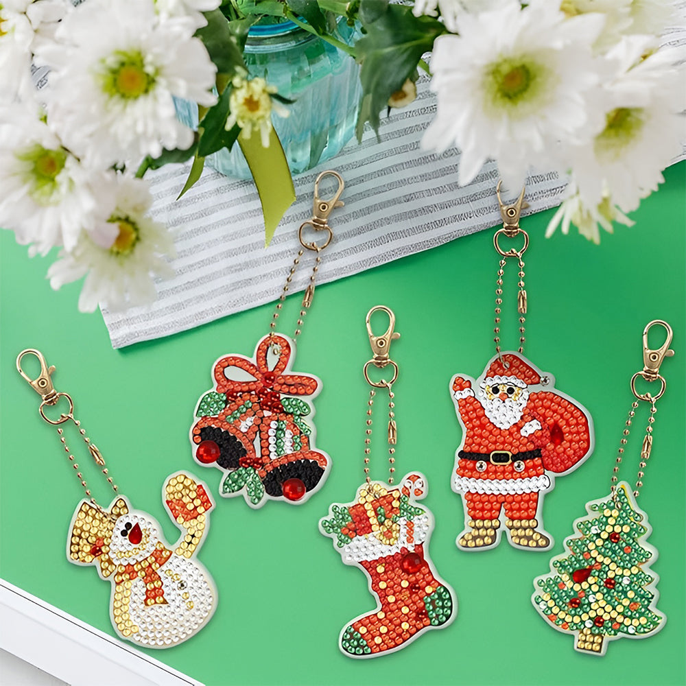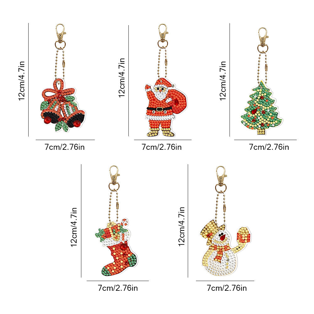 5Pcs Weihnachtsgeschenke Acryl Doppelseitiger Schlüsselanhänger Diamond Painting