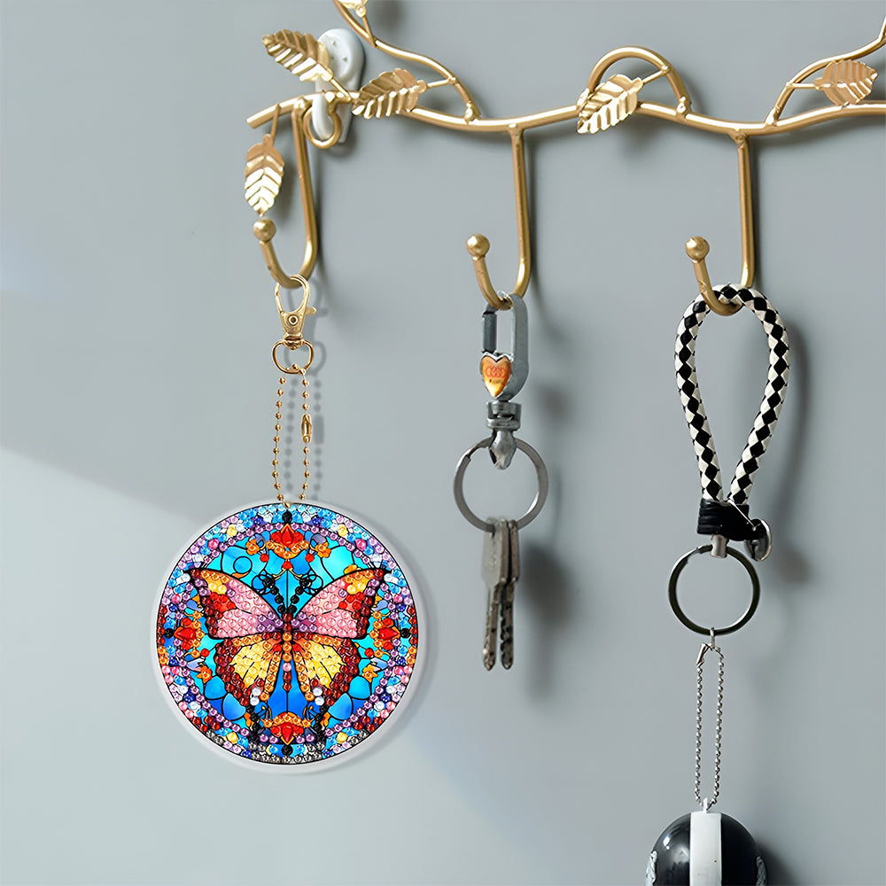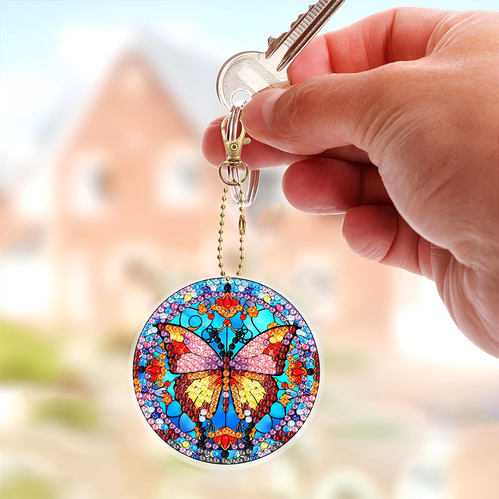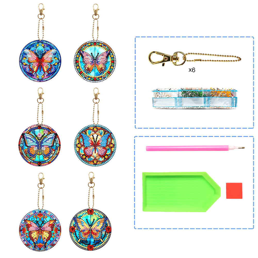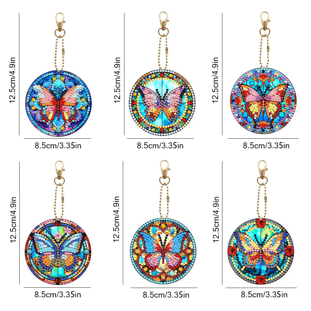 6Pcs Retro Wunderschöner Schmetterling Acryl Doppelseitiger Schlüsselanhänger Diamond Painting