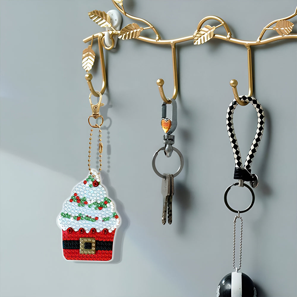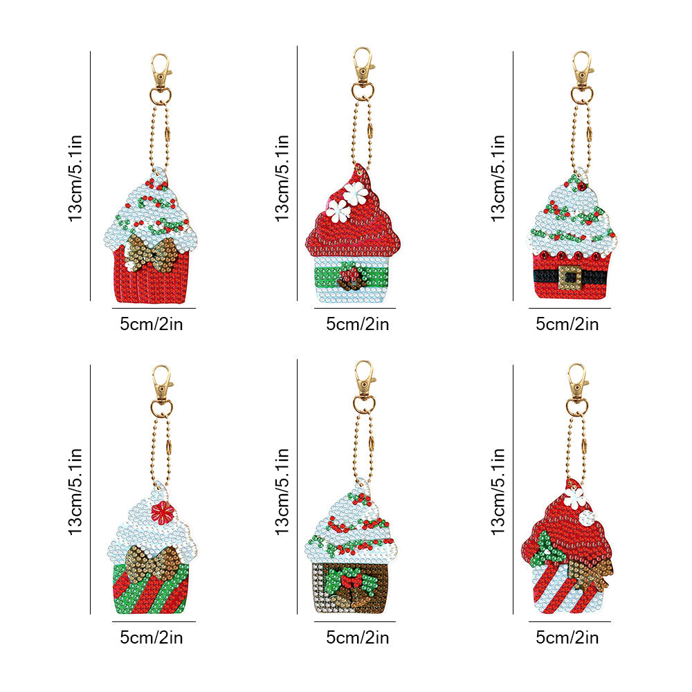 6Stück Weihnachten Eiscreme Acryl Doppelseitiger Schlüsselanhänger Diamond Painting