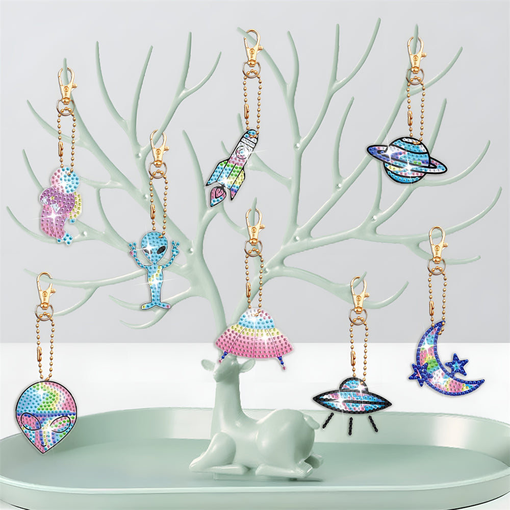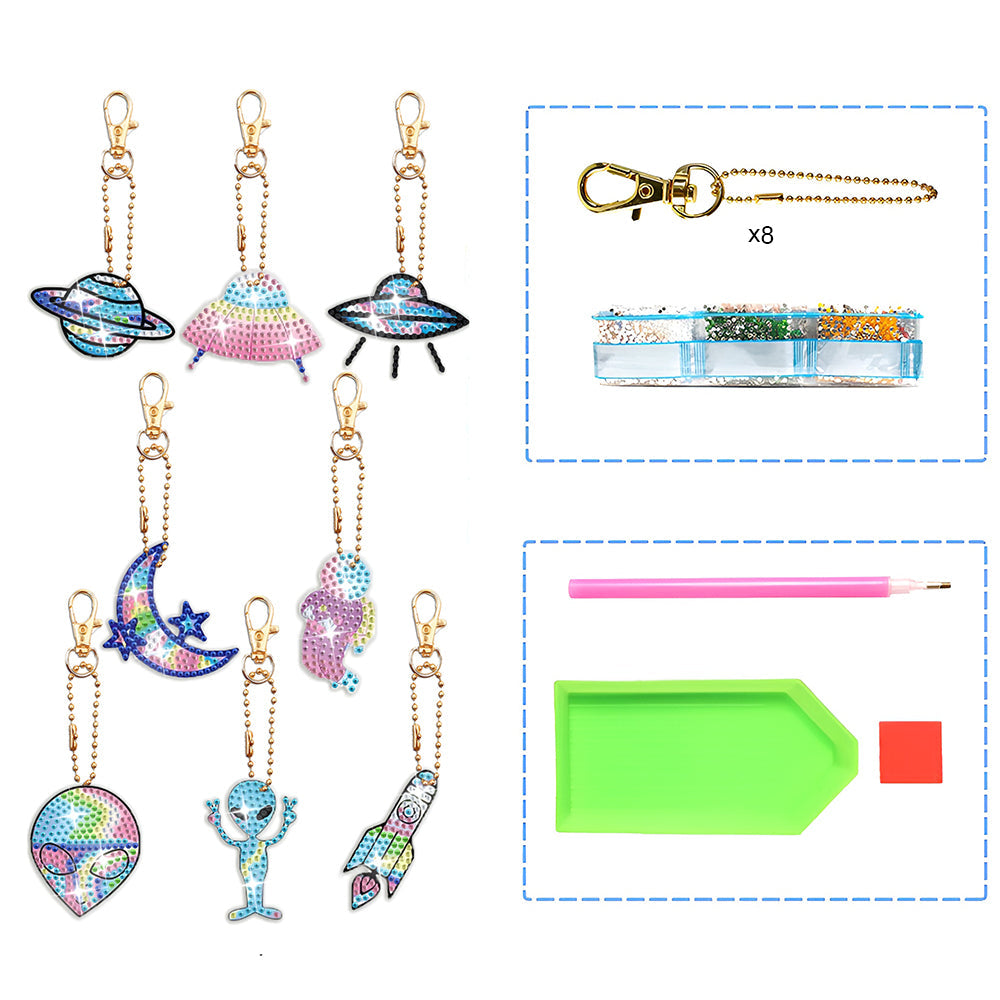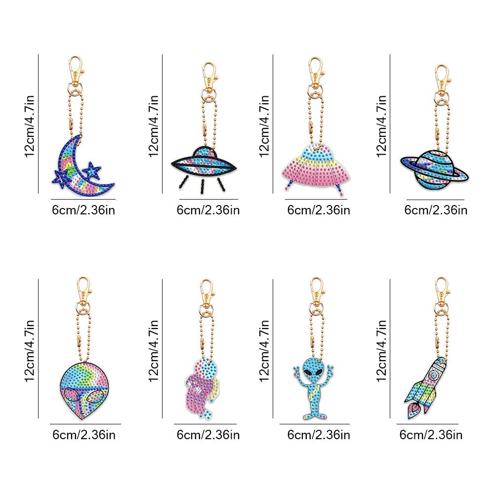 8Stück Luft- und Raumfahrt Acryl Doppelseitiger Schlüsselanhänger Diamond Painting