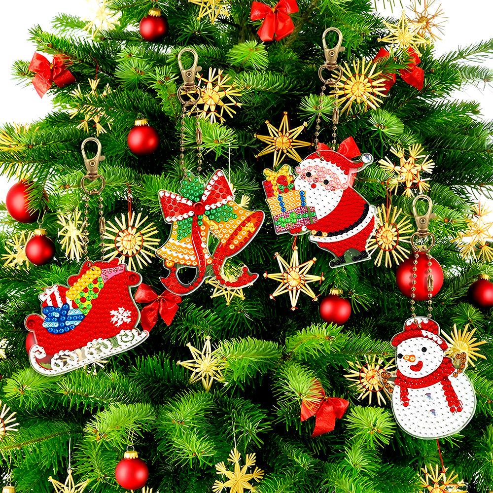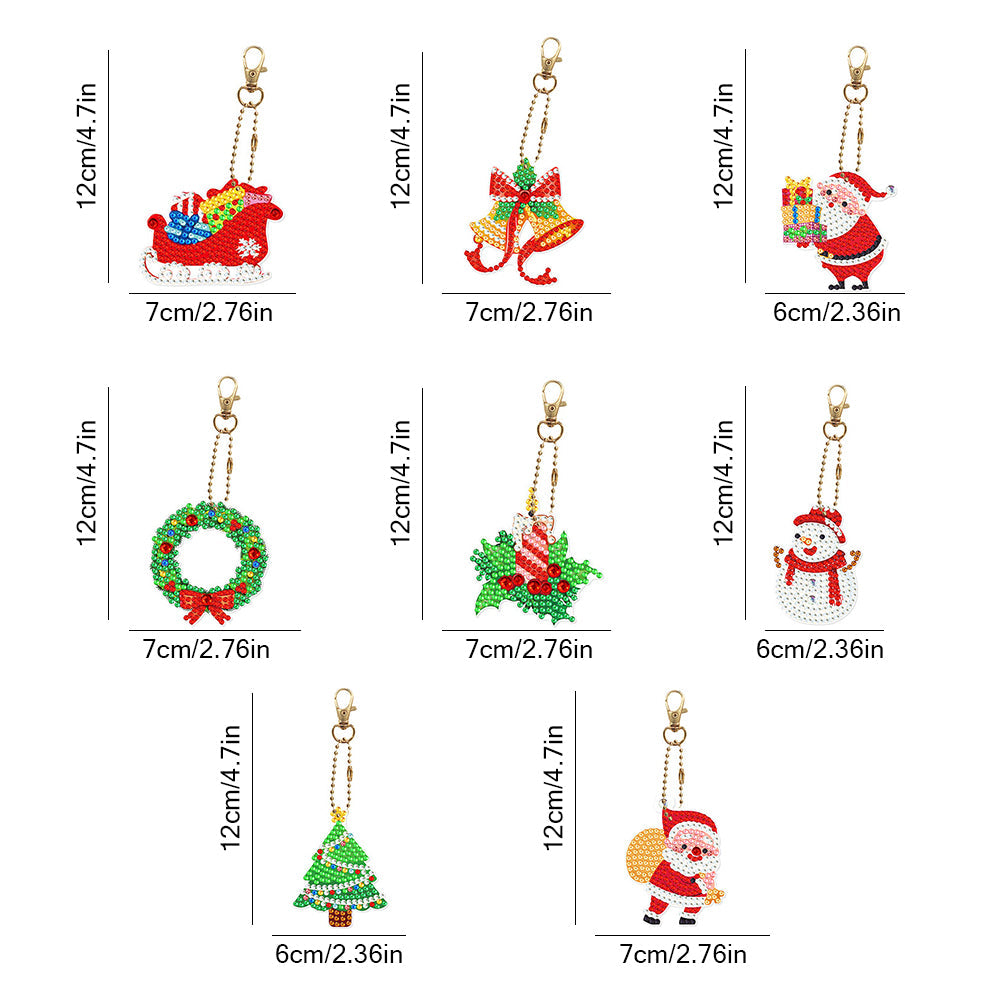 8Pcs Weihnachten Acryl Doppelseitiger Schlüsselanhänger Diamond Painting