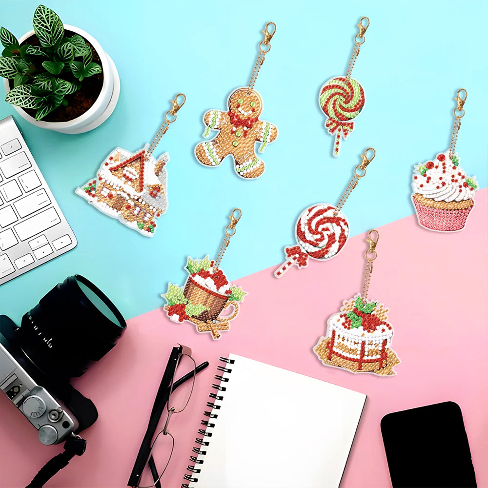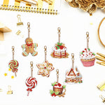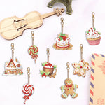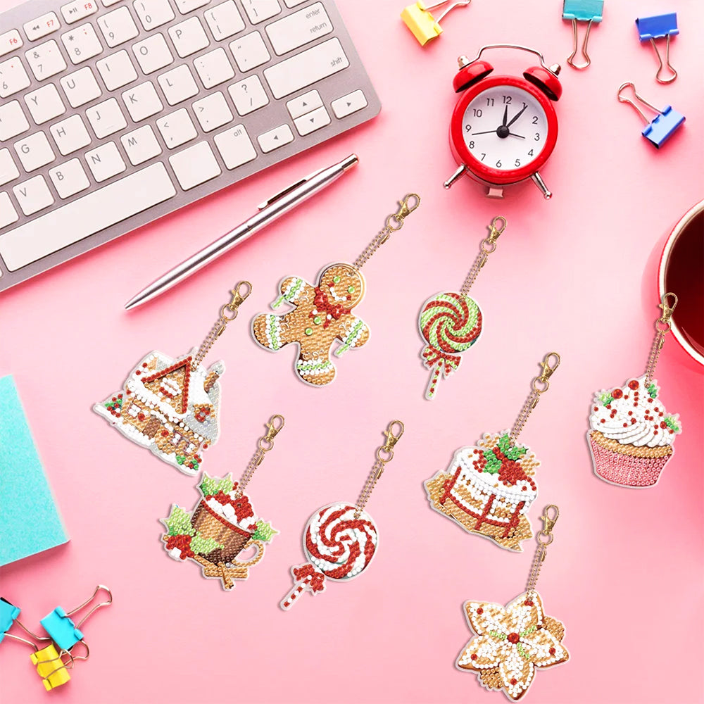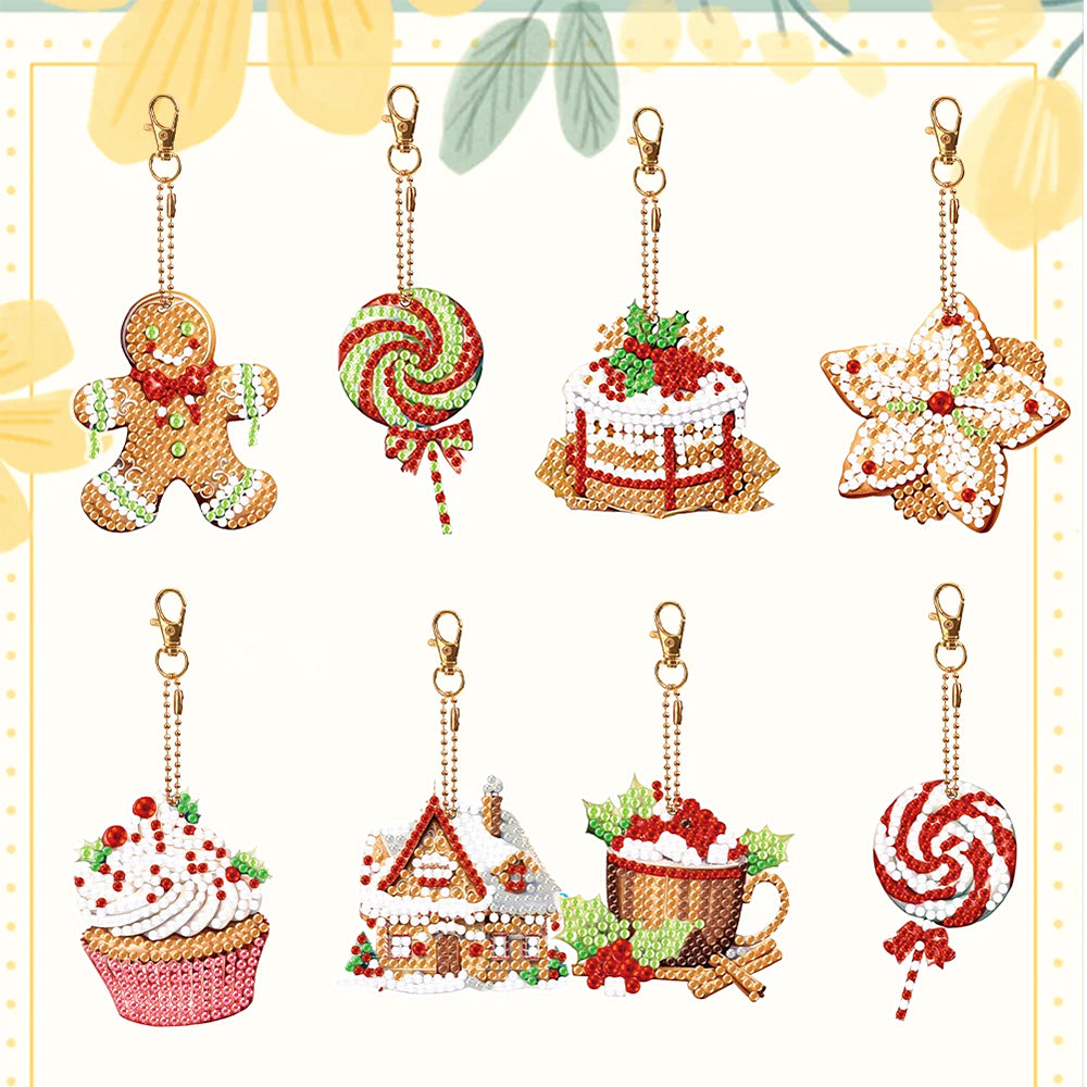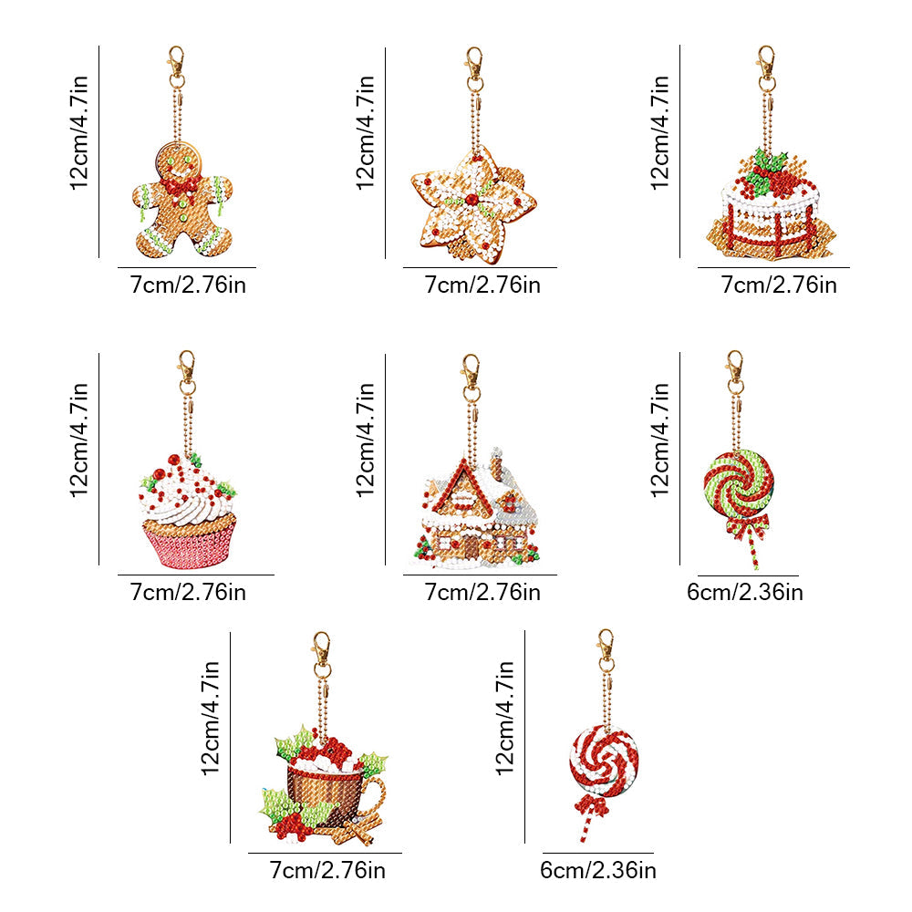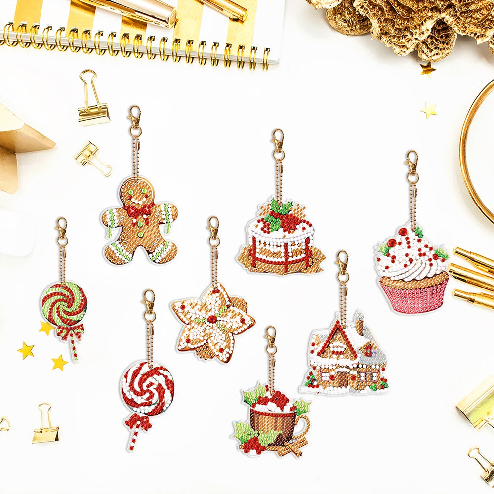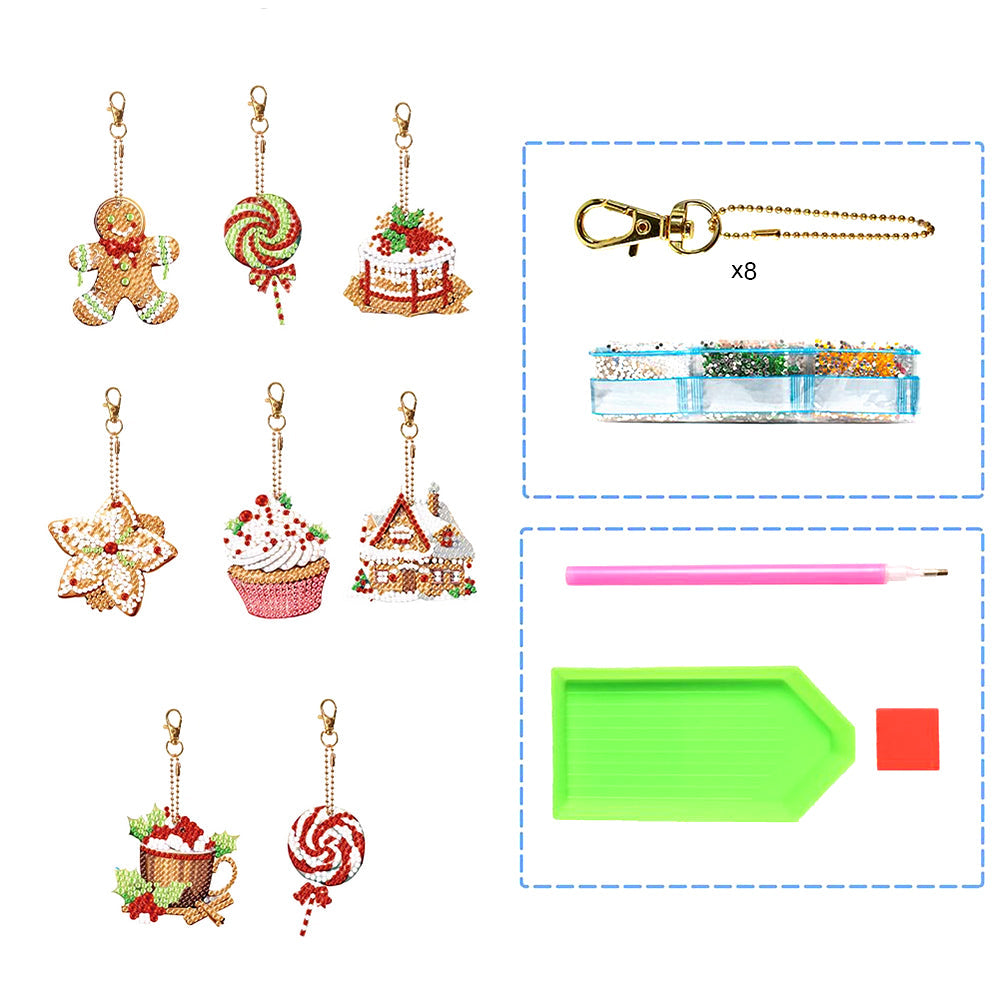 8Pcs Weihnachtsdesserts Acryl Doppelseitiger Schlüsselanhänger Diamond Painting