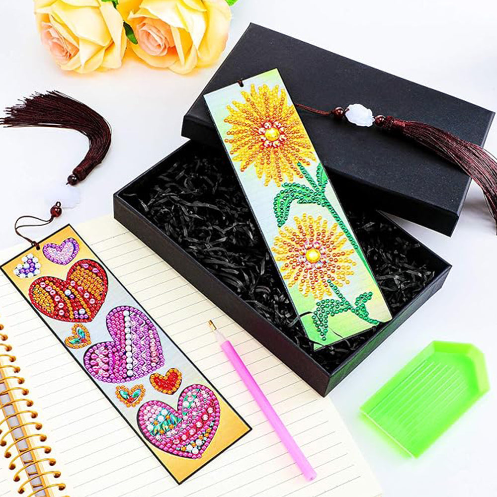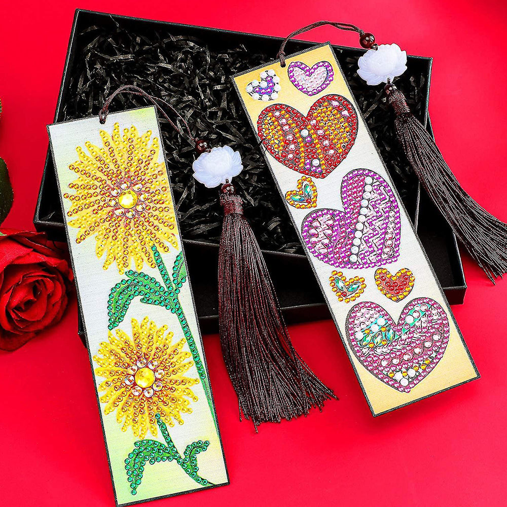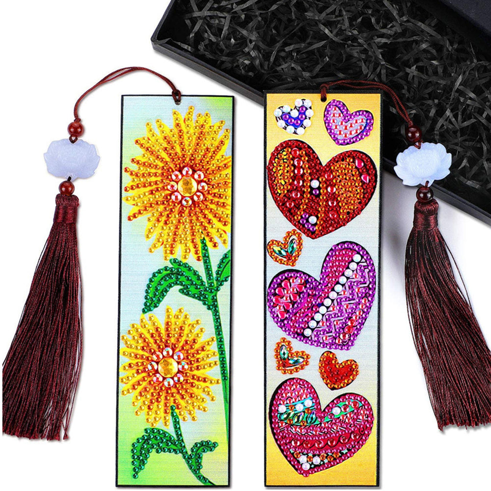 2St. Sonnenblume und Rotes Herz Leder Lesezeichen Set Diamond Painting