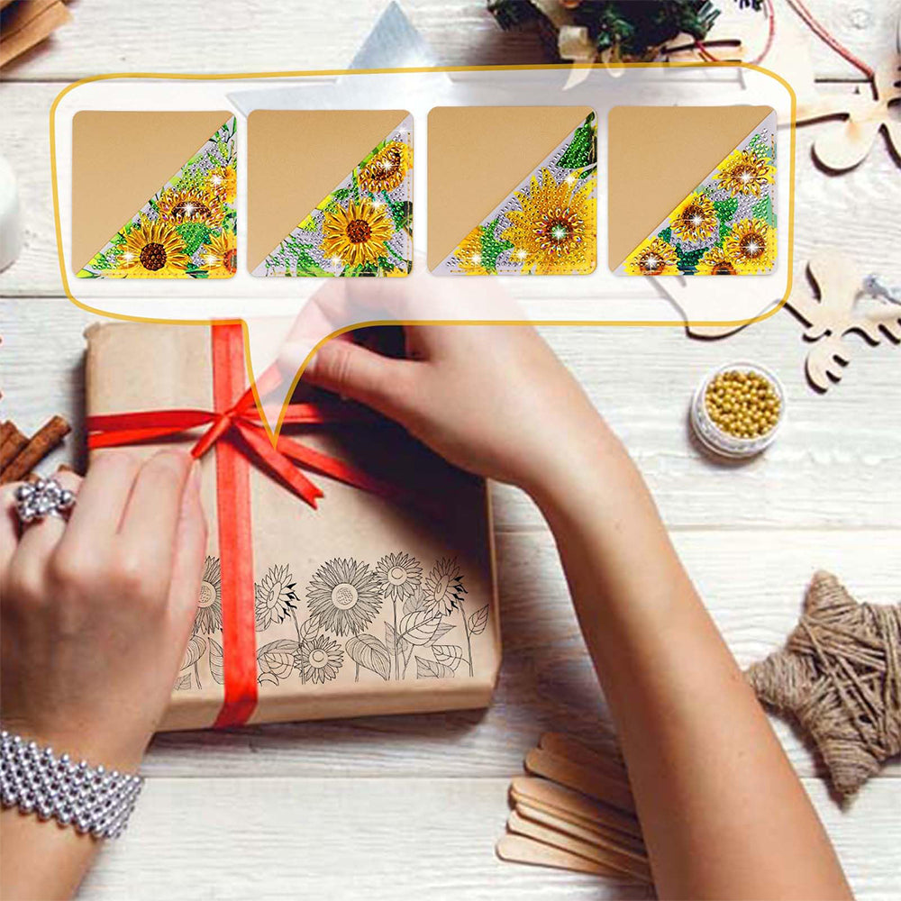 4St. Brillante Sonnenblumen PU Ecke Abdeckung Lesezeichen Set Diamond Painting