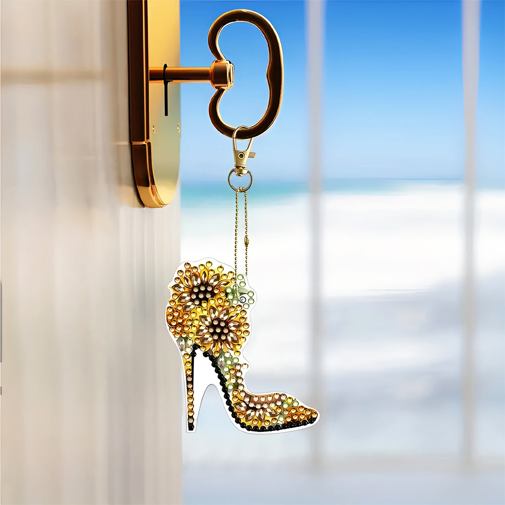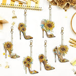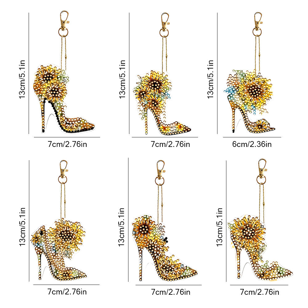 6Stück Stylische Sonnenblumen High Heels Acryl Doppelseitiger Schlüsselanhänger Diamond Painting