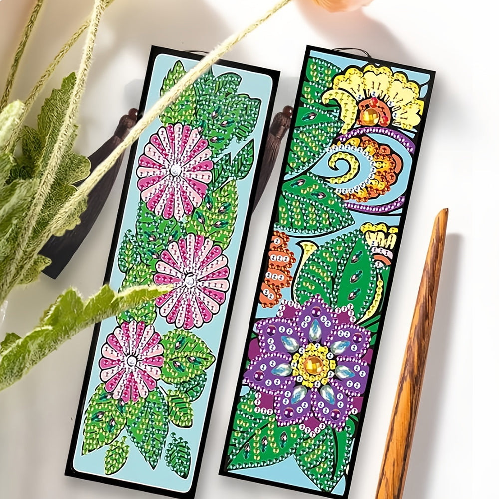 8St. Verschiedene Blumen Leder Lesezeichen Set Diamond Painting