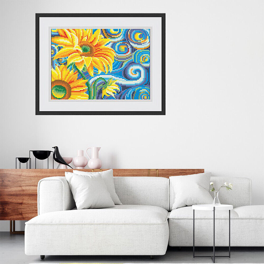 Abstrakte Sonnenblumen Leuchtend Kristall Strass Diamond Painting