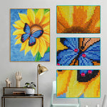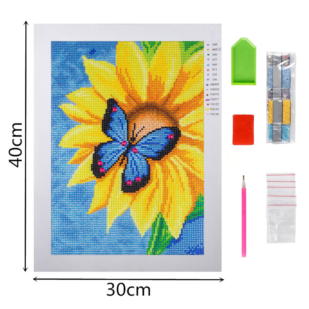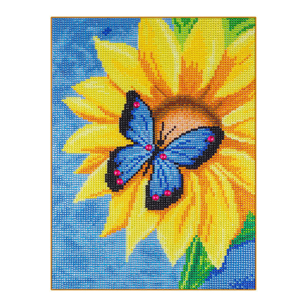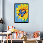 Blauer Schmetterling auf Sonnenblume Sonderform Diamond Painting