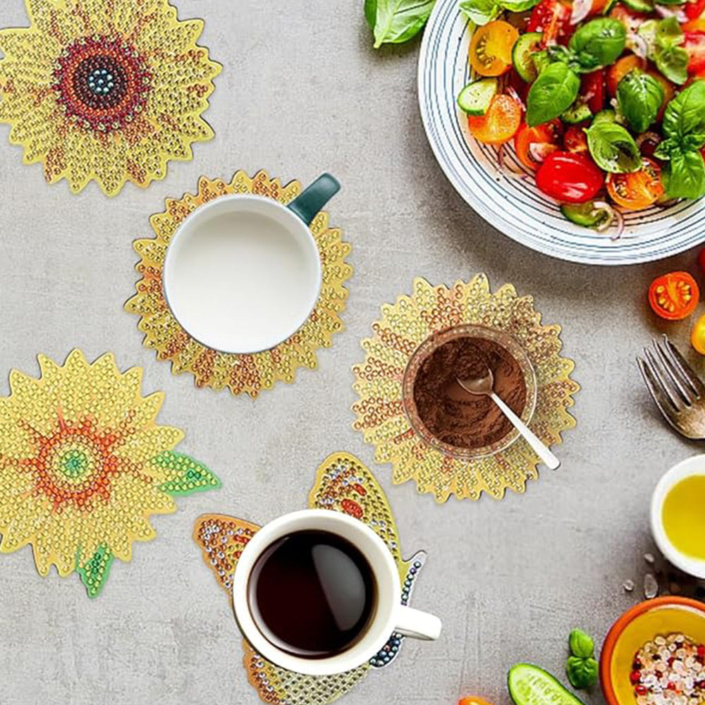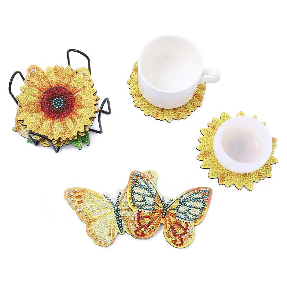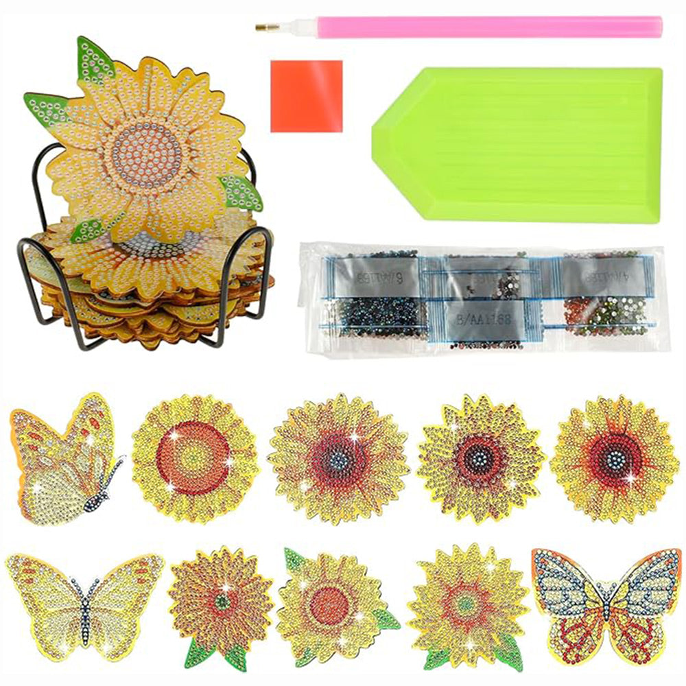 Schmetterling und Sonnenblume Diamond Painting Untersetzer 10Pcs