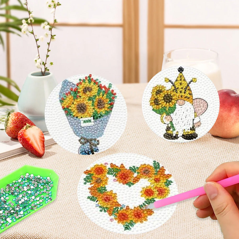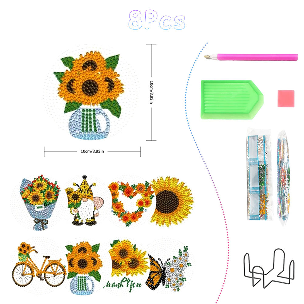 8Stück Sonnenblume Diamond Painting Untersetzer