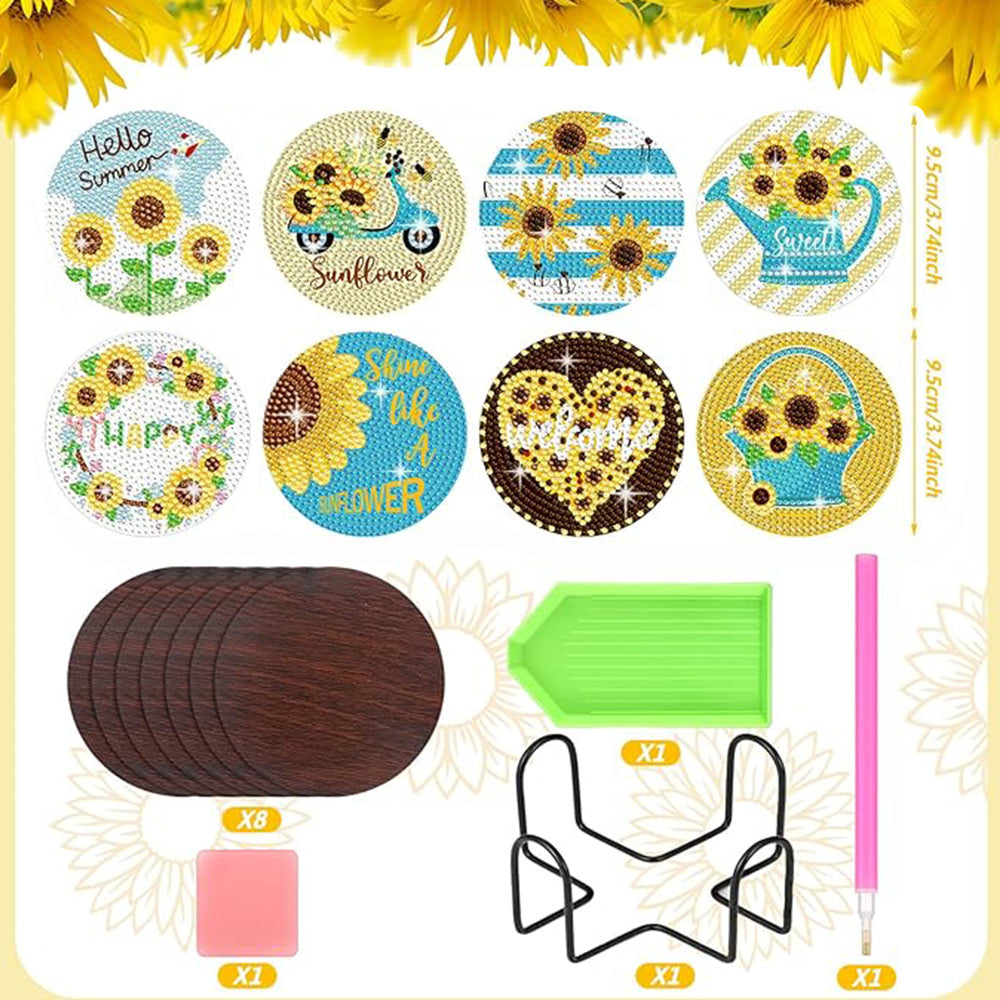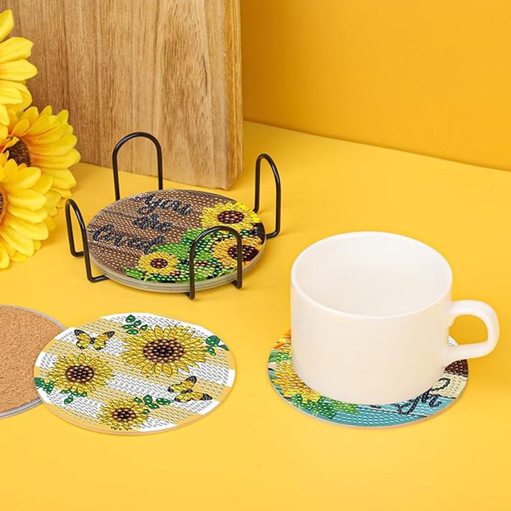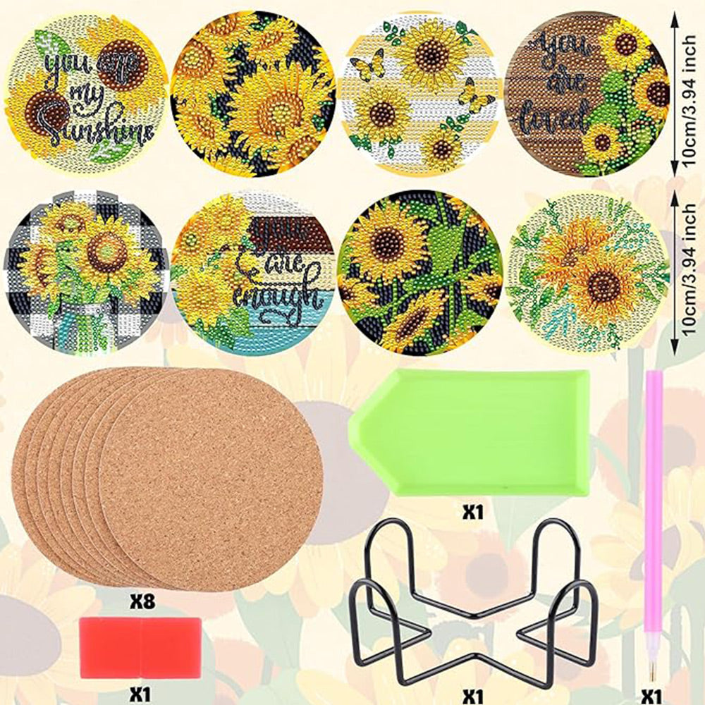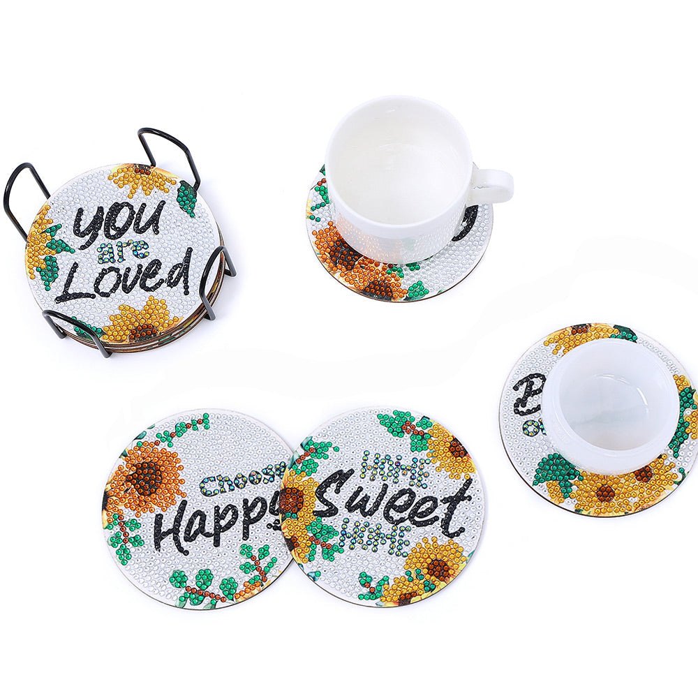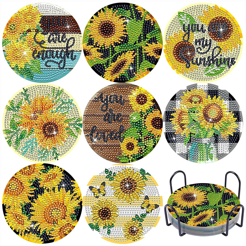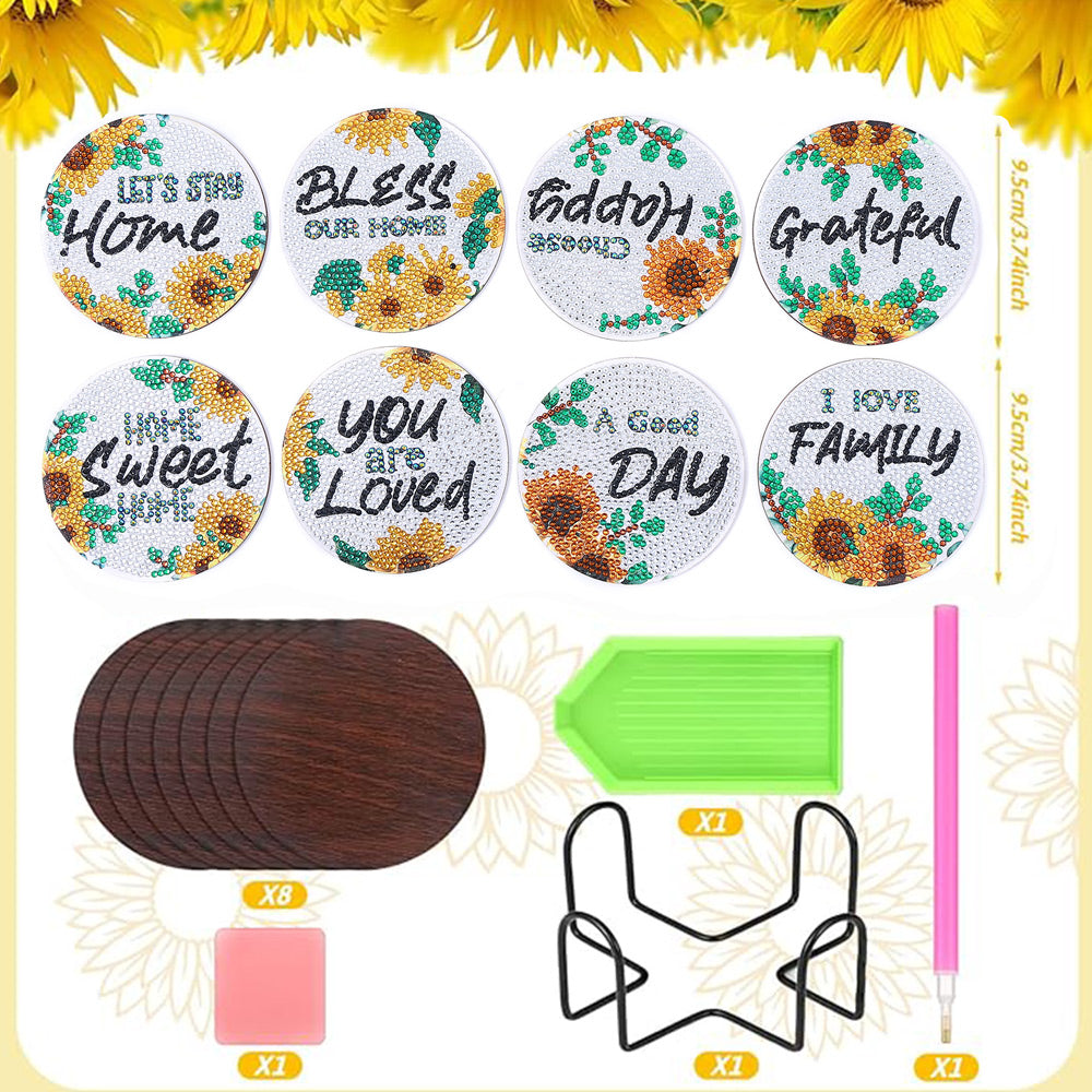8Stück Sonnenblume Worte Diamond Painting Untersetzer